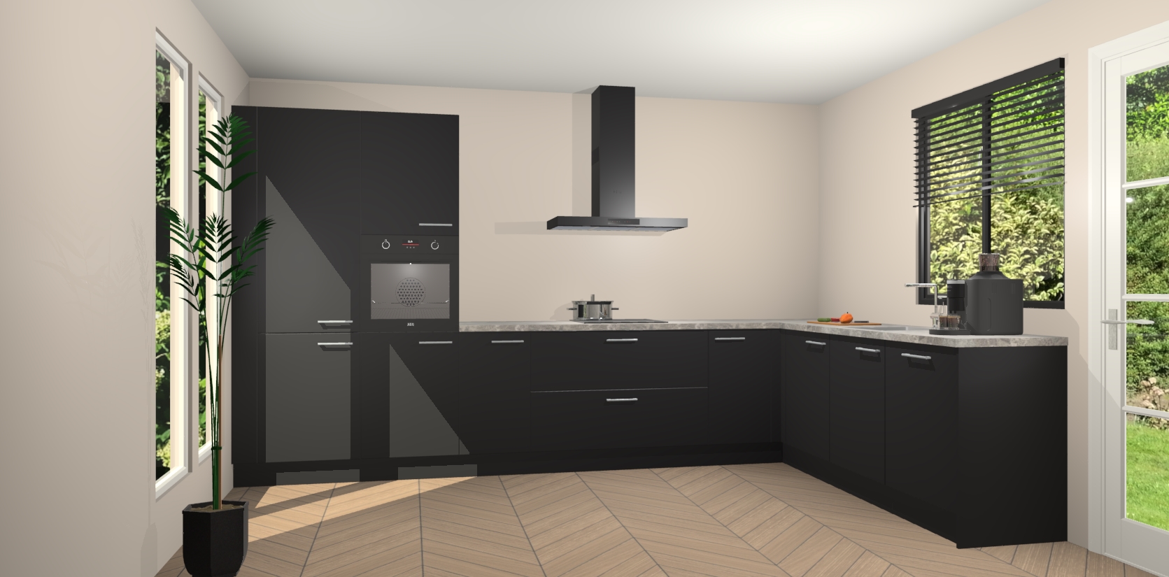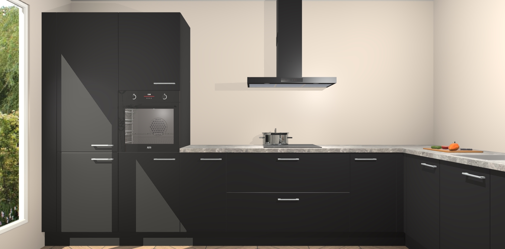 Met een modern, tijdloos design en ruime opslagruimte, zult u zich in no-time thuis voelen in uw nieuwe keuken. Uw leven wordt eenvoudiger met de soft-close deuren die voor het ultieme stille comfort zorgen - geen geluid dat u stoort terwijl u kookt. Ook is de keuken voorzien van 5 ingebouwde apparaten: een oven, inductie kookplaat, afzuigkap, vaatwasser en koelkast. Deze kunnen gemakkelijk na bestelling worden bijgewerkt naar AEG - waardoor uw luxe ervaring compleet is.