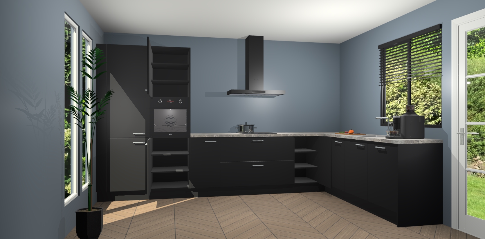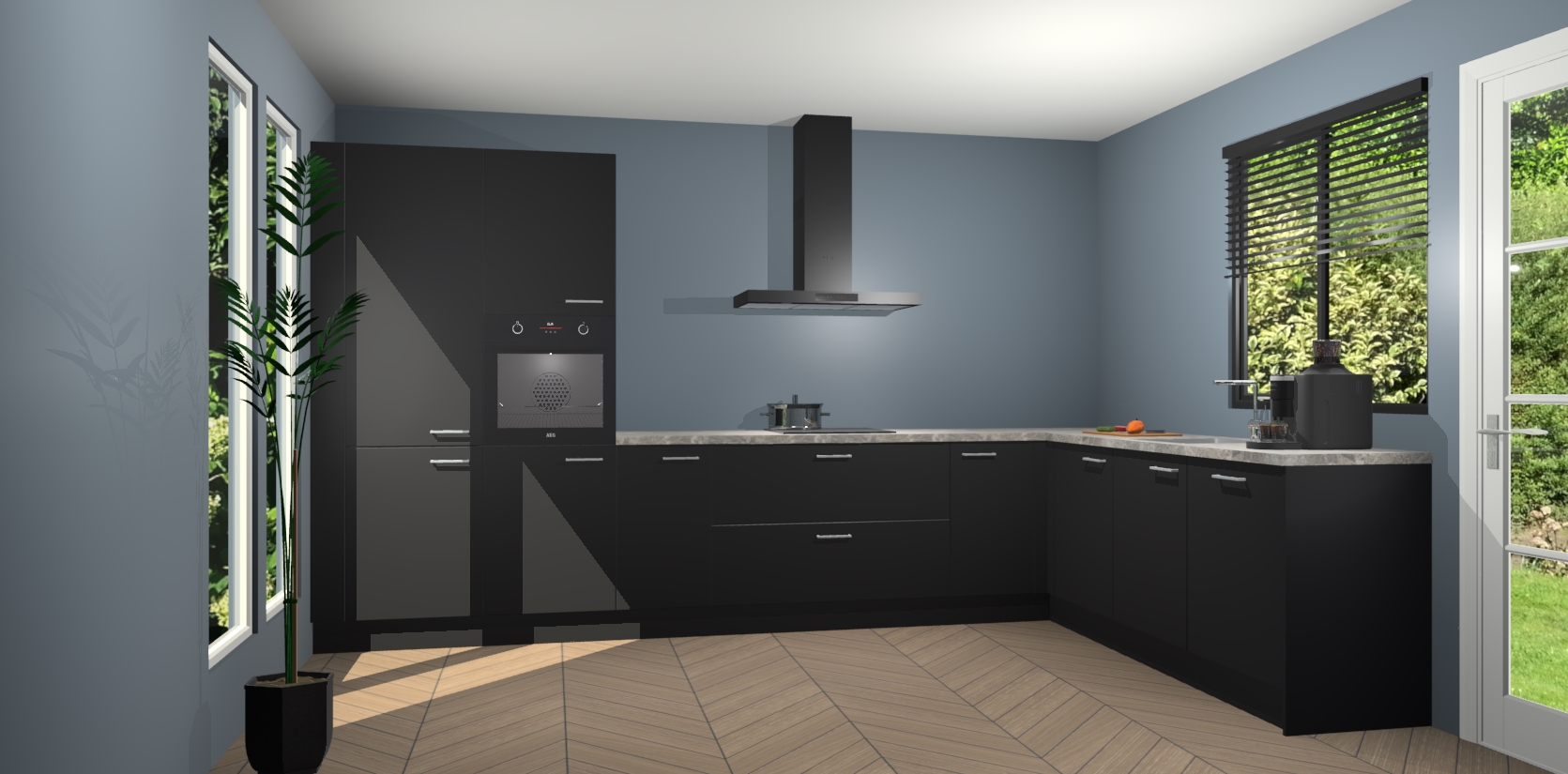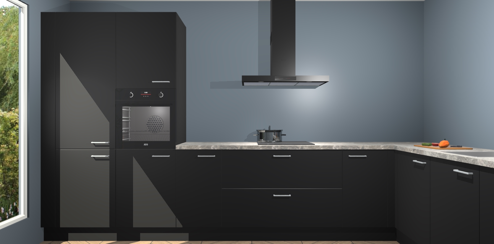 Met een modern, tijdloos design en ruime opslagruimte, zult u zich in no-time thuis voelen in uw nieuwe keuken. Uw leven wordt eenvoudiger met de soft-close deuren die voor het ultieme stille comfort zorgen - geen geluid dat u stoort terwijl u kookt. Ook is de keuken voorzien van 5 ingebouwde apparaten: een oven, inductie kookplaat, afzuigkap, vaatwasser en koelkast. Deze kunnen gemakkelijk na bestelling worden bijgewerkt naar AEG - waardoor uw luxe ervaring compleet is.