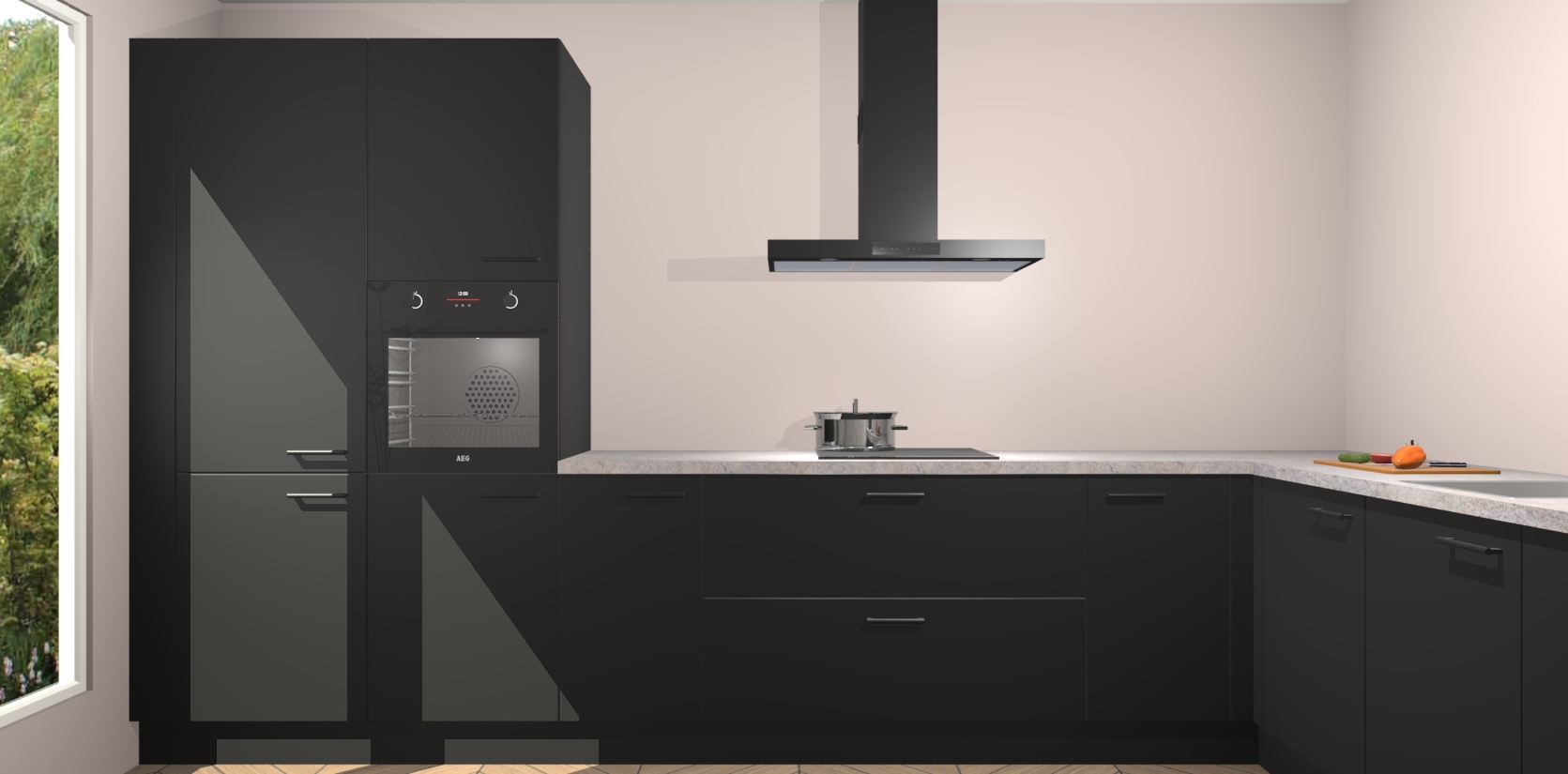 Met een modern, tijdloos design en ruime opslagruimte, zult u zich in no-time thuis voelen in uw nieuwe keuken. Uw leven wordt eenvoudiger met de soft-close deuren die voor het ultieme stille comfort zorgen - geen geluid dat u stoort terwijl u kookt. Ook is de keuken voorzien van 5 ingebouwde apparaten: een oven, inductie kookplaat, afzuigkap, vaatwasser en koelkast. Deze kunnen gemakkelijk na bestelling worden bijgewerkt naar AEG - waardoor uw luxe ervaring compleet is.
