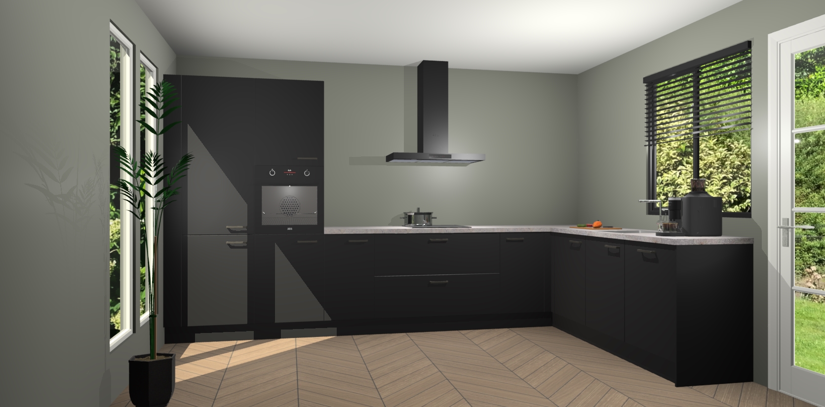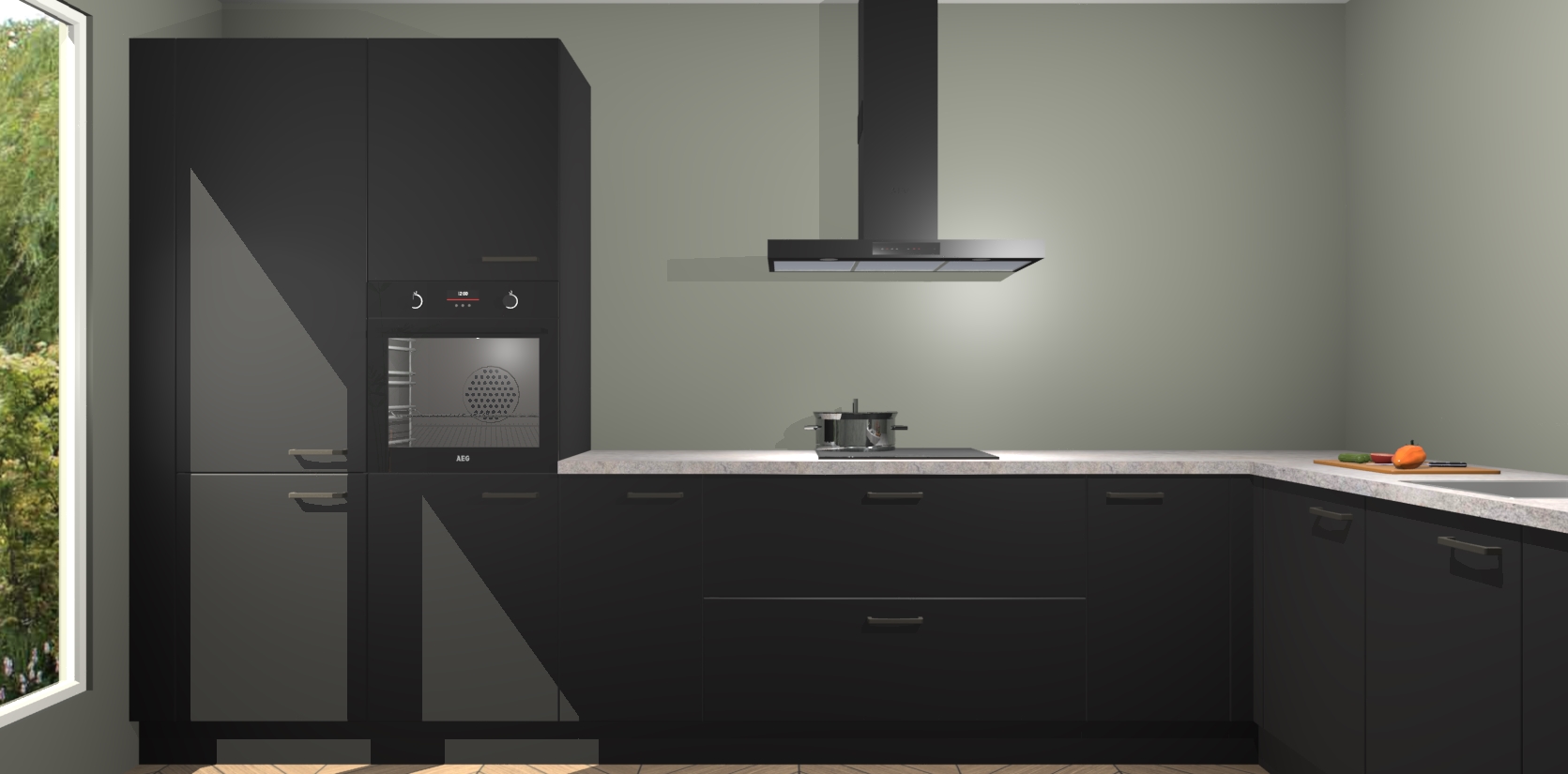 Met een modern, tijdloos design en ruime opslagruimte, zult u zich in no-time thuis voelen in uw nieuwe keuken. Uw leven wordt eenvoudiger met de soft-close deuren die voor het ultieme stille comfort zorgen - geen geluid dat u stoort terwijl u kookt. Ook is de keuken voorzien van 5 ingebouwde apparaten: een oven, inductie kookplaat, afzuigkap, vaatwasser en koelkast. Deze kunnen gemakkelijk na bestelling worden bijgewerkt naar AEG - waardoor uw luxe ervaring compleet is.