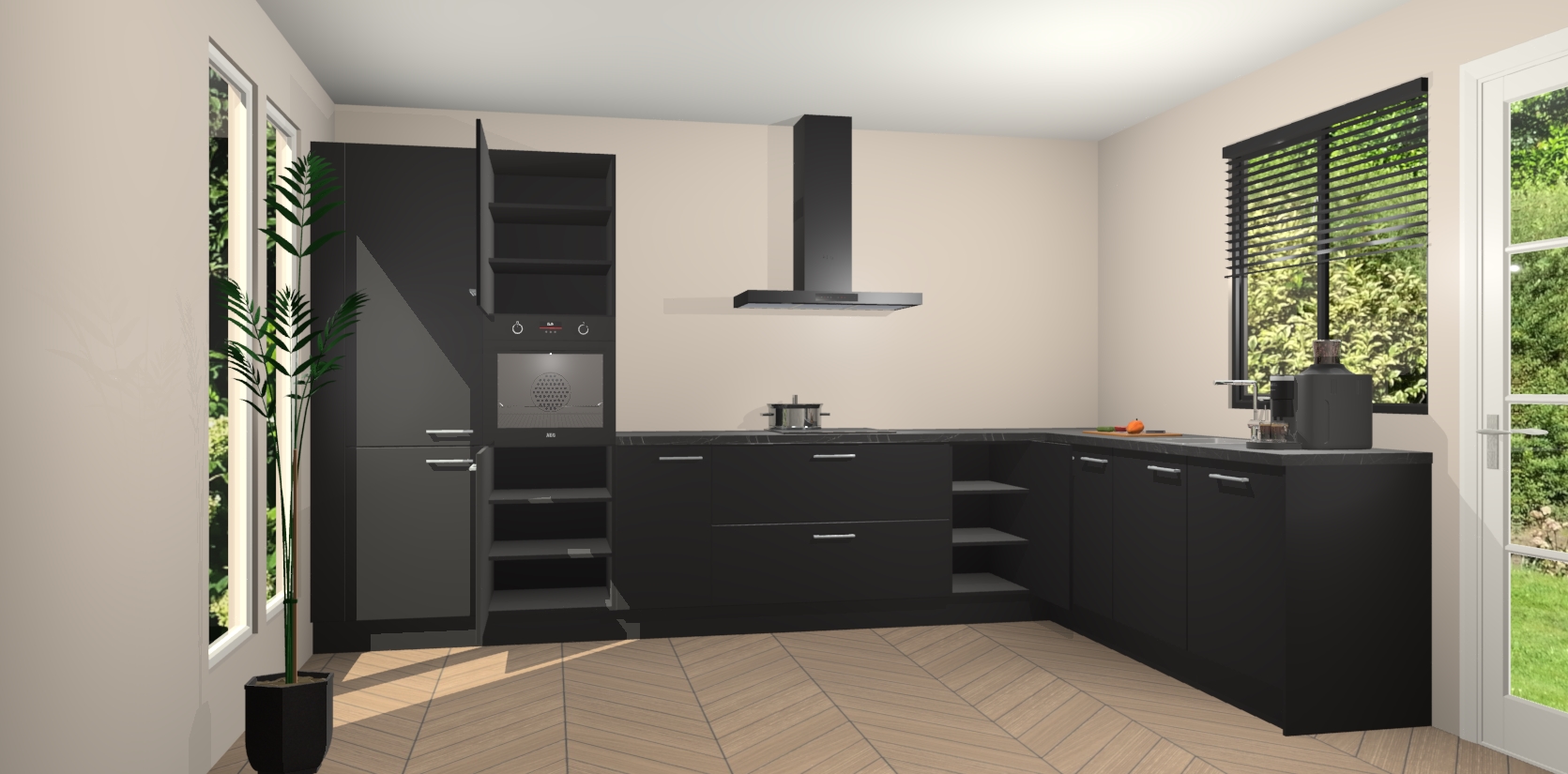Wij presenteren de revolutie in keukens: de Zwarte keuken Napels. Met modern design, een tijdloos uiterlijk en kasten die al voor gemonteerd worden geleverd, laat deze stijlvolle keuken uw kookervaring op een hele nieuwe manier transformeren.