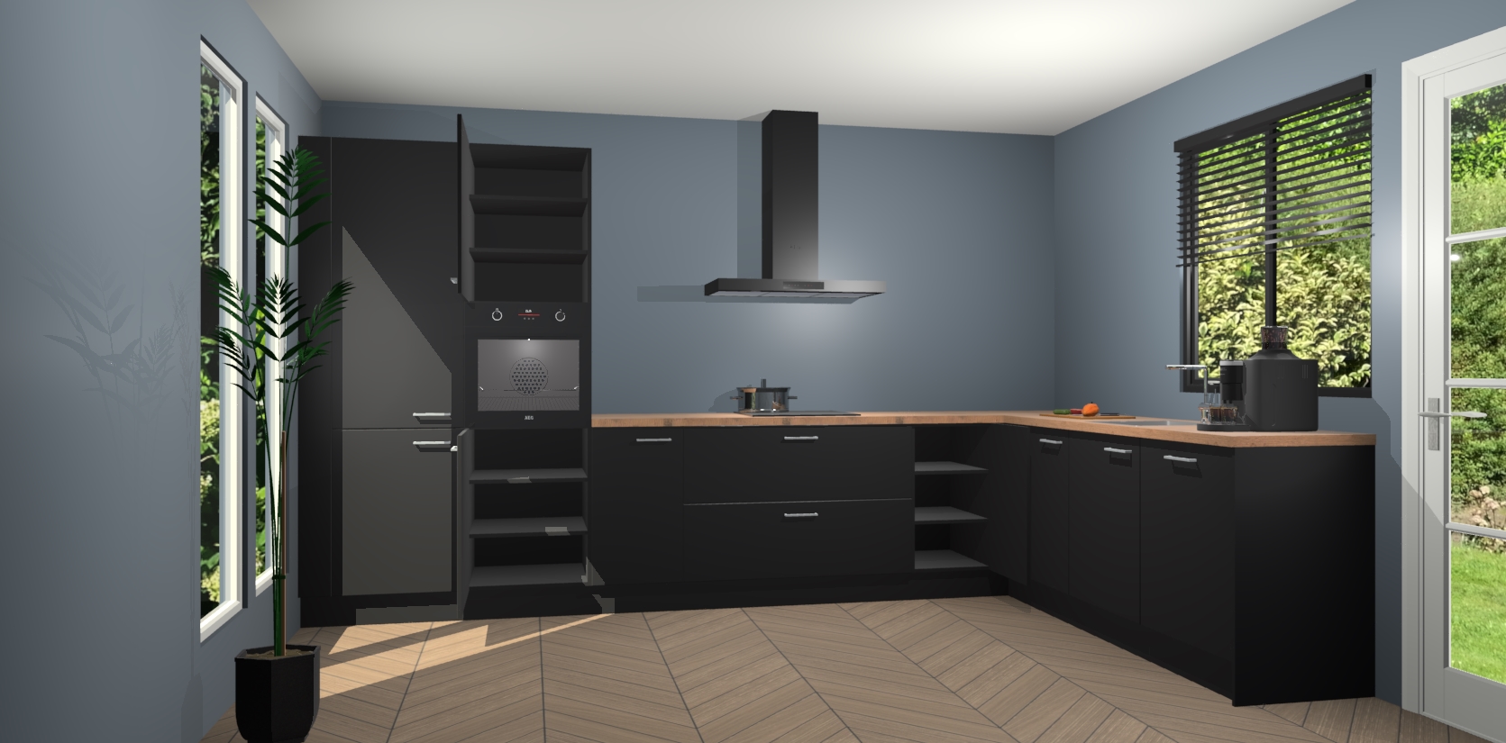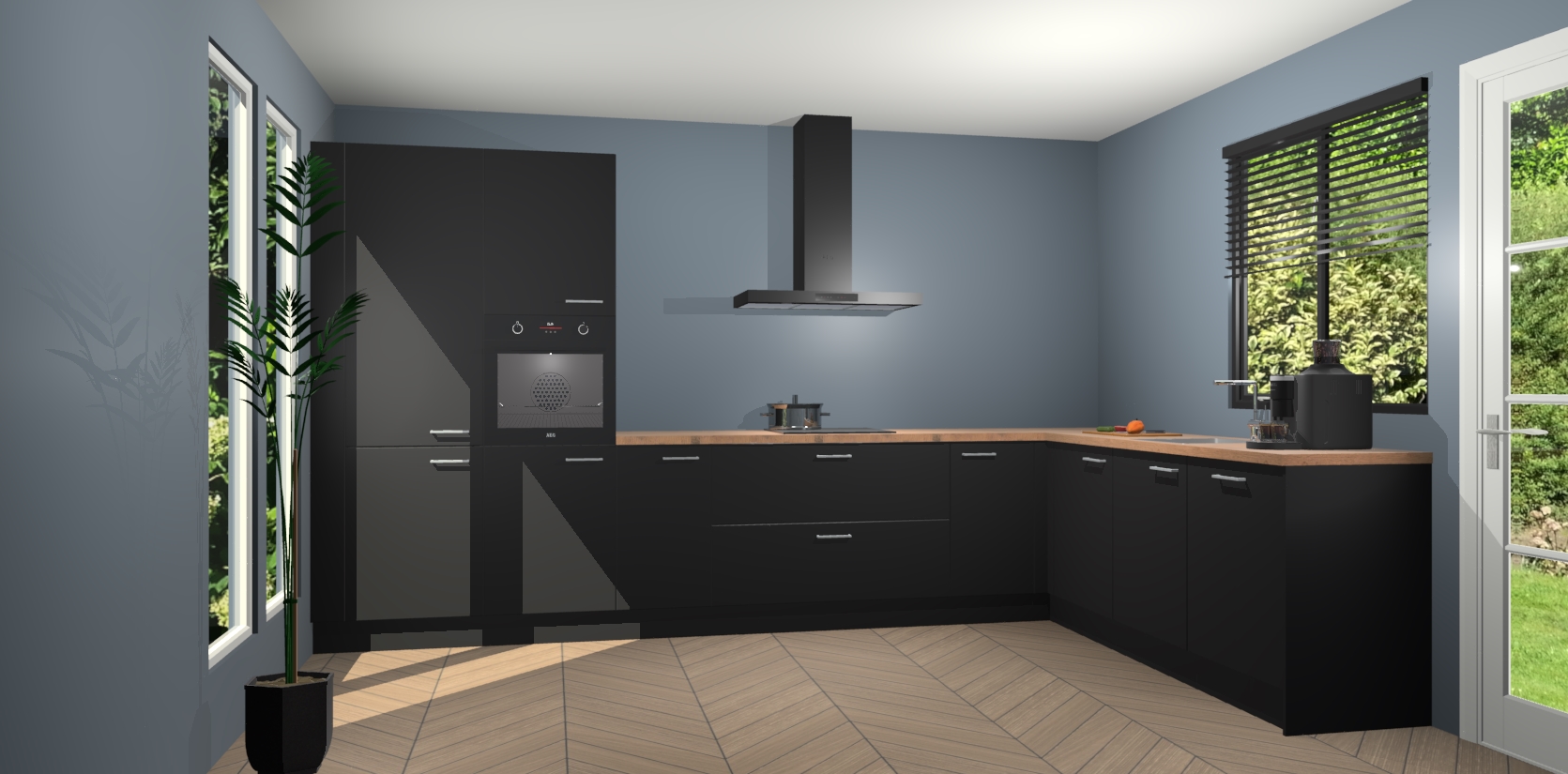 Met een modern, tijdloos design en ruime opslagruimte, zult u zich in no-time thuis voelen in uw nieuwe keuken. Uw leven wordt eenvoudiger met de soft-close deuren die voor het ultieme stille comfort zorgen - geen geluid dat u stoort terwijl u kookt. Ook is de keuken voorzien van 5 ingebouwde apparaten: een oven, inductie kookplaat, afzuigkap, vaatwasser en koelkast. Deze kunnen gemakkelijk na bestelling worden bijgewerkt naar AEG - waardoor uw luxe ervaring compleet is.