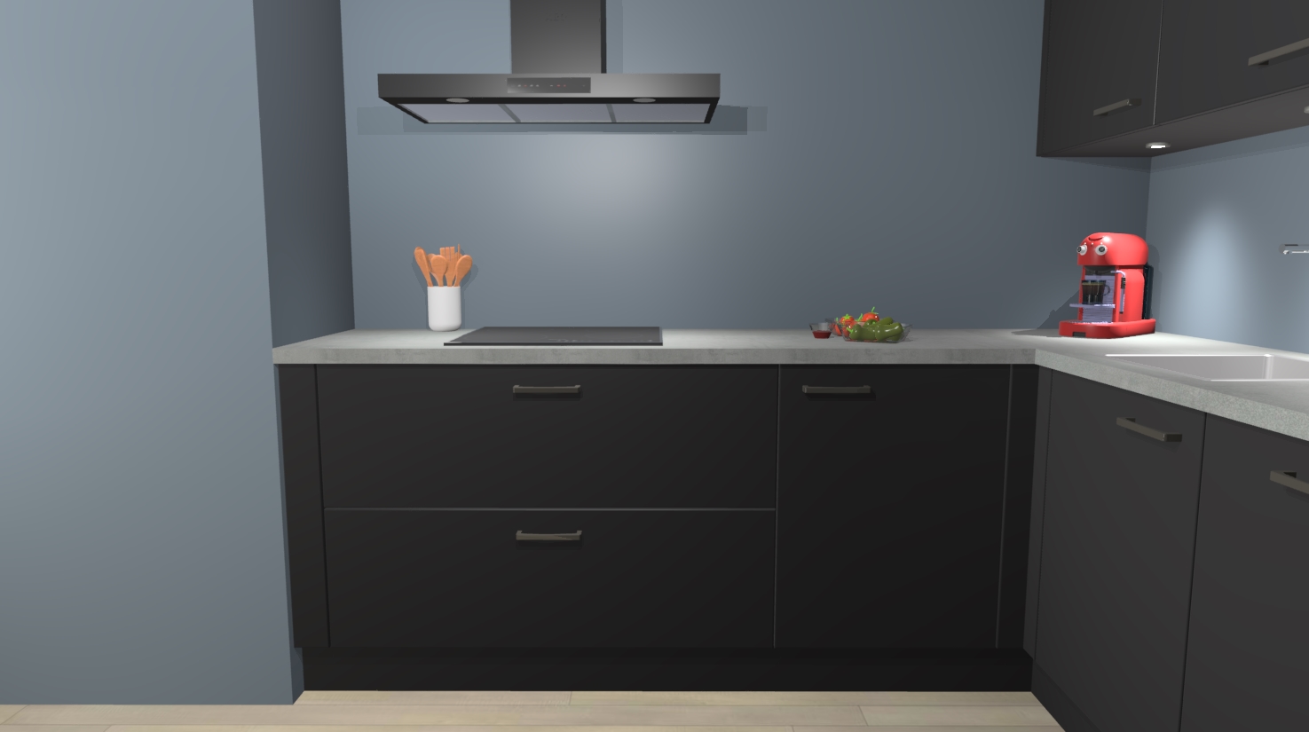 In deze box zijn alle kleuren verzameld van de deuren en werkbladen. Vraag de gratis kleurenbox aan en kijk thuis rustig verder!