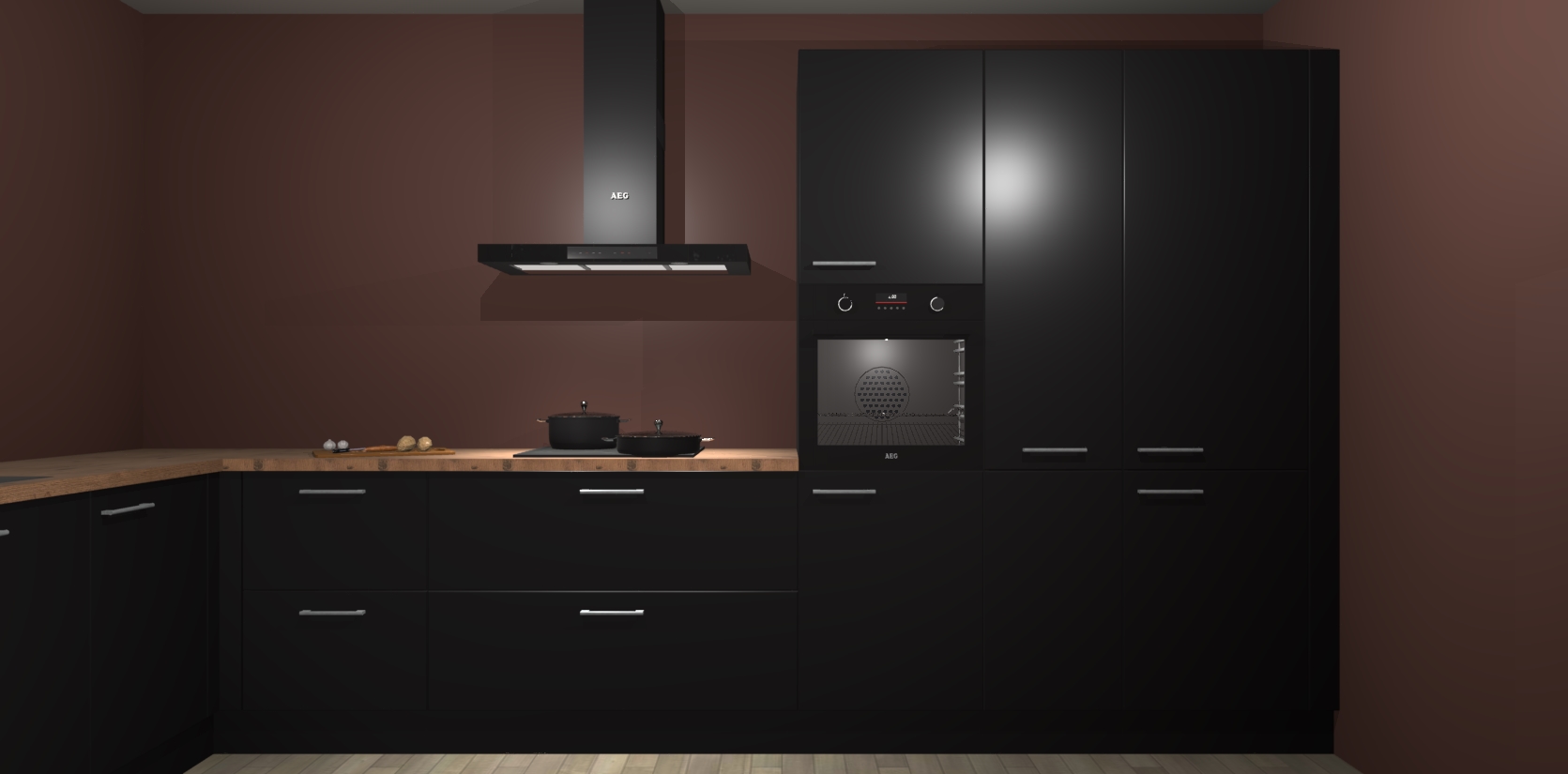 Welkom bij de zwarte keuken Nuuk. Deze prachtige keuken zal de komende jaren het middelpunt van de belangstelling in uw huis zijn. Uitgerust met vijf inbouwapparaten komt u nooit kookgereedschap tekort.