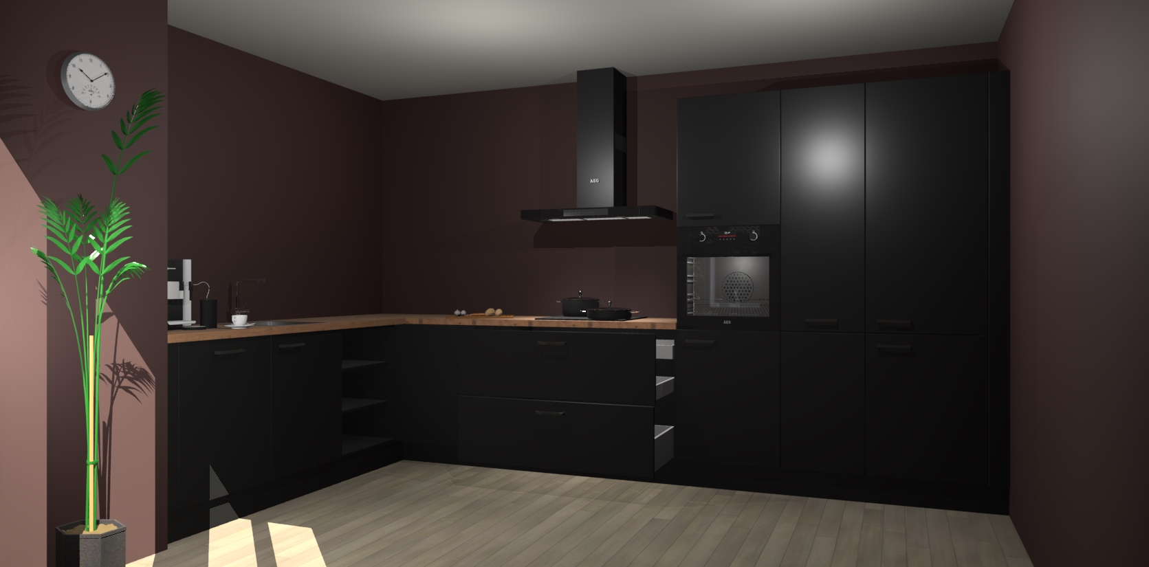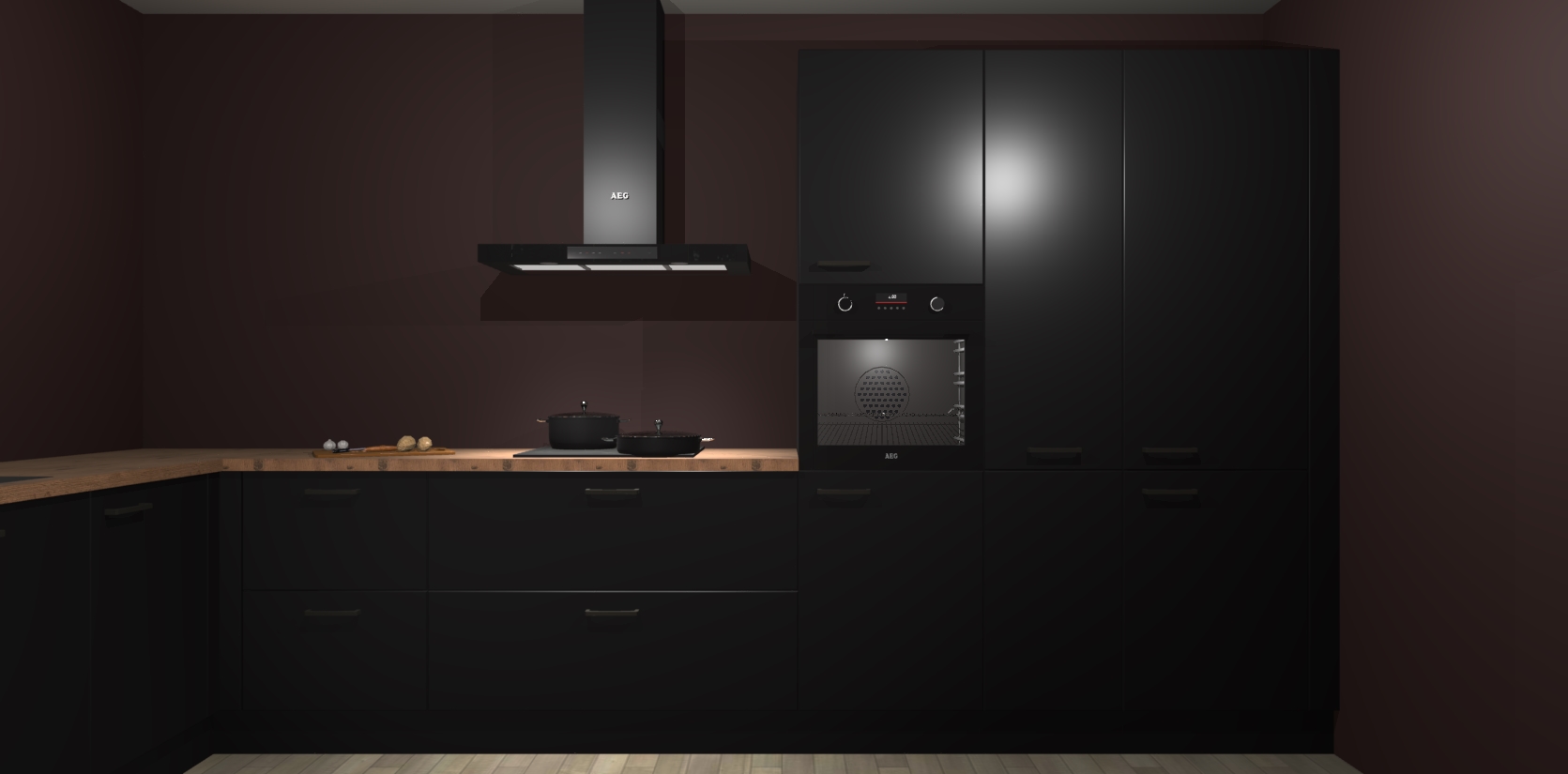 Welkom bij de zwarte keuken Nuuk. Deze prachtige keuken zal de komende jaren het middelpunt van de belangstelling in uw huis zijn. Uitgerust met vijf inbouwapparaten komt u nooit kookgereedschap tekort.