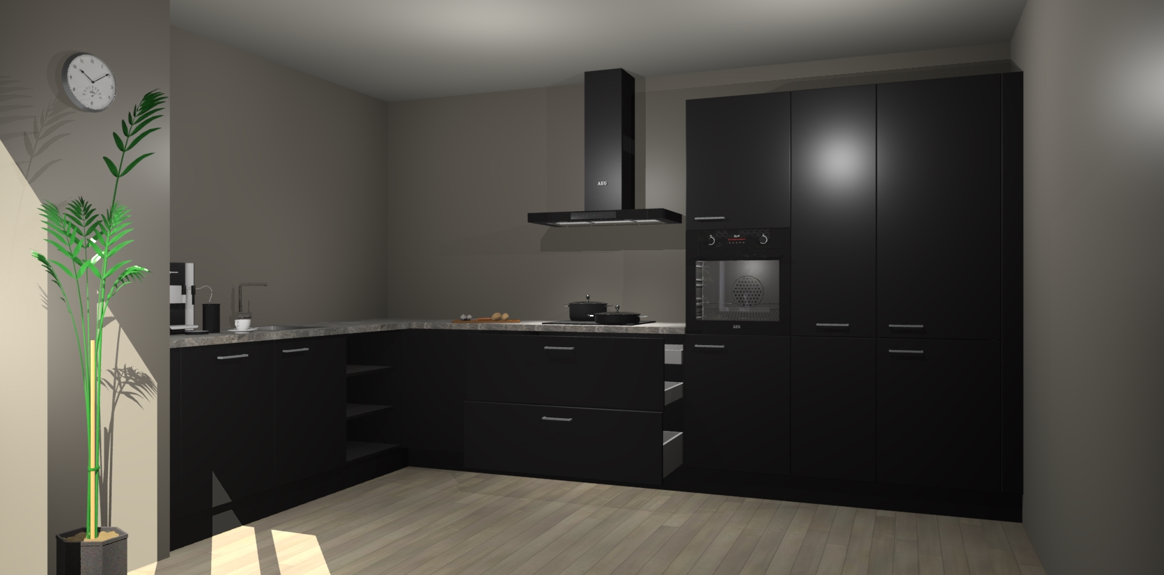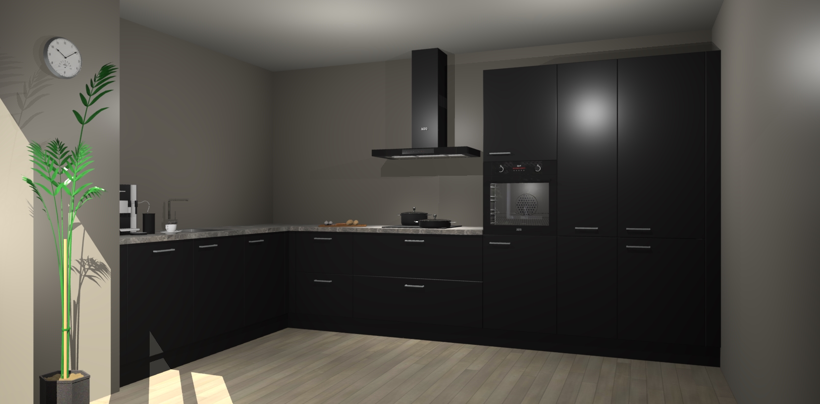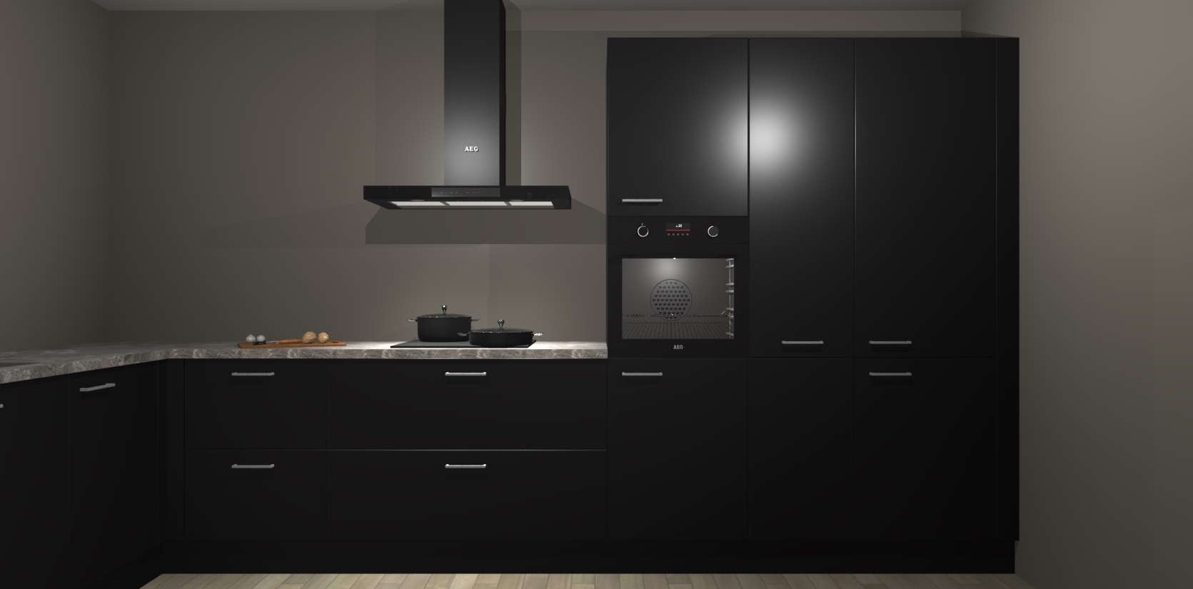 Welkom bij de zwarte keuken Nuuk. Deze prachtige keuken zal de komende jaren het middelpunt van de belangstelling in uw huis zijn. Uitgerust met vijf inbouwapparaten komt u nooit kookgereedschap tekort.