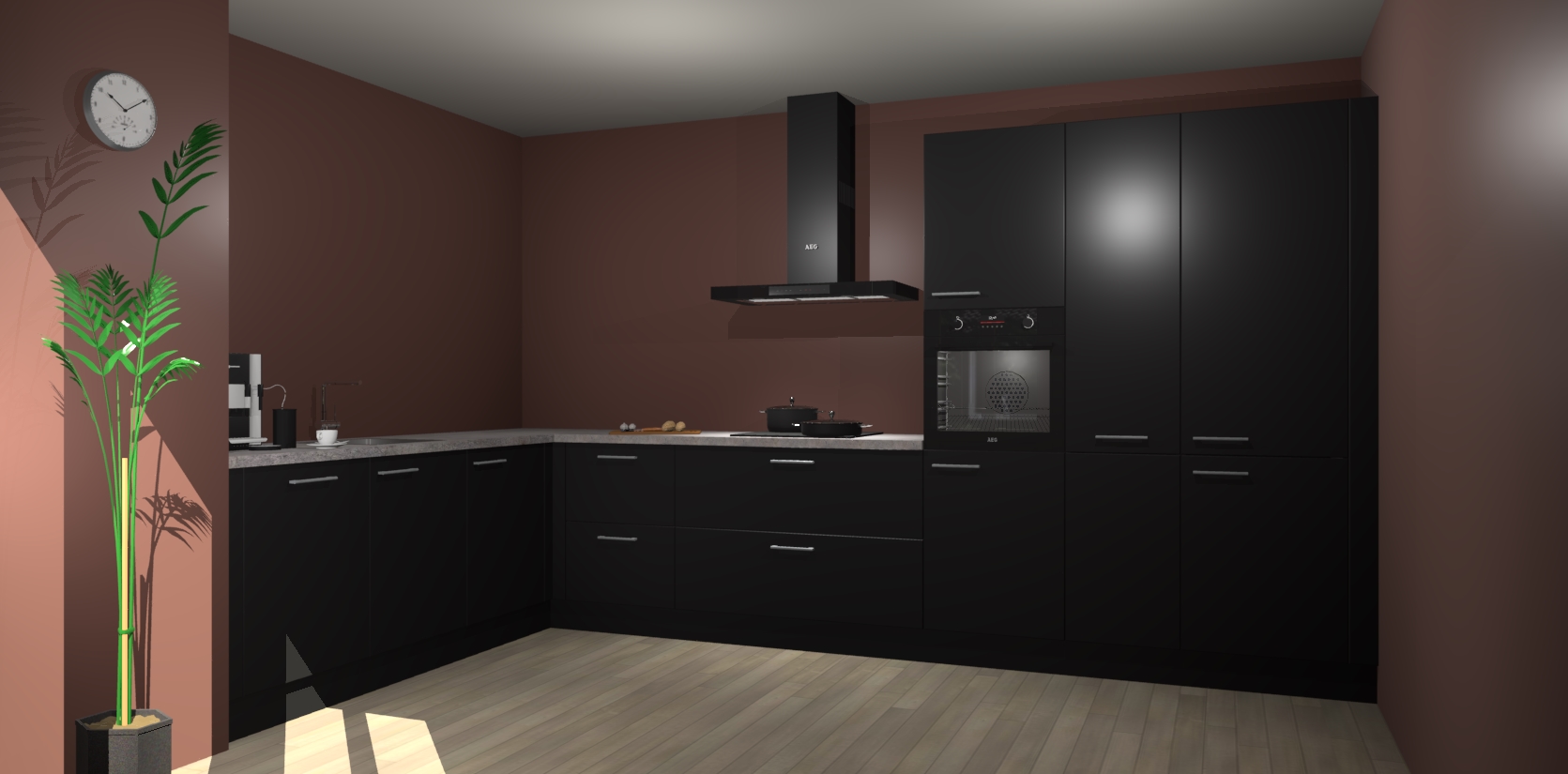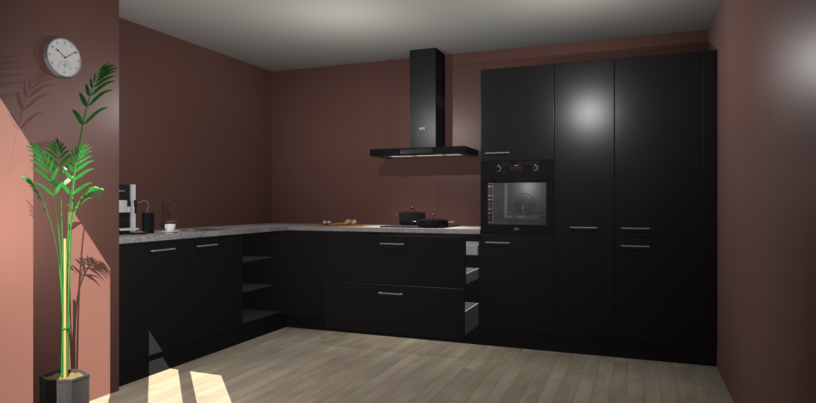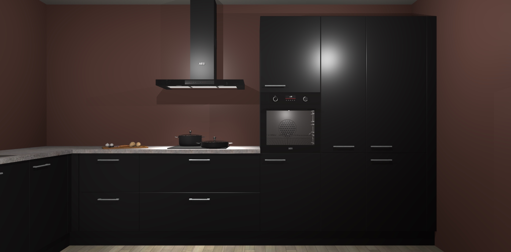 Welkom bij de zwarte keuken Nuuk. Deze prachtige keuken zal de komende jaren het middelpunt van de belangstelling in uw huis zijn. Uitgerust met vijf inbouwapparaten komt u nooit kookgereedschap tekort.