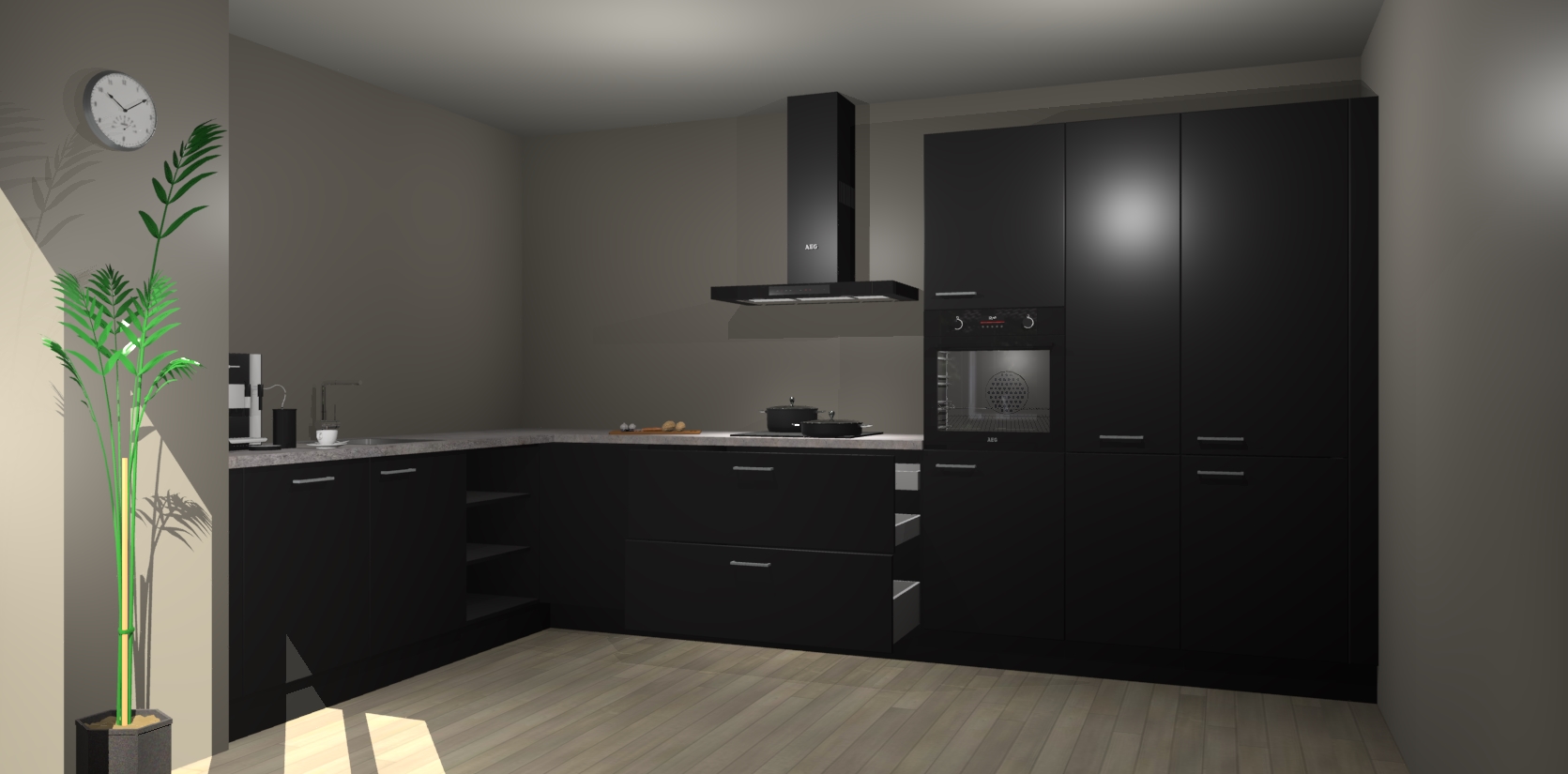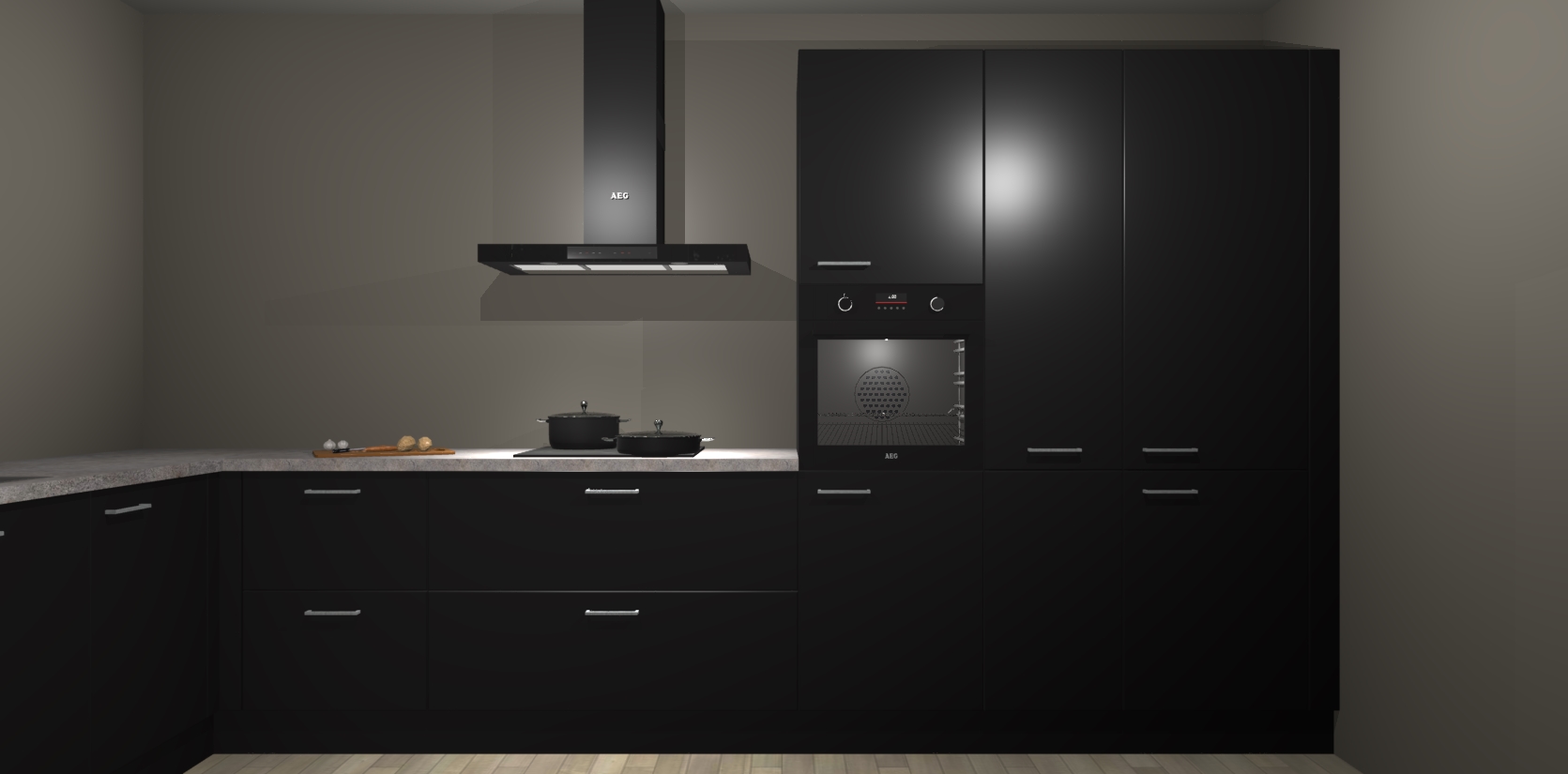 Welkom bij de zwarte keuken Nuuk. Deze prachtige keuken zal de komende jaren het middelpunt van de belangstelling in uw huis zijn. Uitgerust met vijf inbouwapparaten komt u nooit kookgereedschap tekort.