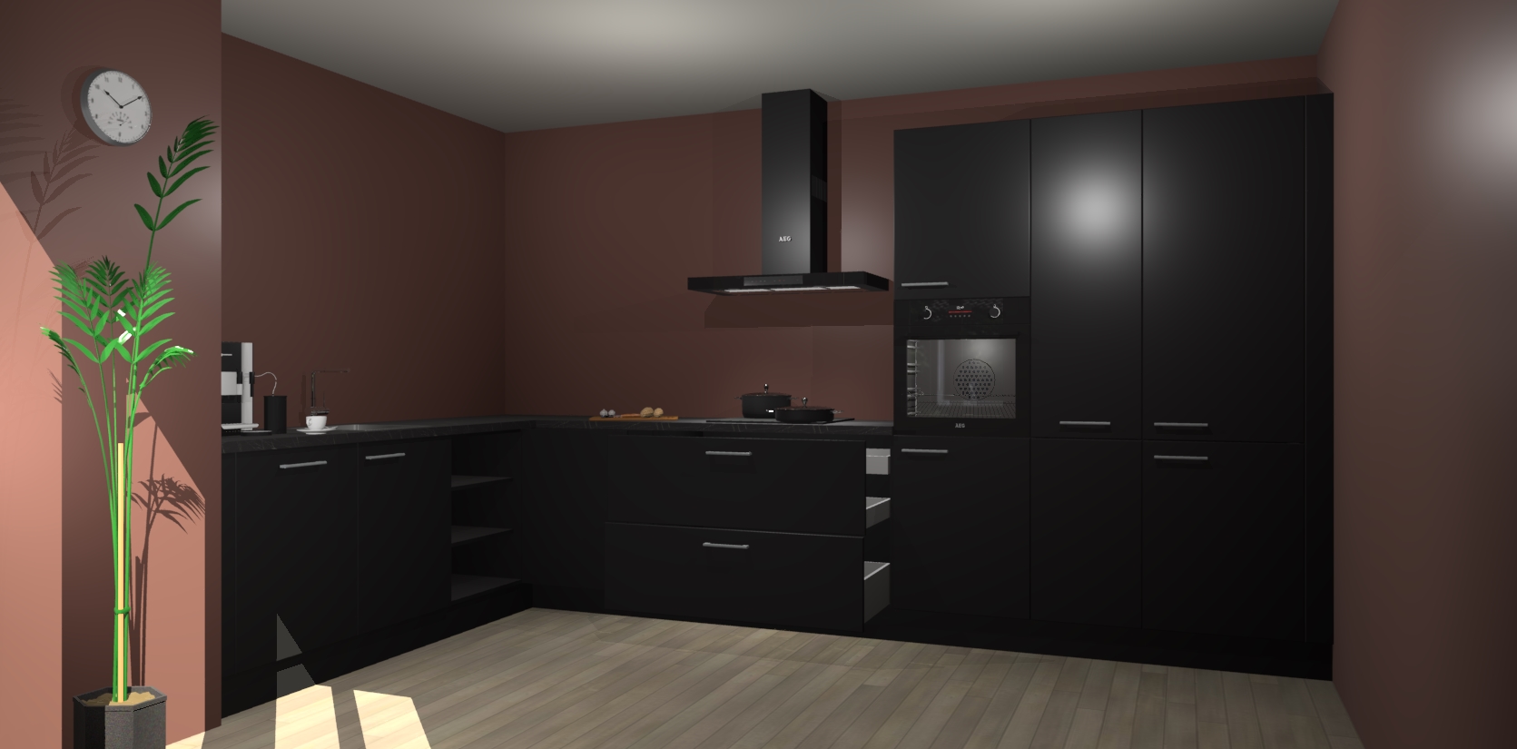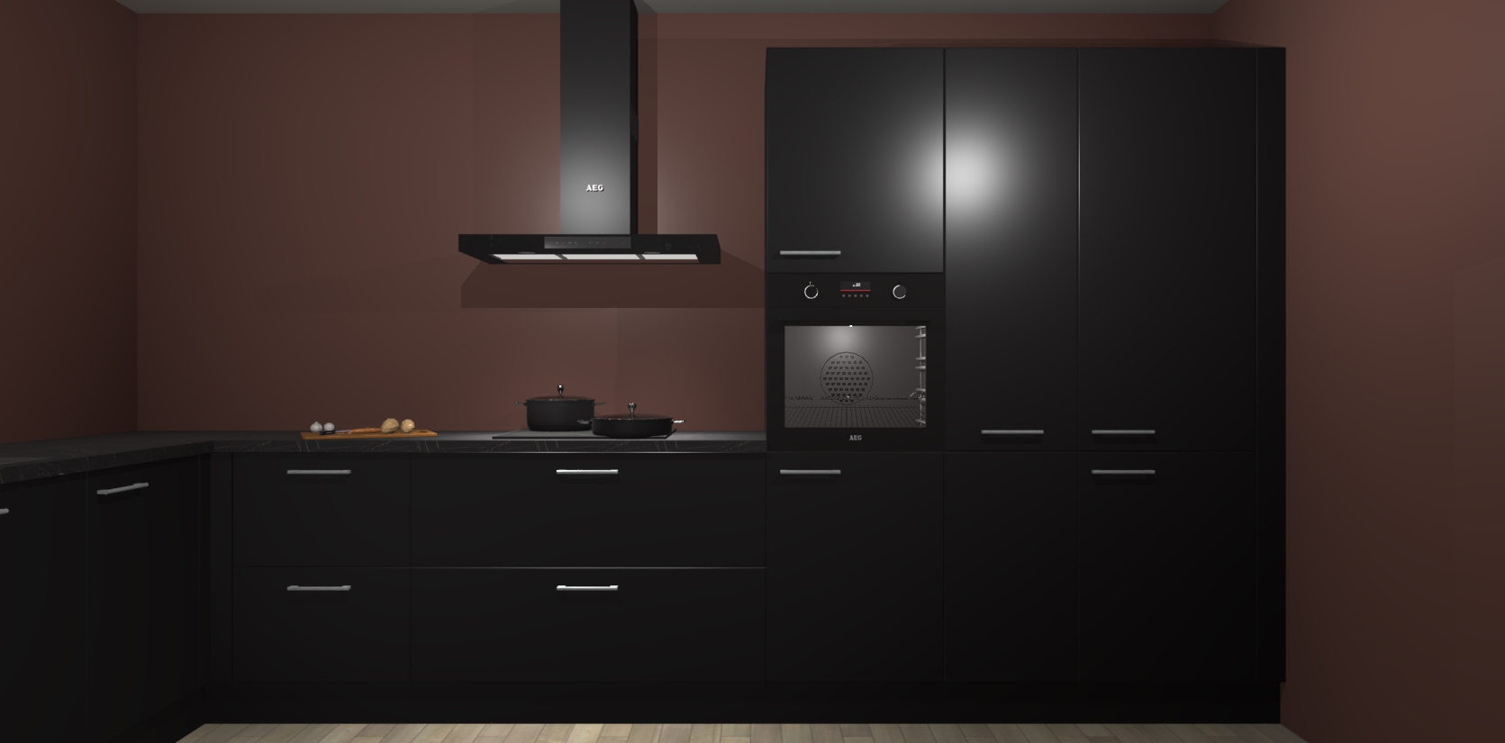 Welkom bij de zwarte keuken Nuuk. Deze prachtige keuken zal de komende jaren het middelpunt van de belangstelling in uw huis zijn. Uitgerust met vijf inbouwapparaten komt u nooit kookgereedschap tekort.