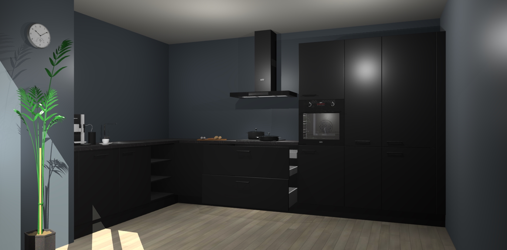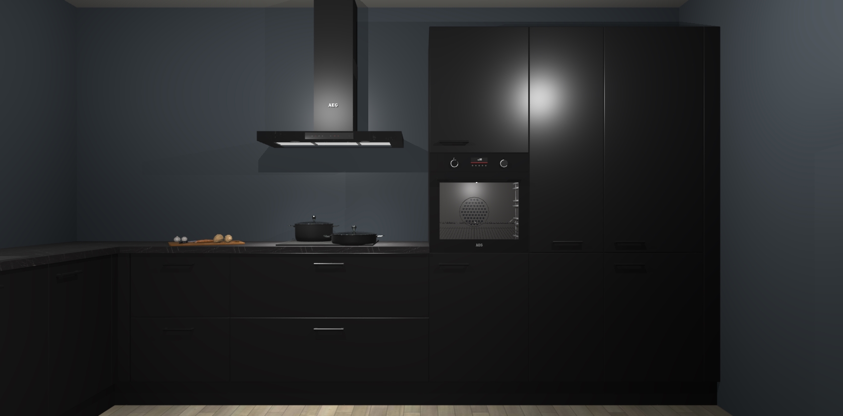 Welkom bij de zwarte keuken Nuuk. Deze prachtige keuken zal de komende jaren het middelpunt van de belangstelling in uw huis zijn. Uitgerust met vijf inbouwapparaten komt u nooit kookgereedschap tekort.