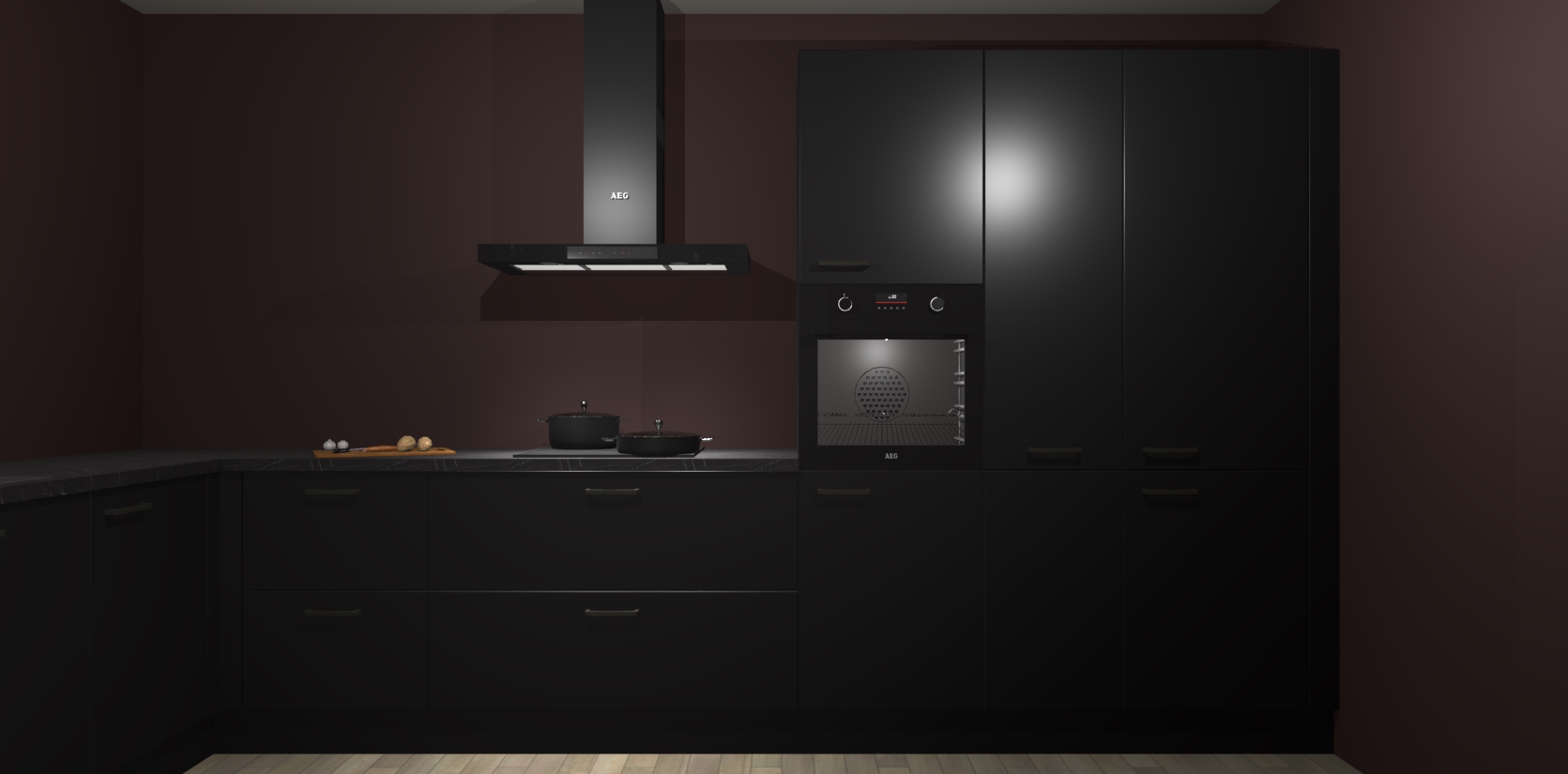 Welkom bij de zwarte keuken Nuuk. Deze prachtige keuken zal de komende jaren het middelpunt van de belangstelling in uw huis zijn. Uitgerust met vijf inbouwapparaten komt u nooit kookgereedschap tekort.