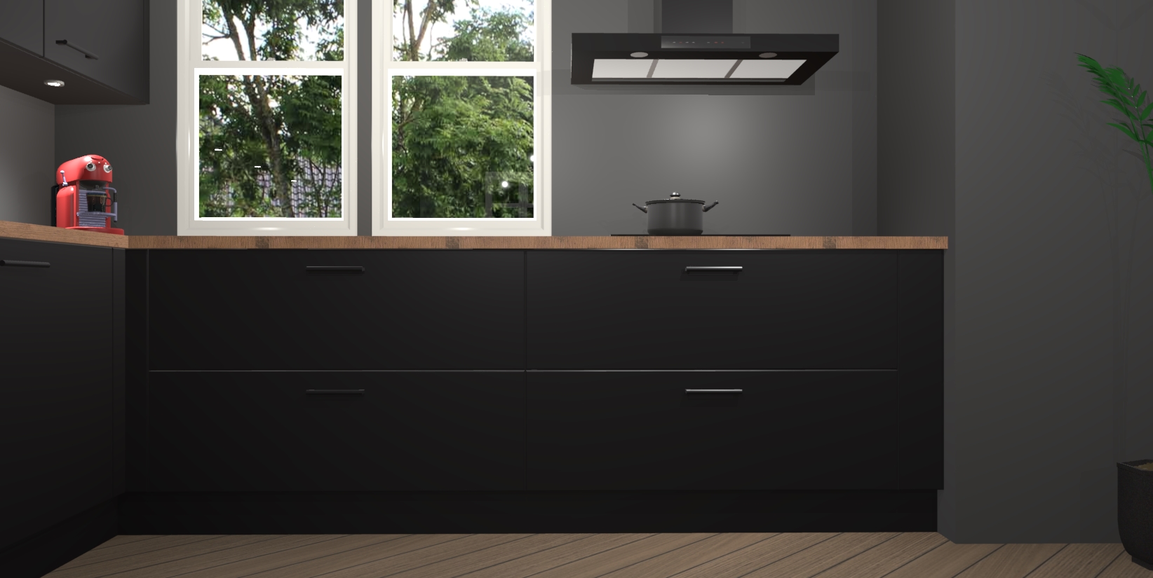 Inclusief plinten, stelpoten en werkblad