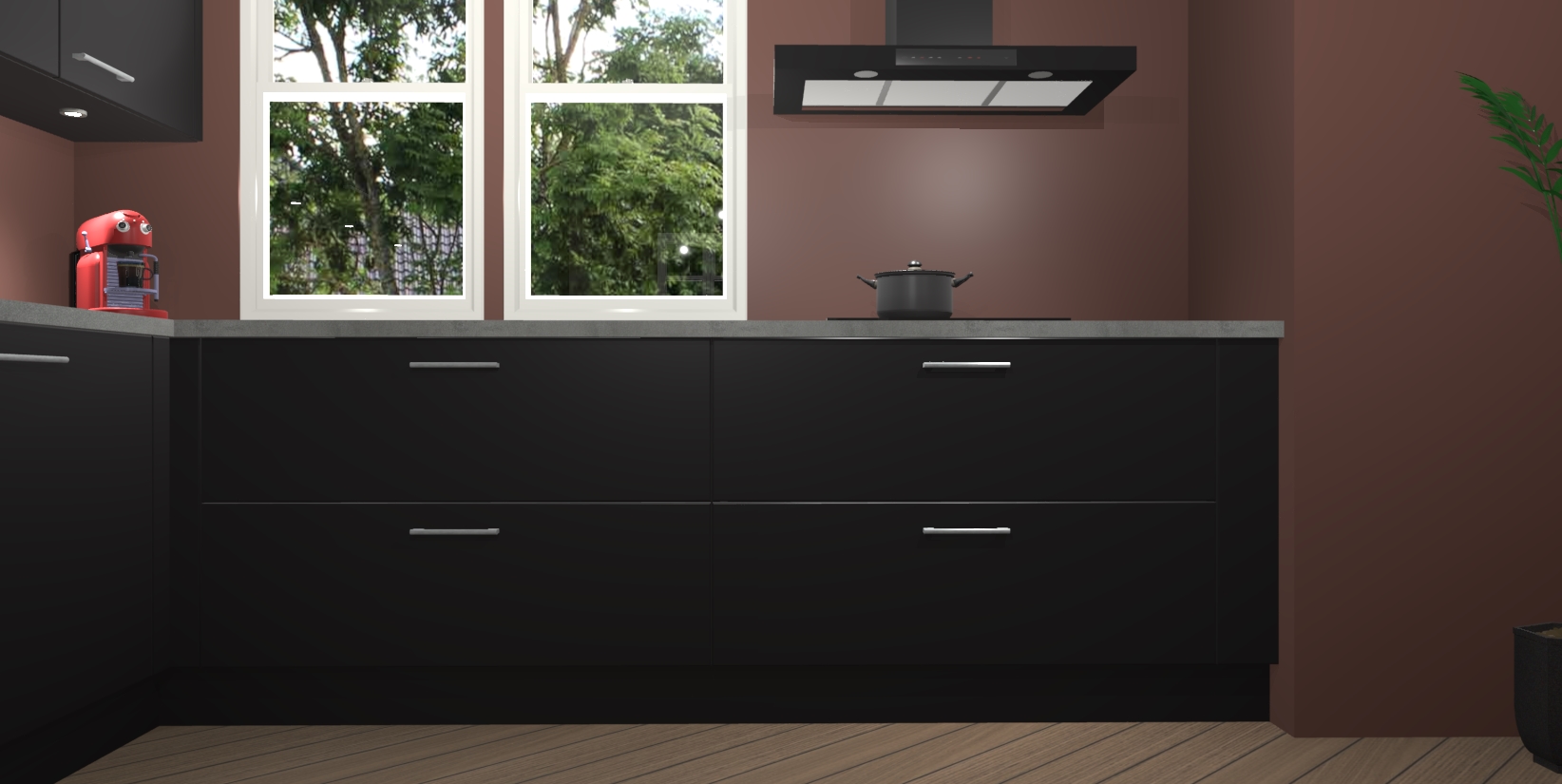 Inclusief plinten, stelpoten en werkblad