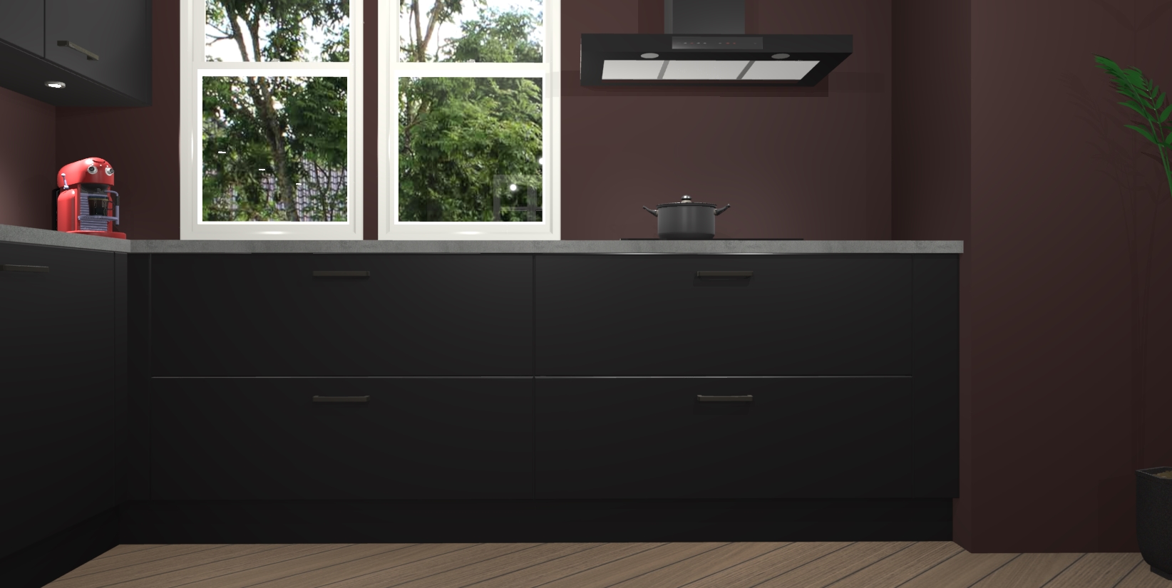 Inclusief plinten, stelpoten en werkblad