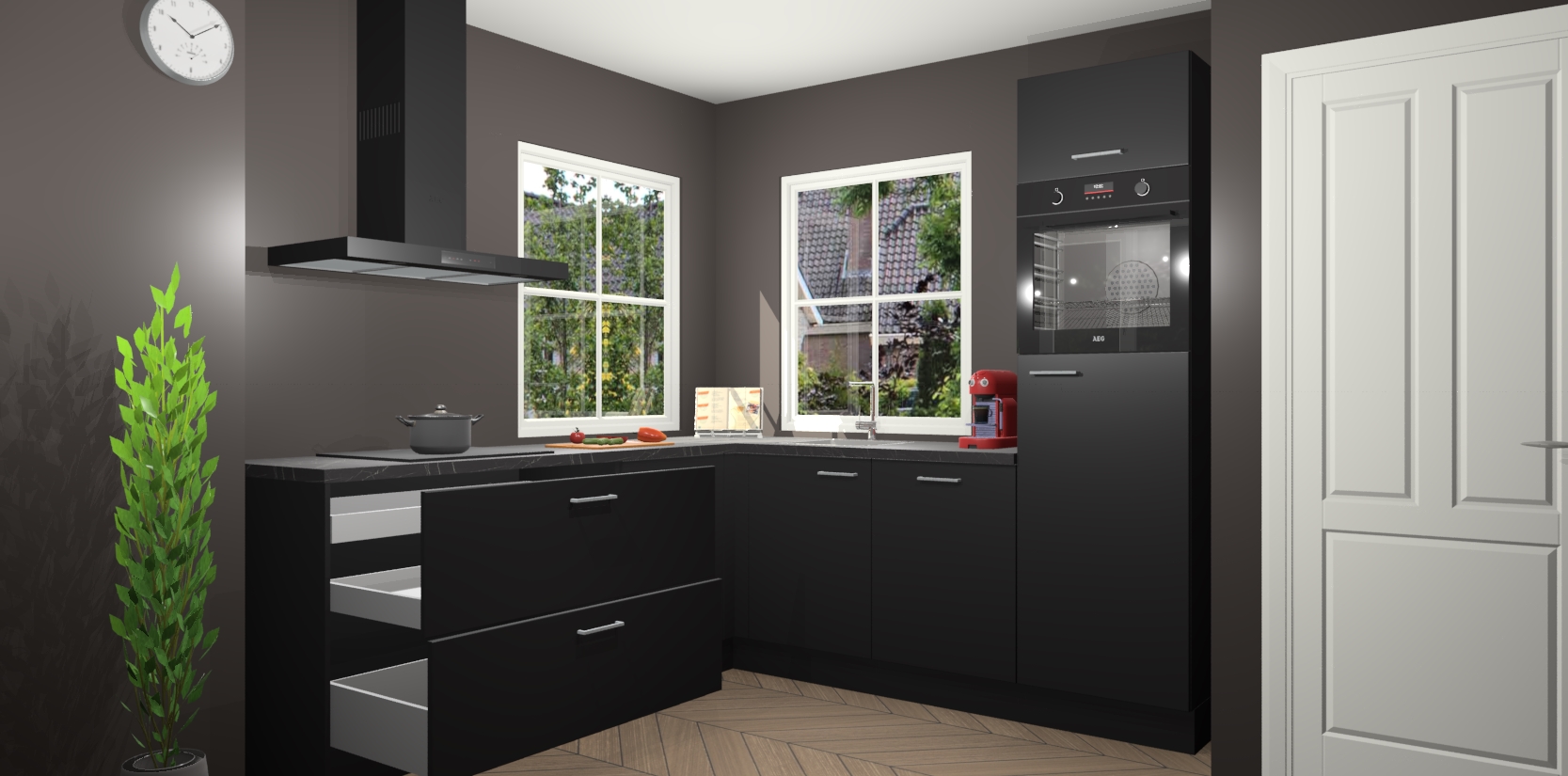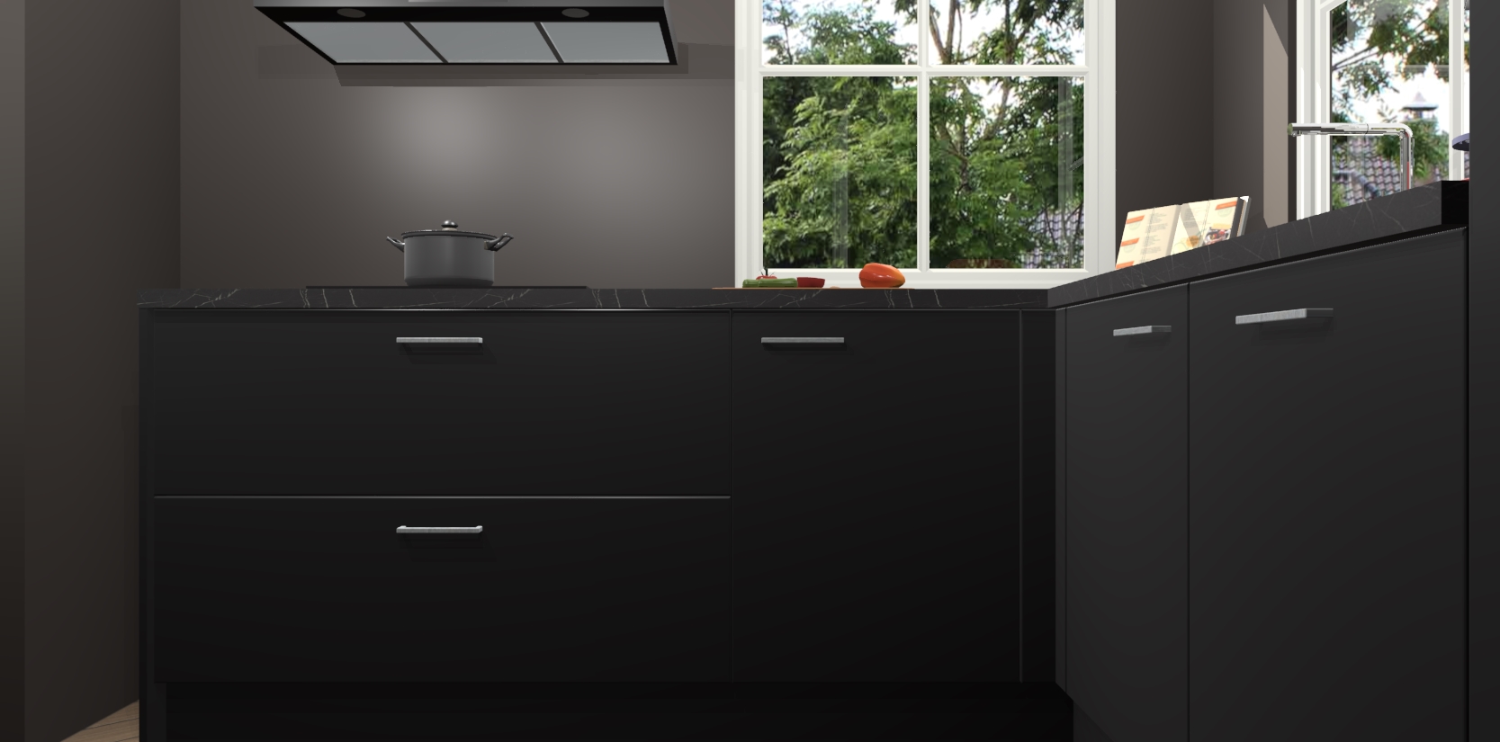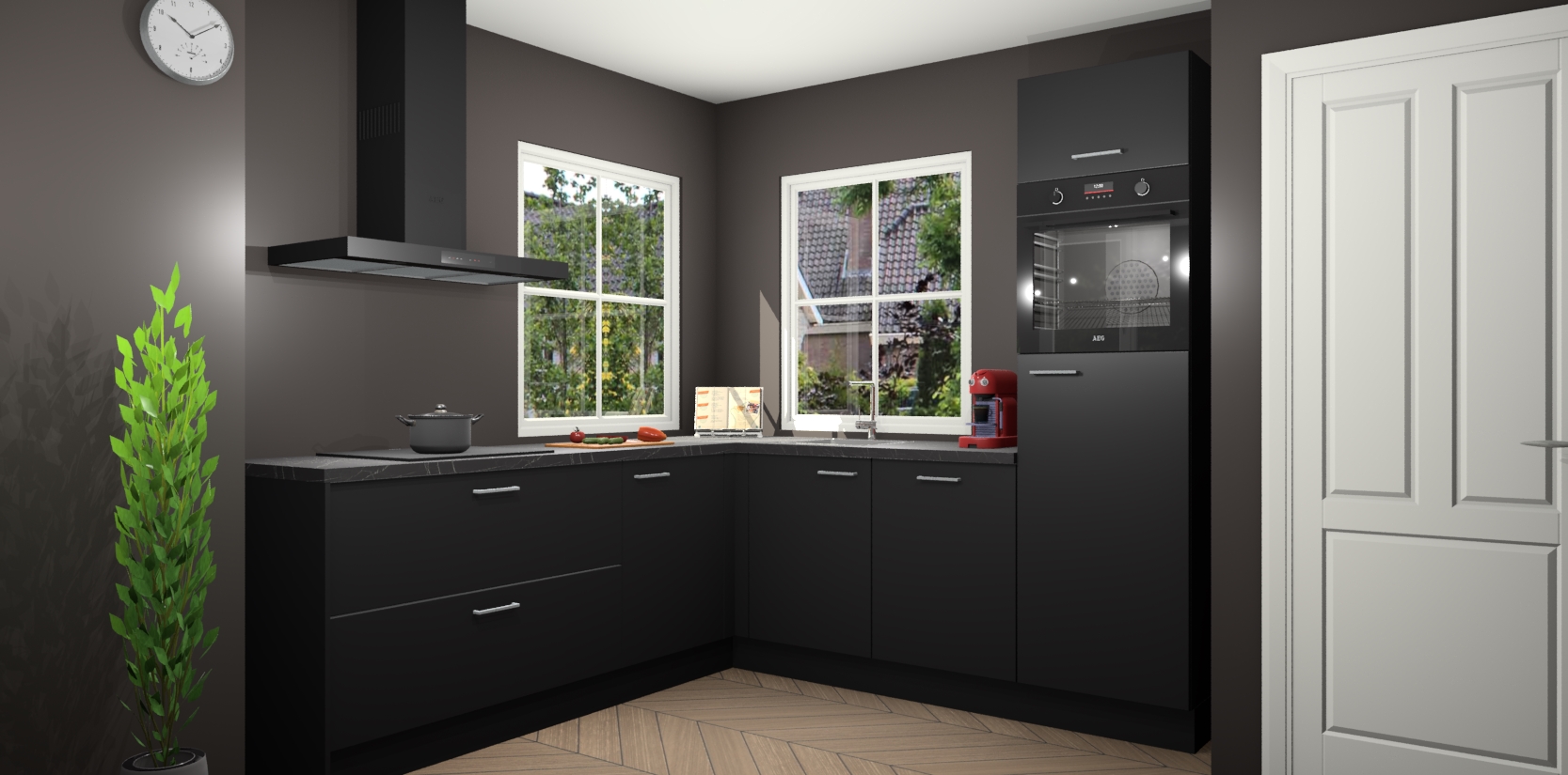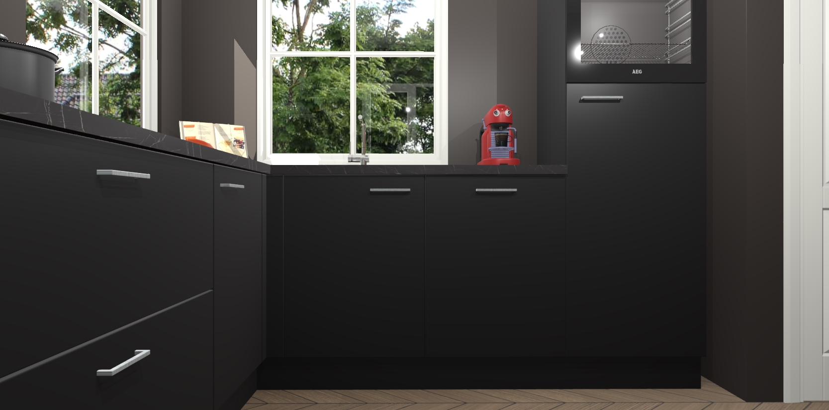 De Zwarte keuken Pai bevat vijf essentiële inbouwapparaten - een oven, inductiekookplaat, afzuigkap, vaatwasser en koelkast - zodat u er na levering meteen in kunt. Voor de slimme kopers die weten dat apparaten vaak het verschil kunnen maken tussen functioneel en luxueus, bieden we eenvoudige upgradeopties naar AEG, van oven naar combimagnetron na bestelling of naar een kookplaat met geïntrigeerde afzuiging. En met onze vaste lage prijs en snelle levering binnen zeven weken vanaf de orderbevestiging hoeft u zich geen zorgen te maken over verborgen kosten of lange levertijden die uw droomkeuken kunnen vertragen.