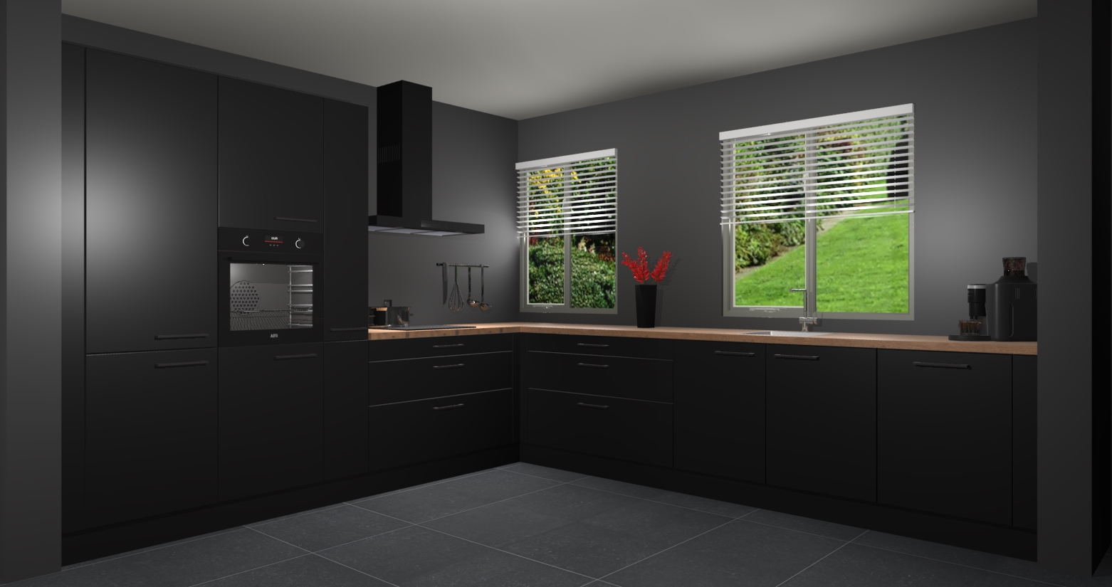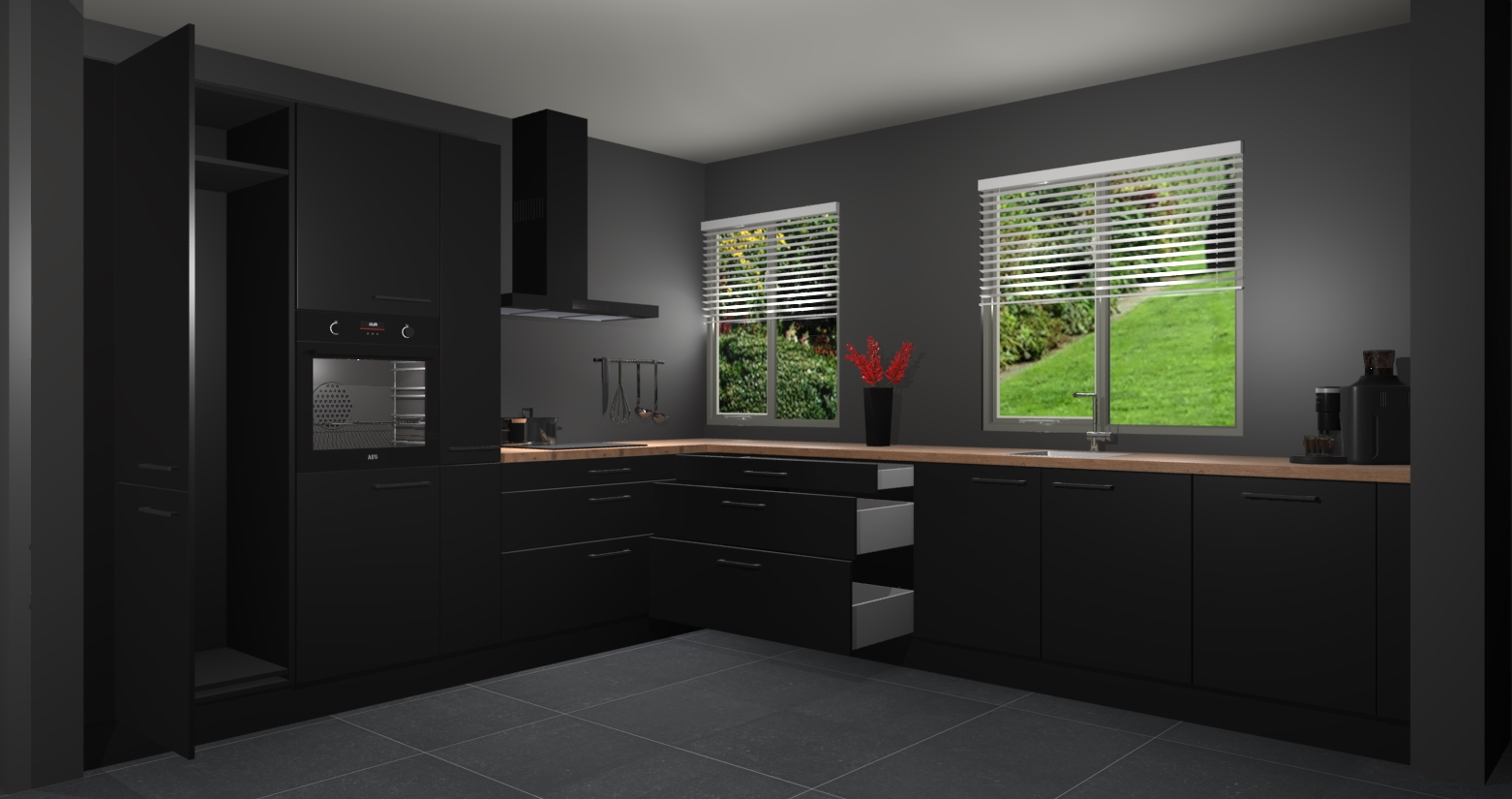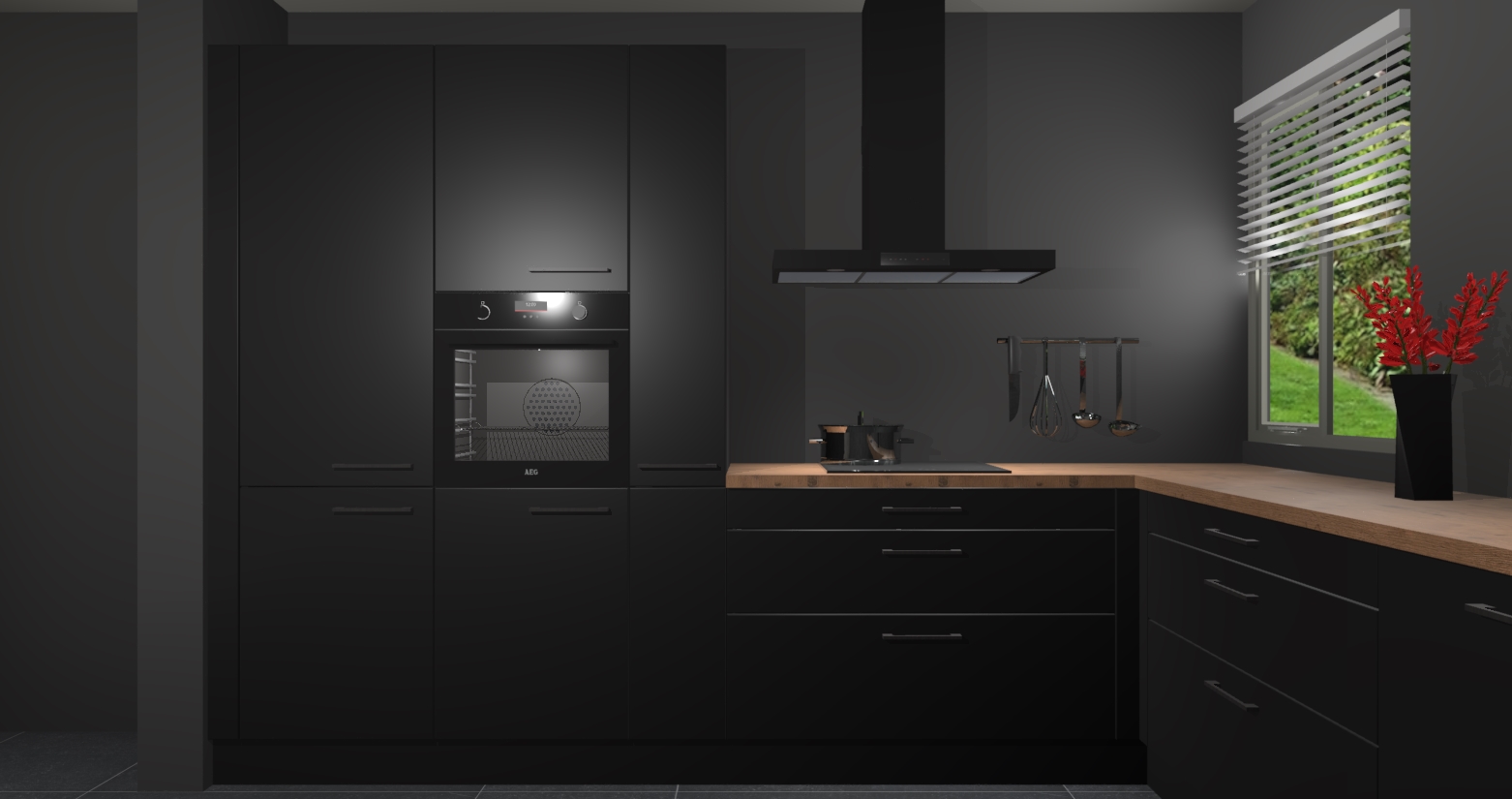 Welkom bij de Zwarte keuken Palermo. Deze prachtige keuken zal de komende jaren het middelpunt van de belangstelling in uw huis zijn. Uitgerust met vijf inbouwapparaten komt u nooit kookgereedschap tekort. Bovendien geeft de warme houtlook elke ruimte een uitnodigende en tijdloze uitstraling.
