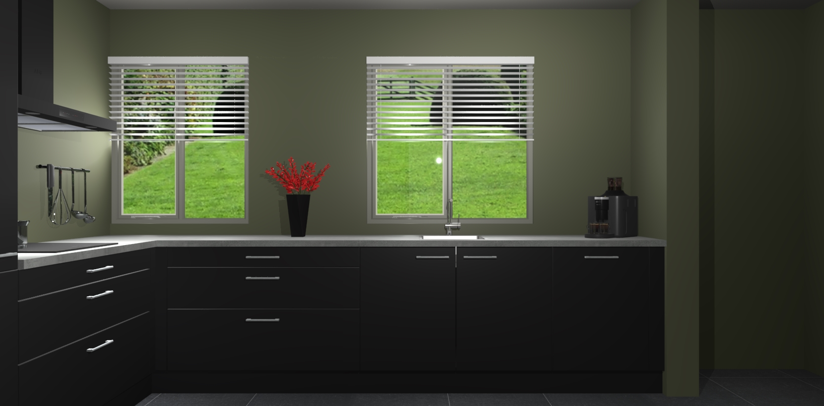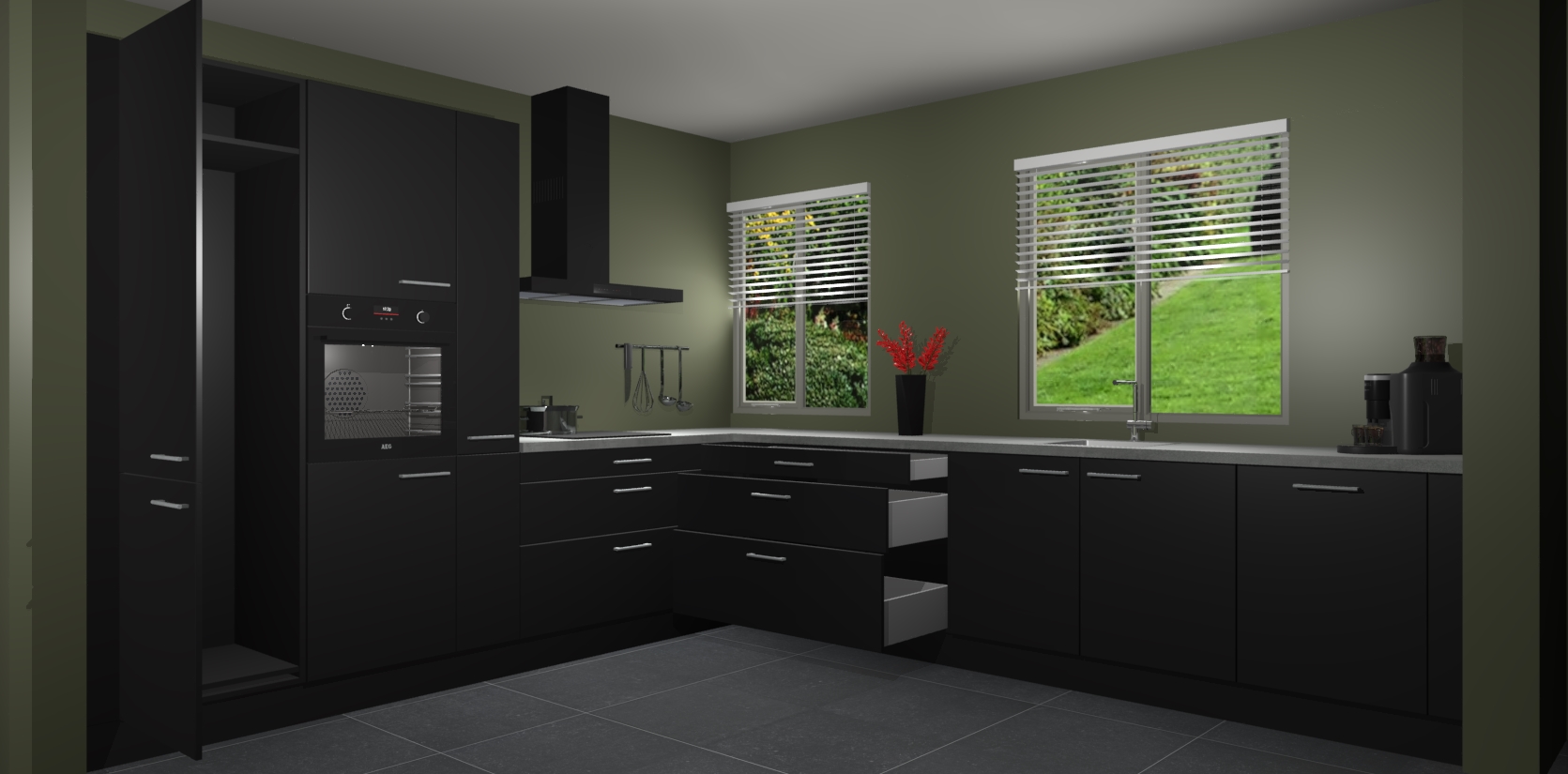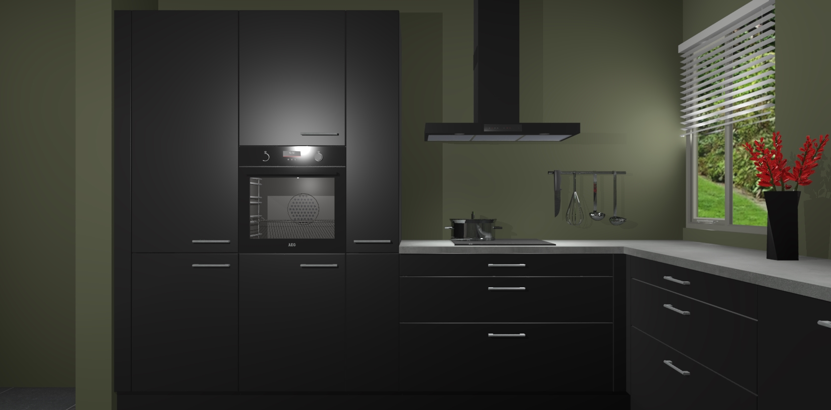 Welkom bij de Zwarte keuken Palermo. Deze prachtige keuken zal de komende jaren het middelpunt van de belangstelling in uw huis zijn. Uitgerust met vijf inbouwapparaten komt u nooit kookgereedschap tekort. Bovendien geeft de warme houtlook elke ruimte een uitnodigende en tijdloze uitstraling.