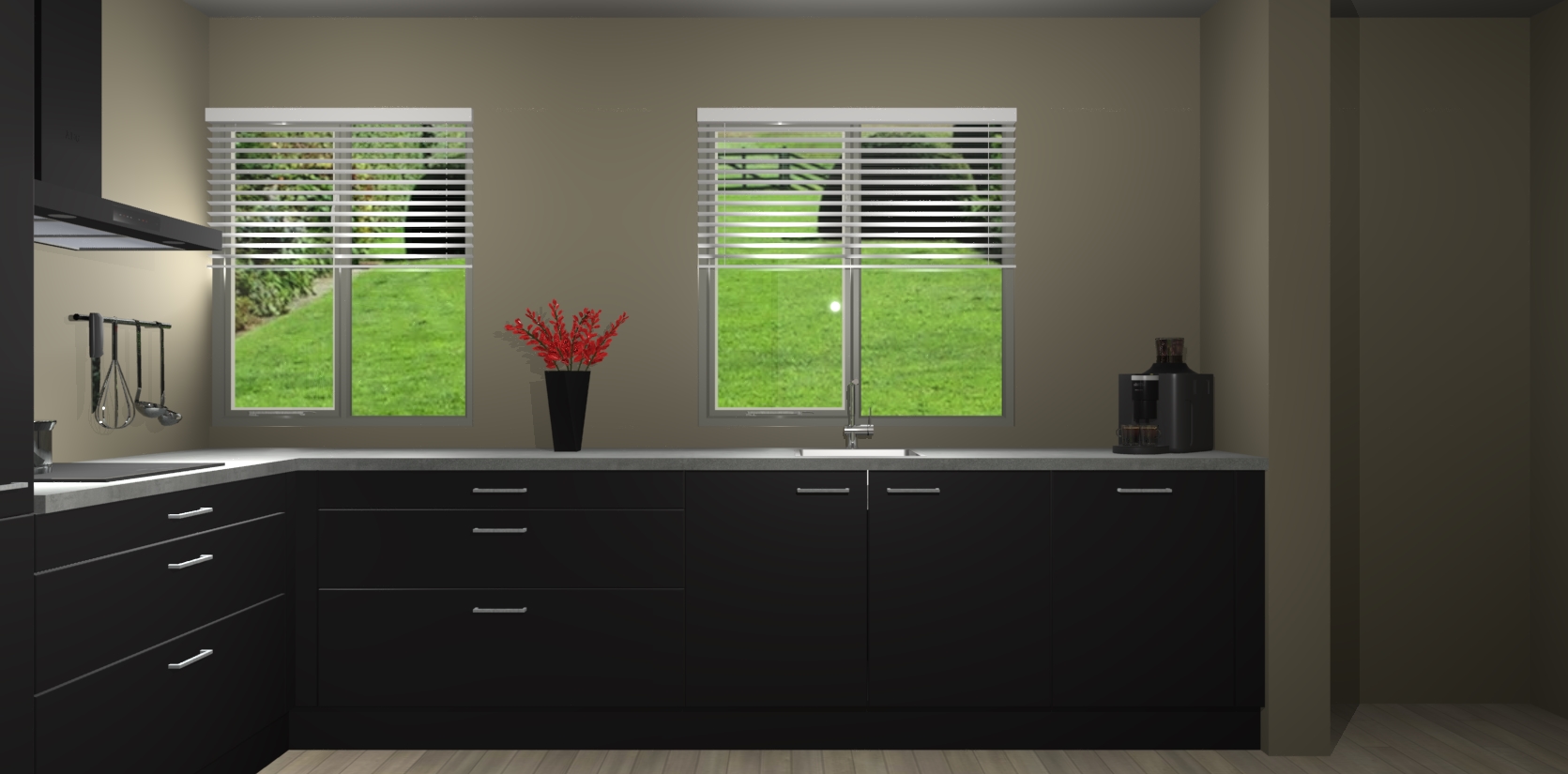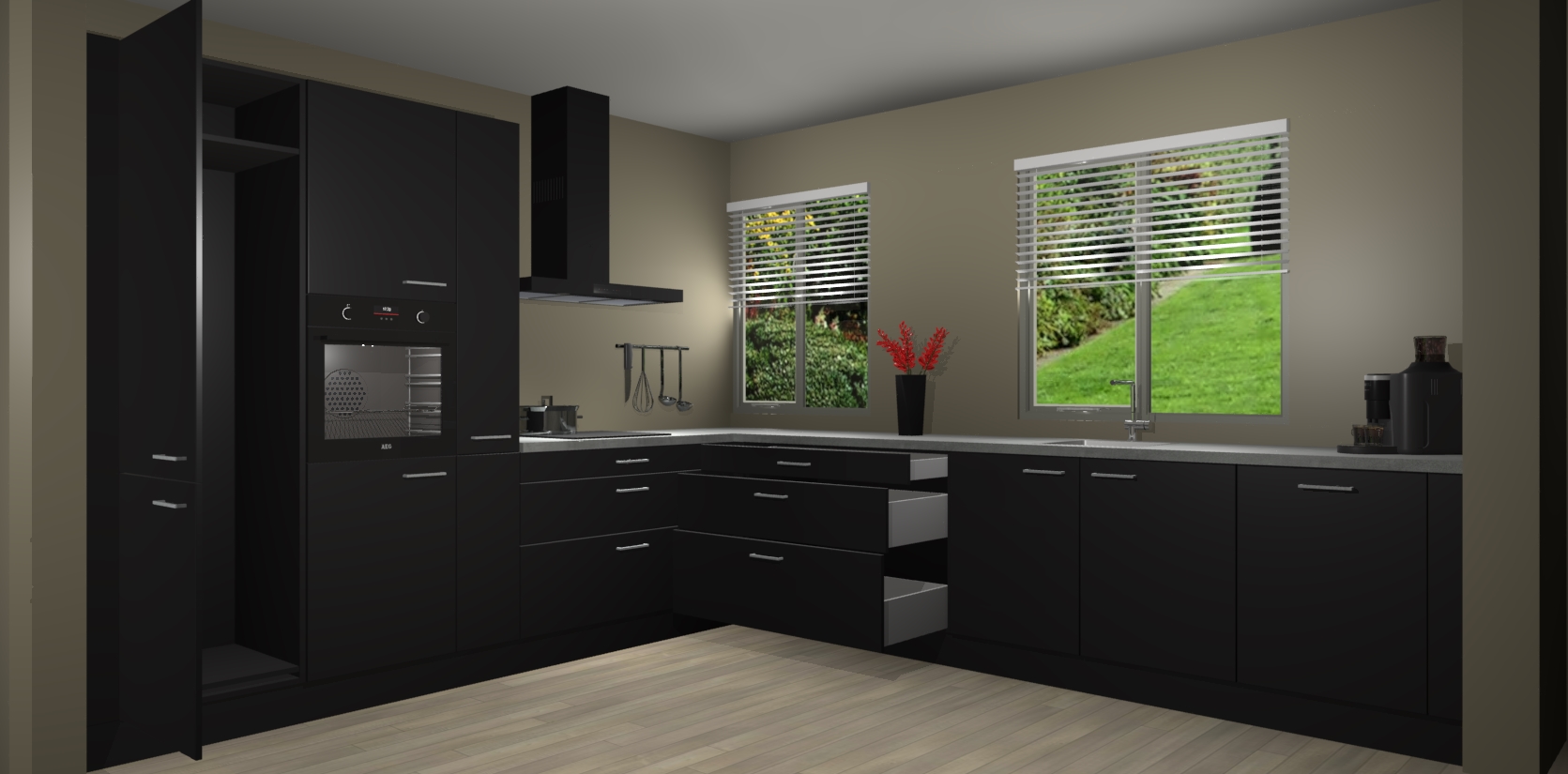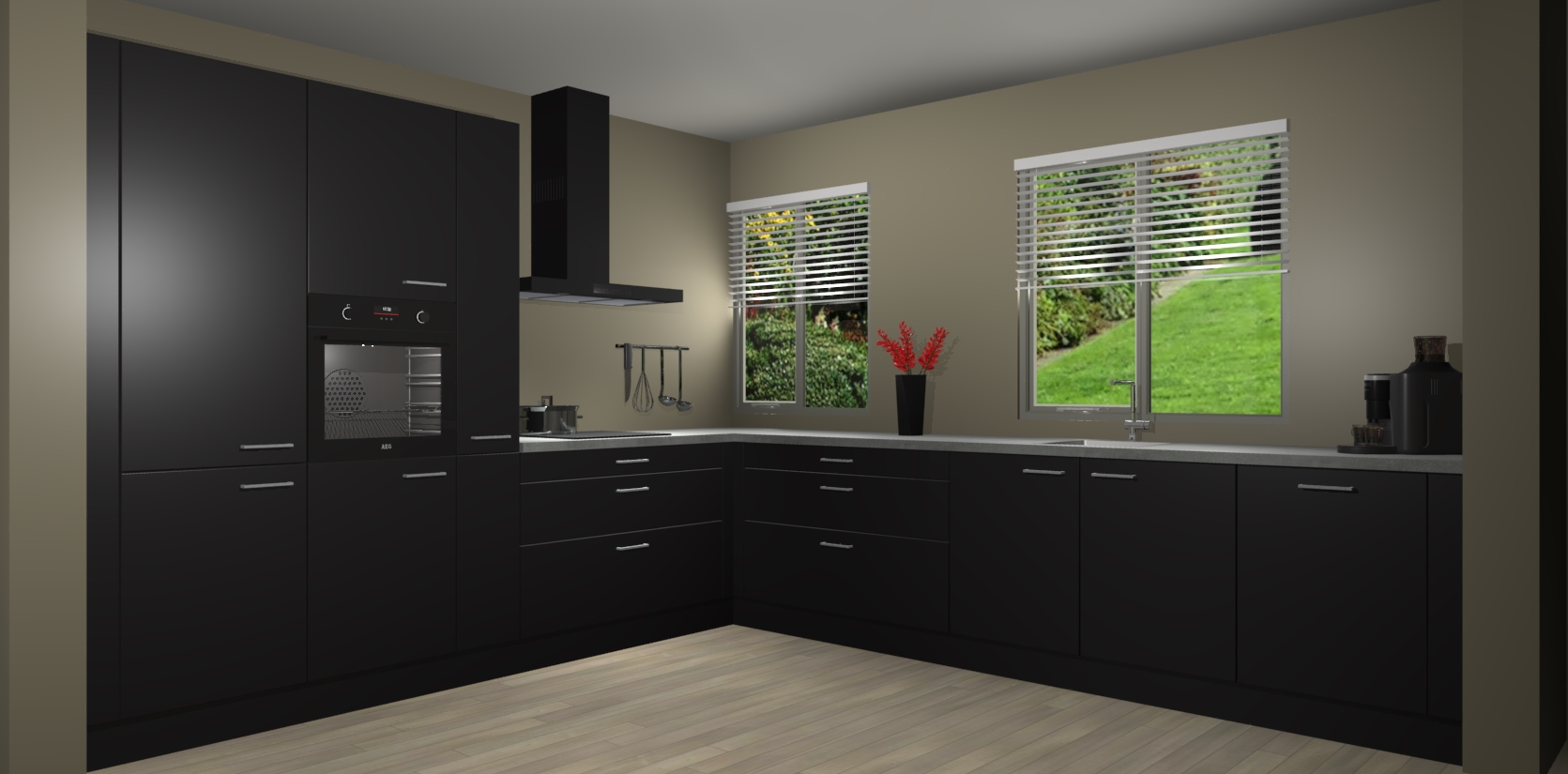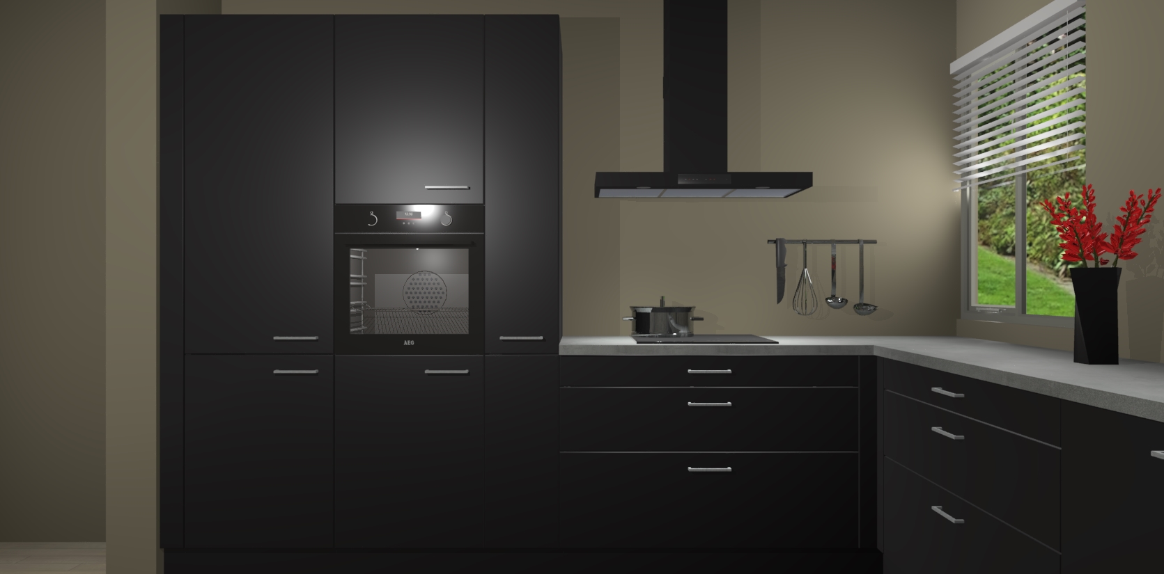Welkom bij de Zwarte keuken Palermo. Deze prachtige keuken zal de komende jaren het middelpunt van de belangstelling in uw huis zijn. Uitgerust met vijf inbouwapparaten komt u nooit kookgereedschap tekort. Bovendien geeft de warme houtlook elke ruimte een uitnodigende en tijdloze uitstraling.