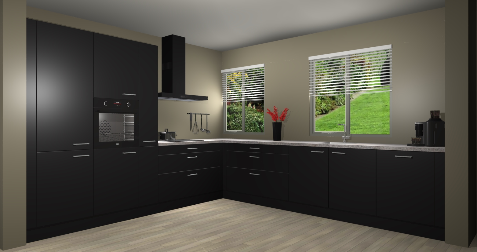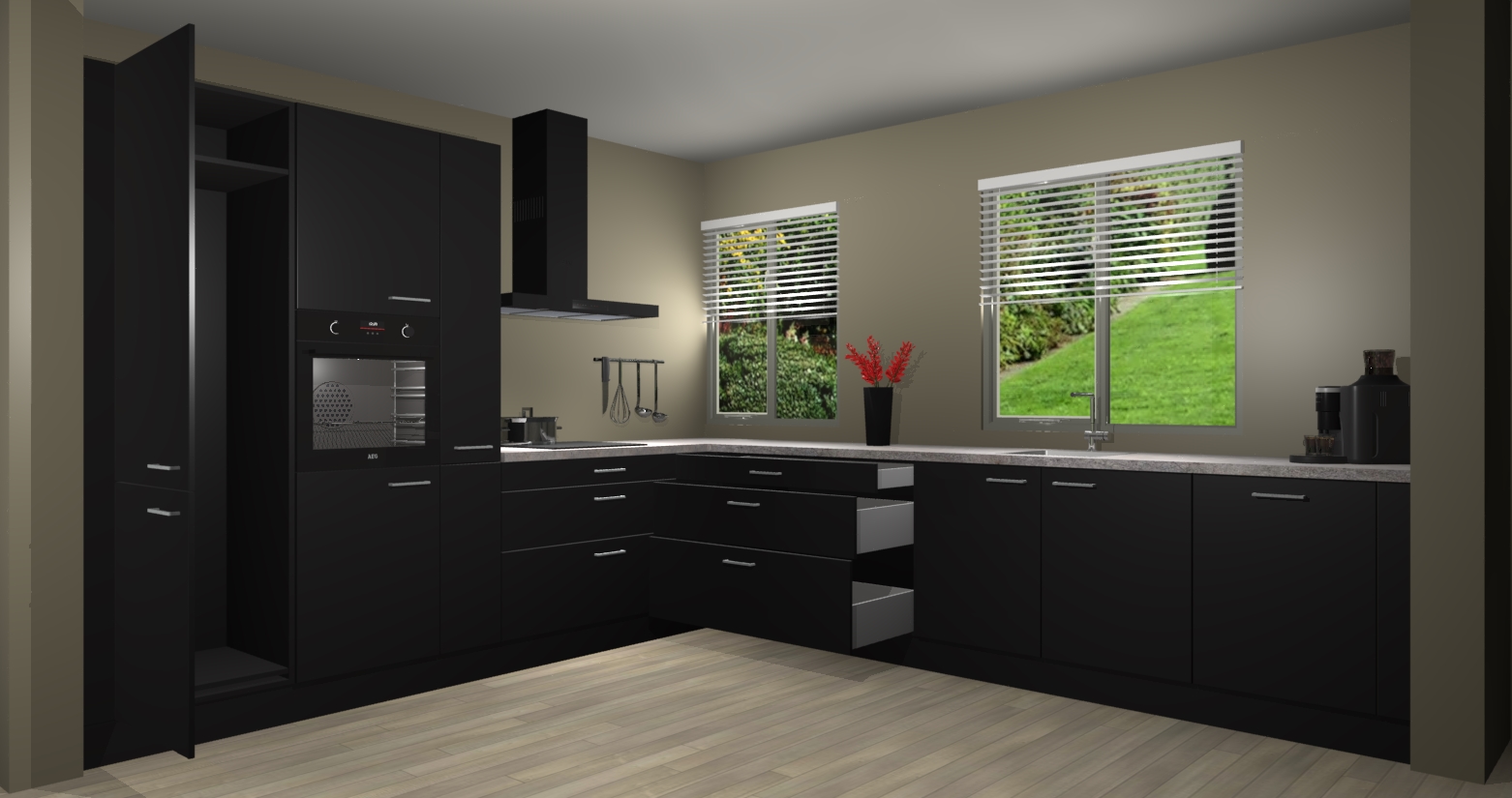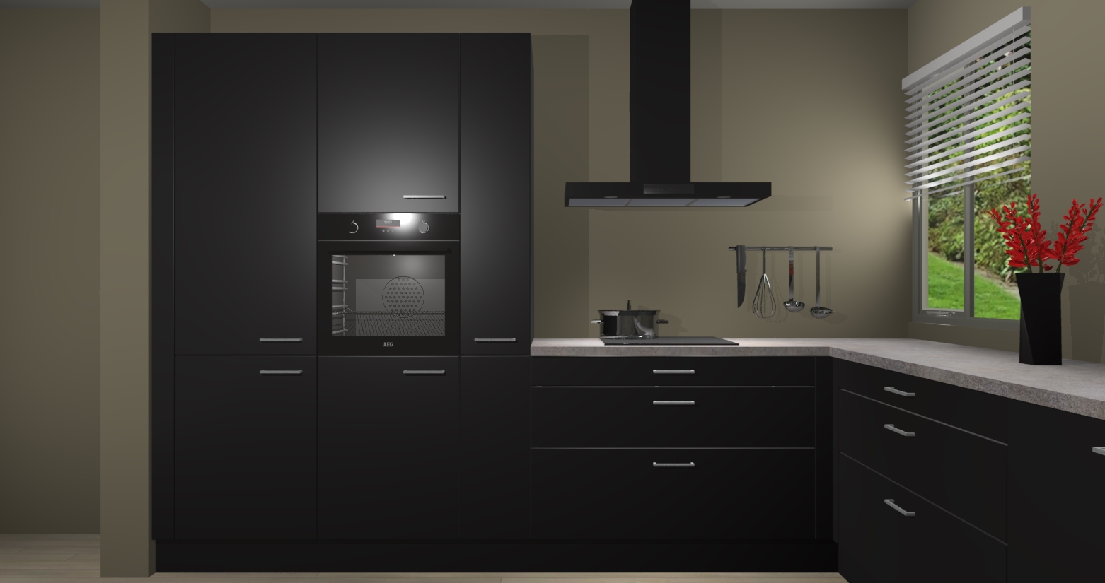 Welkom bij de Zwarte keuken Palermo. Deze prachtige keuken zal de komende jaren het middelpunt van de belangstelling in uw huis zijn. Uitgerust met vijf inbouwapparaten komt u nooit kookgereedschap tekort. Bovendien geeft de warme houtlook elke ruimte een uitnodigende en tijdloze uitstraling.