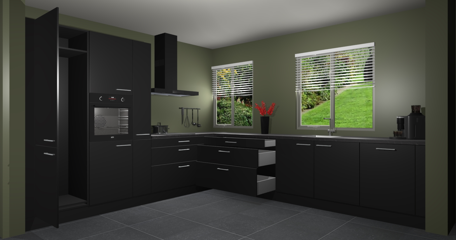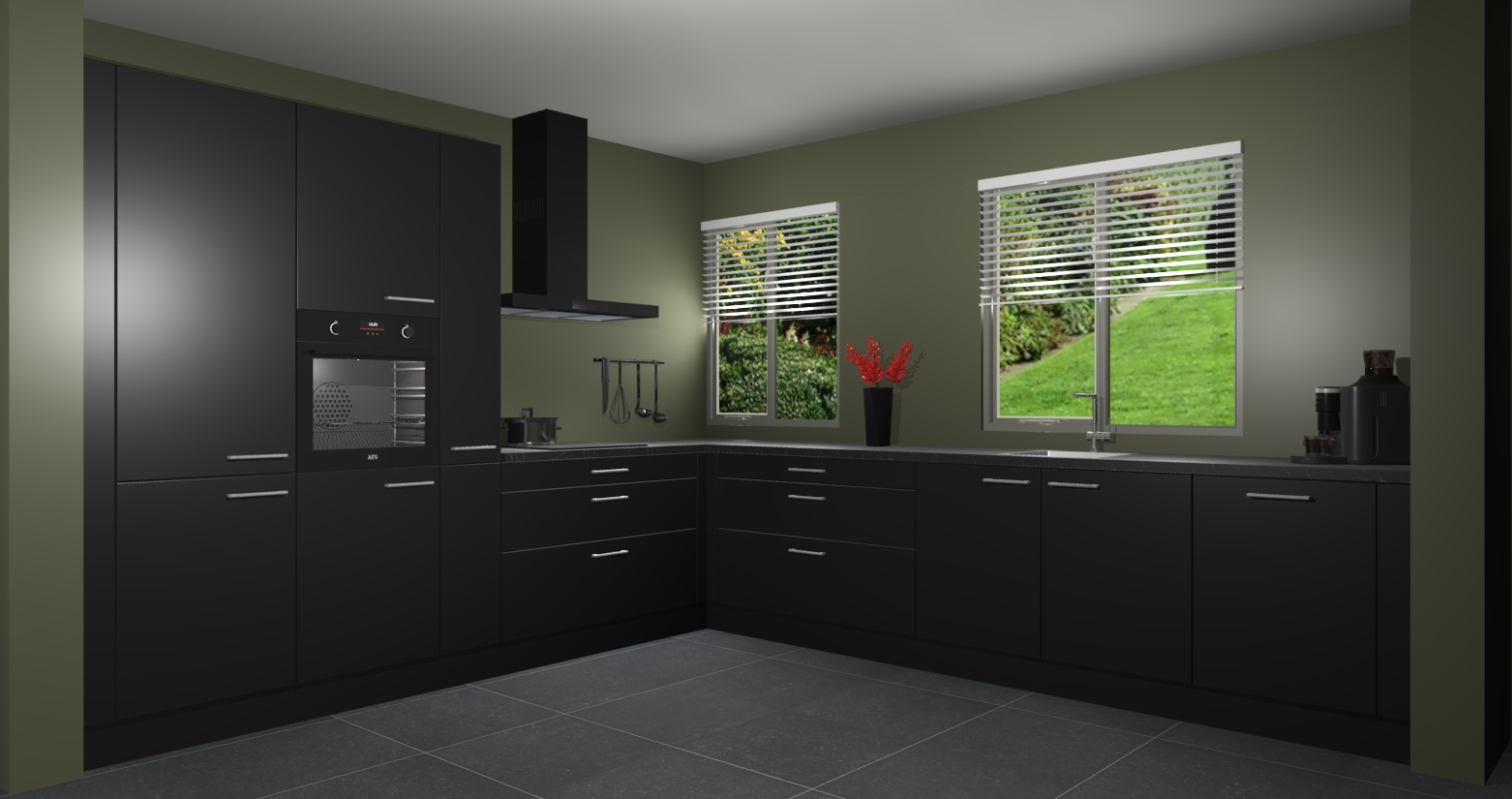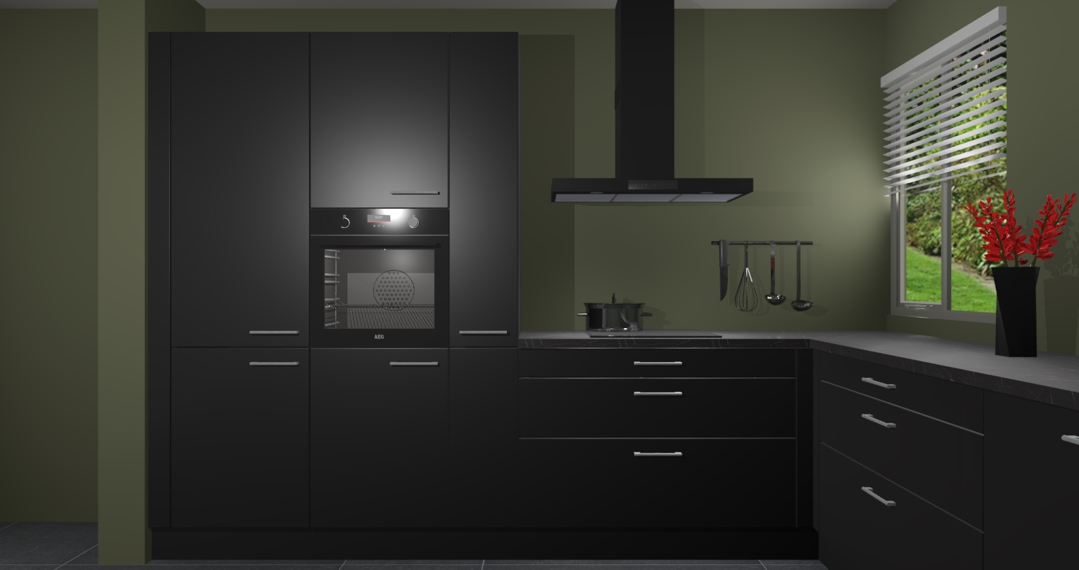 Welkom bij de Zwarte keuken Palermo. Deze prachtige keuken zal de komende jaren het middelpunt van de belangstelling in uw huis zijn. Uitgerust met vijf inbouwapparaten komt u nooit kookgereedschap tekort. Bovendien geeft de warme houtlook elke ruimte een uitnodigende en tijdloze uitstraling.