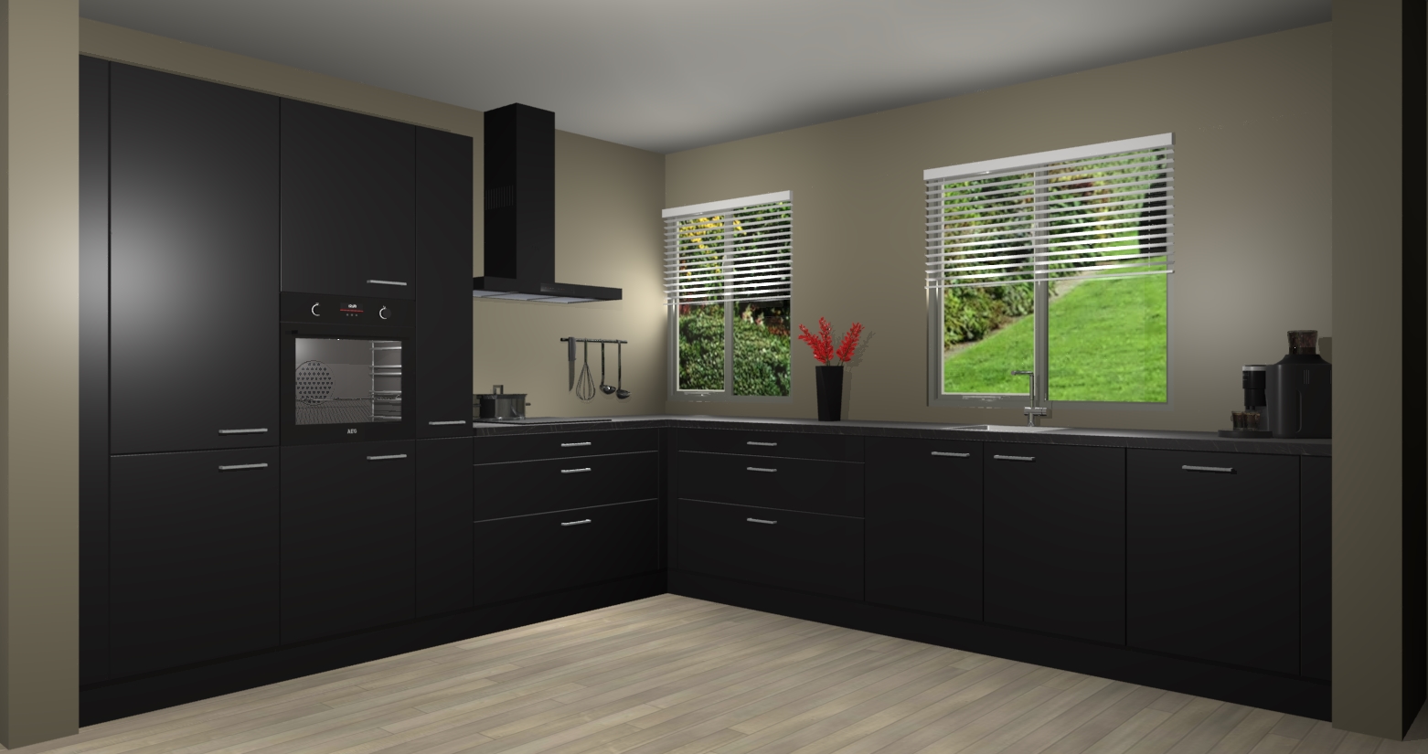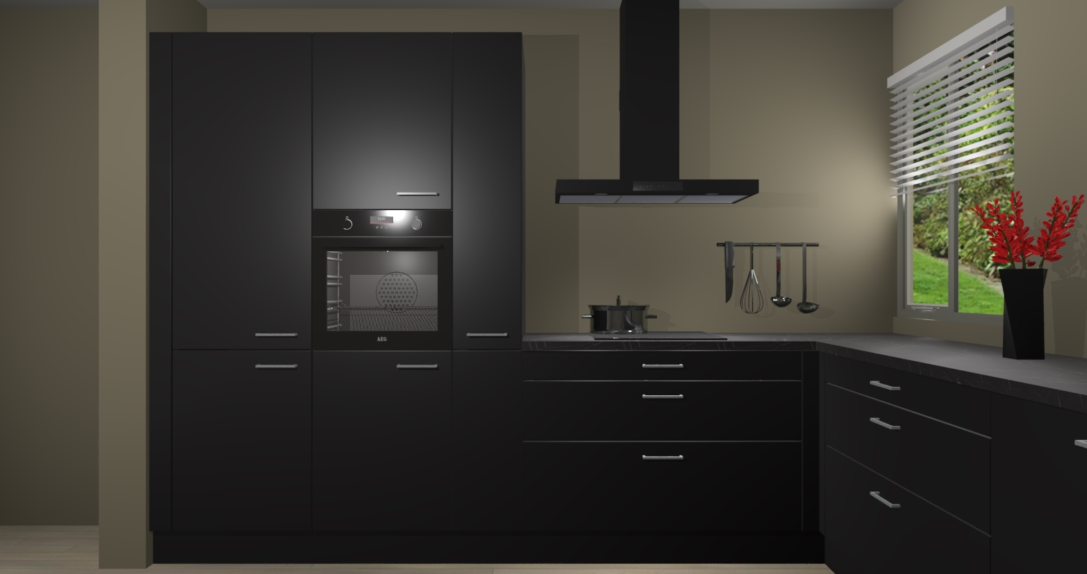 Welkom bij de Zwarte keuken Palermo. Deze prachtige keuken zal de komende jaren het middelpunt van de belangstelling in uw huis zijn. Uitgerust met vijf inbouwapparaten komt u nooit kookgereedschap tekort. Bovendien geeft de warme houtlook elke ruimte een uitnodigende en tijdloze uitstraling.