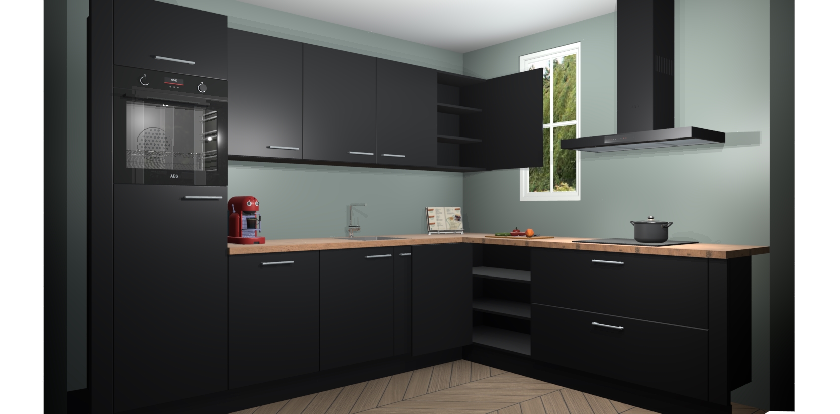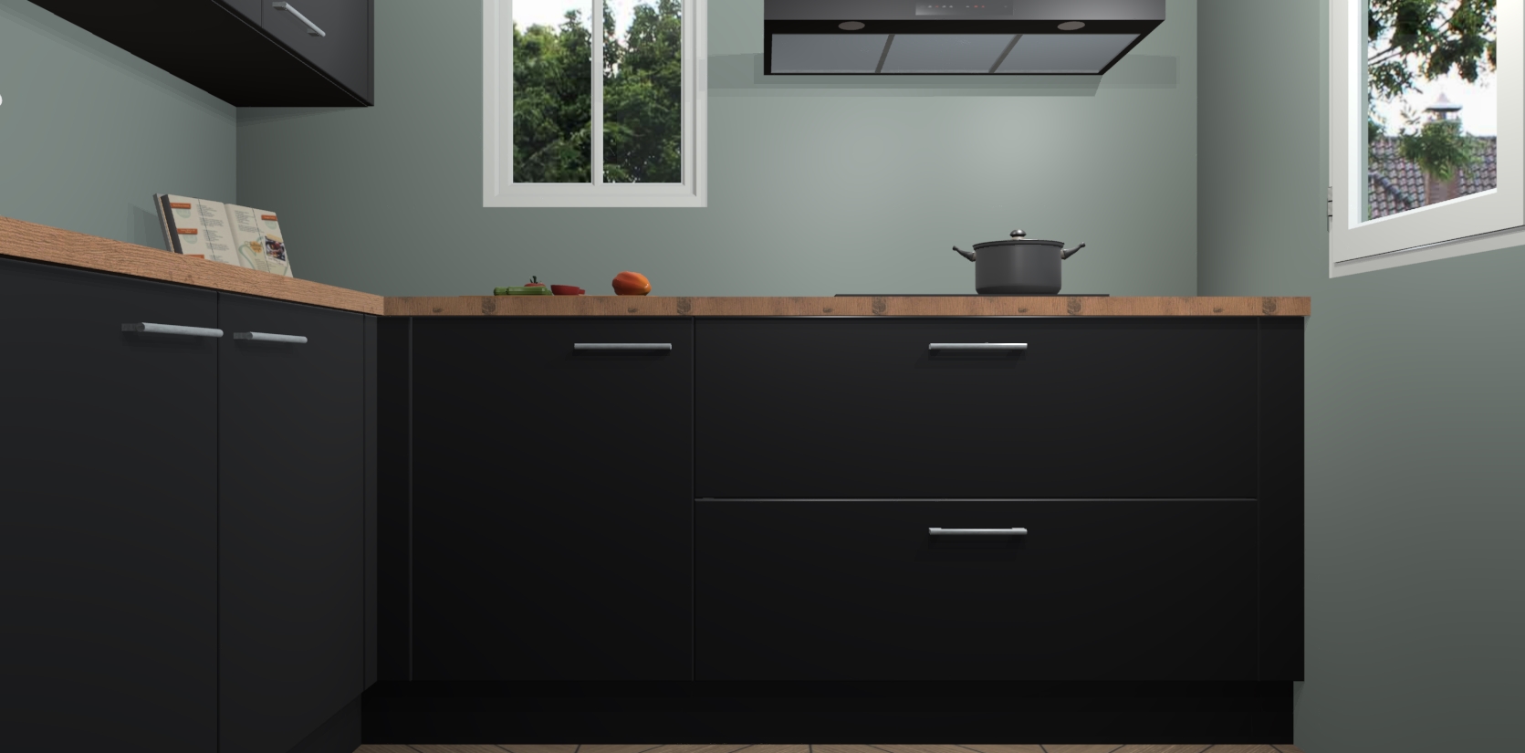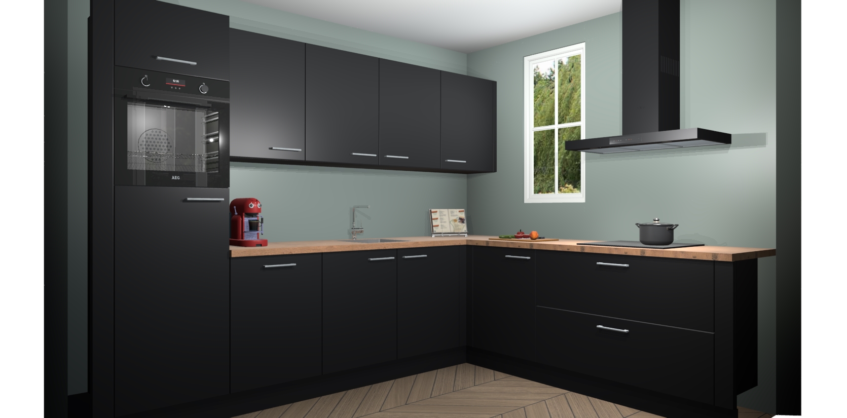 Inclusief plinten, stelpoten en werkblad