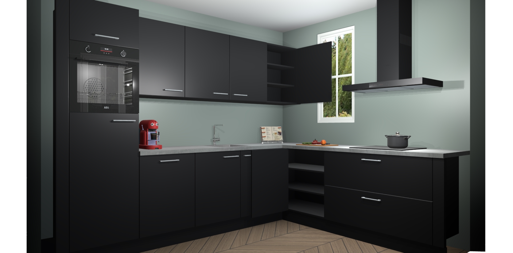 Inclusief plinten, stelpoten en werkblad
