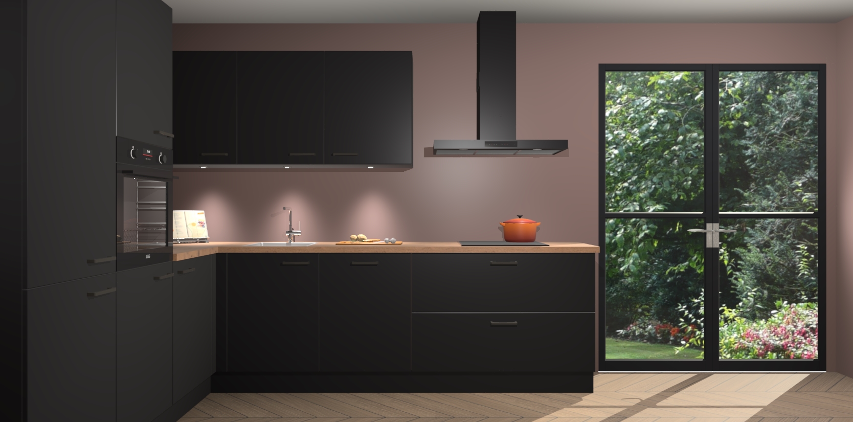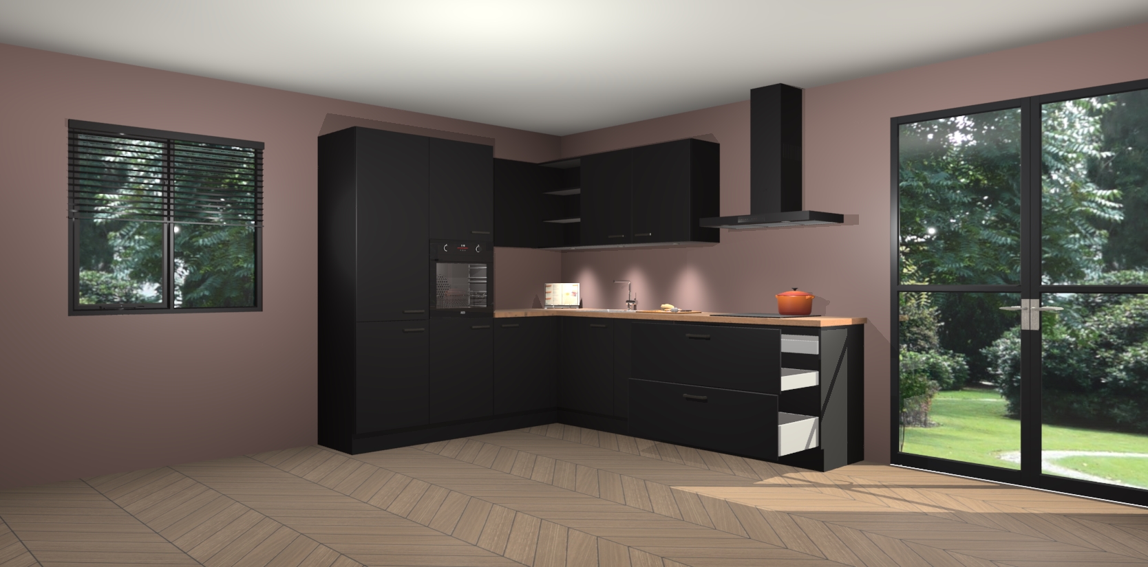 Maak kennis met de zwarte keuken Parla - de perfecte aanvulling voor uw moderne keuken! Ervaar tijdloos design, elegantie en een chique uitstraling met onze zwarte handgrepen, soft-close deuren en veel opbergruimte. Dit alles wordt aangeboden tegen een vaste lage prijs voor ongeëvenaarde Duitse keukenkwaliteit!