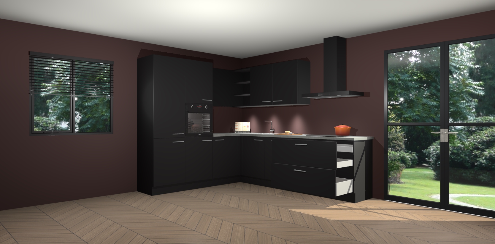 Maak kennis met de zwarte keuken Parla - de perfecte aanvulling voor uw moderne keuken! Ervaar tijdloos design, elegantie en een chique uitstraling met onze zwarte handgrepen, soft-close deuren en veel opbergruimte. Dit alles wordt aangeboden tegen een vaste lage prijs voor ongeëvenaarde Duitse keukenkwaliteit!