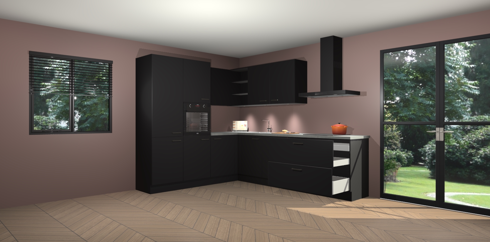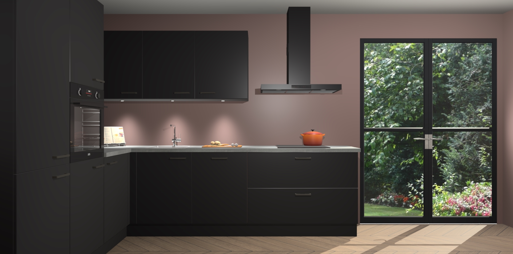 Maak kennis met de zwarte keuken Parla - de perfecte aanvulling voor uw moderne keuken! Ervaar tijdloos design, elegantie en een chique uitstraling met onze zwarte handgrepen, soft-close deuren en veel opbergruimte. Dit alles wordt aangeboden tegen een vaste lage prijs voor ongeëvenaarde Duitse keukenkwaliteit!
