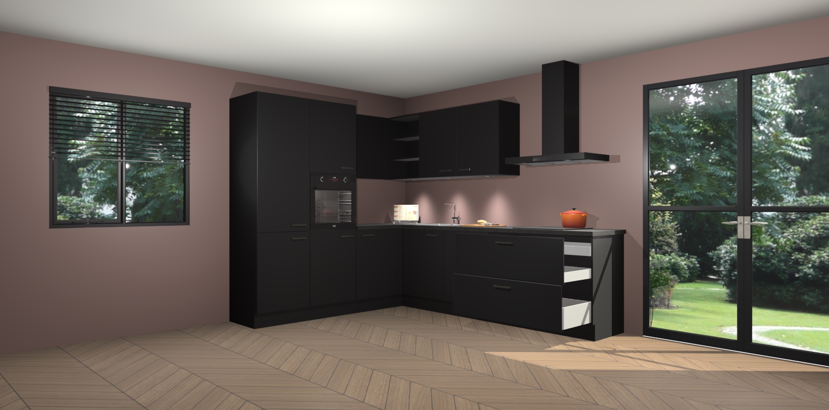 Maak kennis met de zwarte keuken Parla - de perfecte aanvulling voor uw moderne keuken! Ervaar tijdloos design, elegantie en een chique uitstraling met onze zwarte handgrepen, soft-close deuren en veel opbergruimte. Dit alles wordt aangeboden tegen een vaste lage prijs voor ongeëvenaarde Duitse keukenkwaliteit!