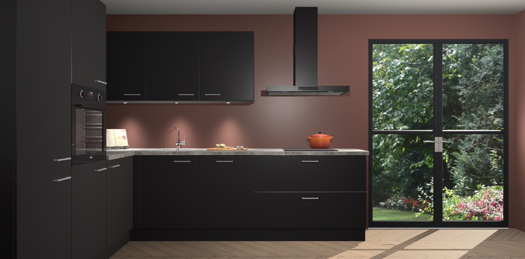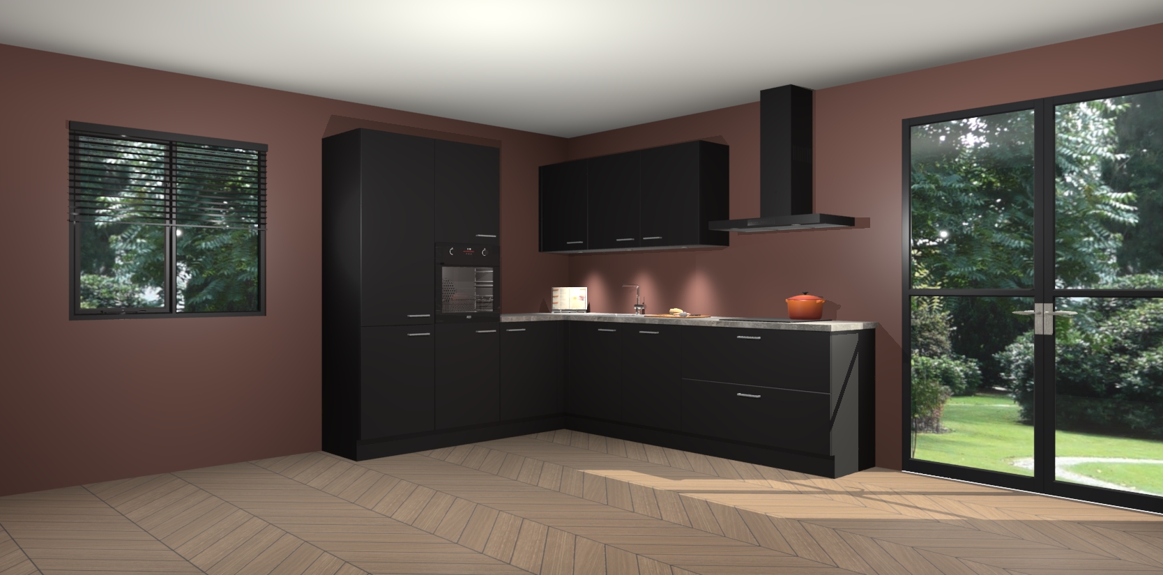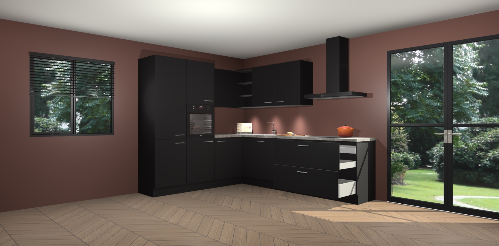 Maak kennis met de zwarte keuken Parla - de perfecte aanvulling voor uw moderne keuken! Ervaar tijdloos design, elegantie en een chique uitstraling met onze zwarte handgrepen, soft-close deuren en veel opbergruimte. Dit alles wordt aangeboden tegen een vaste lage prijs voor ongeëvenaarde Duitse keukenkwaliteit!