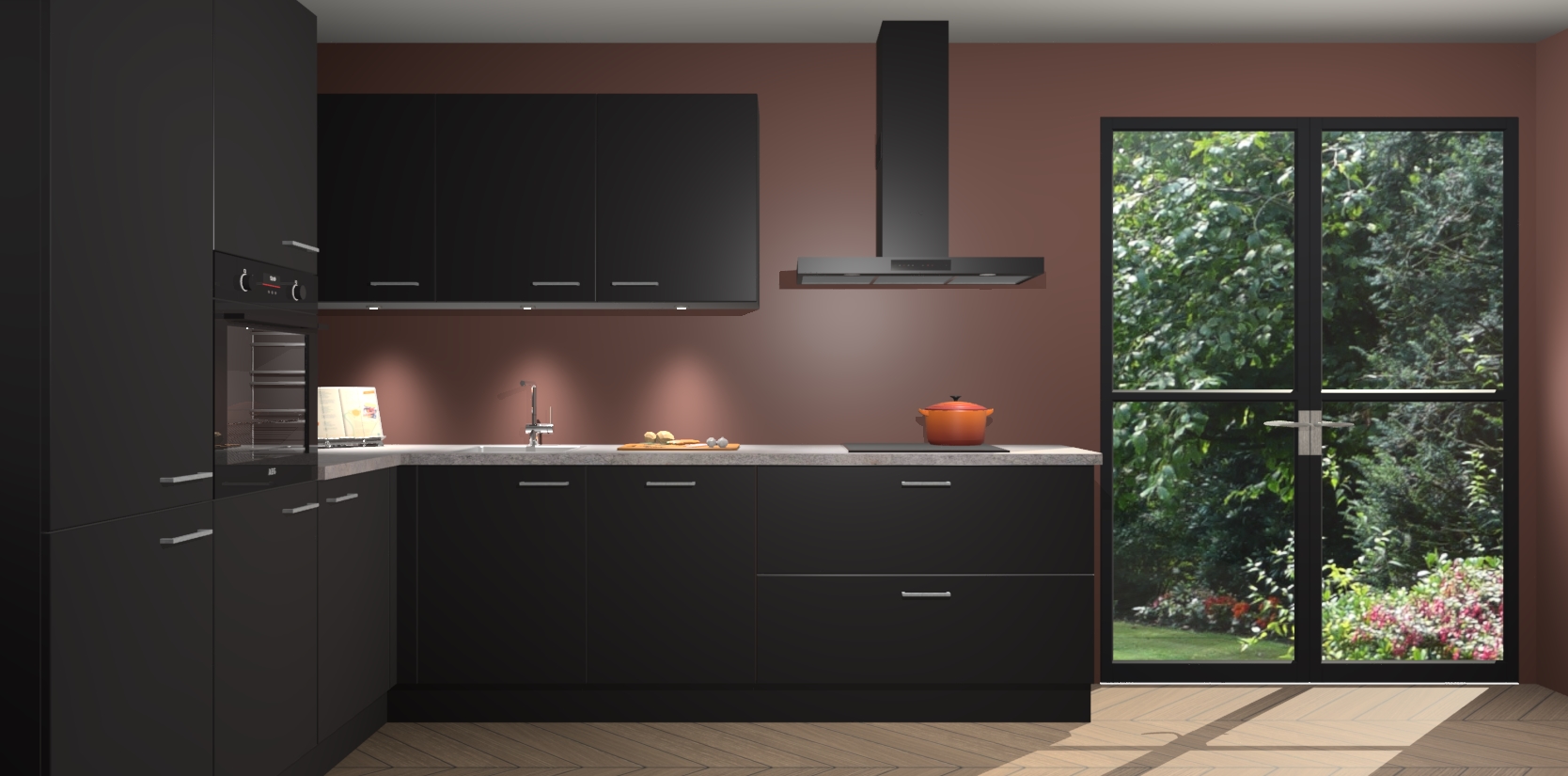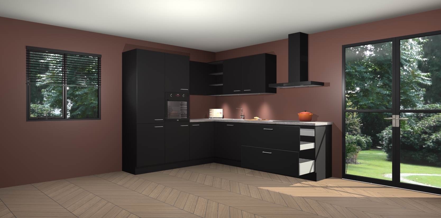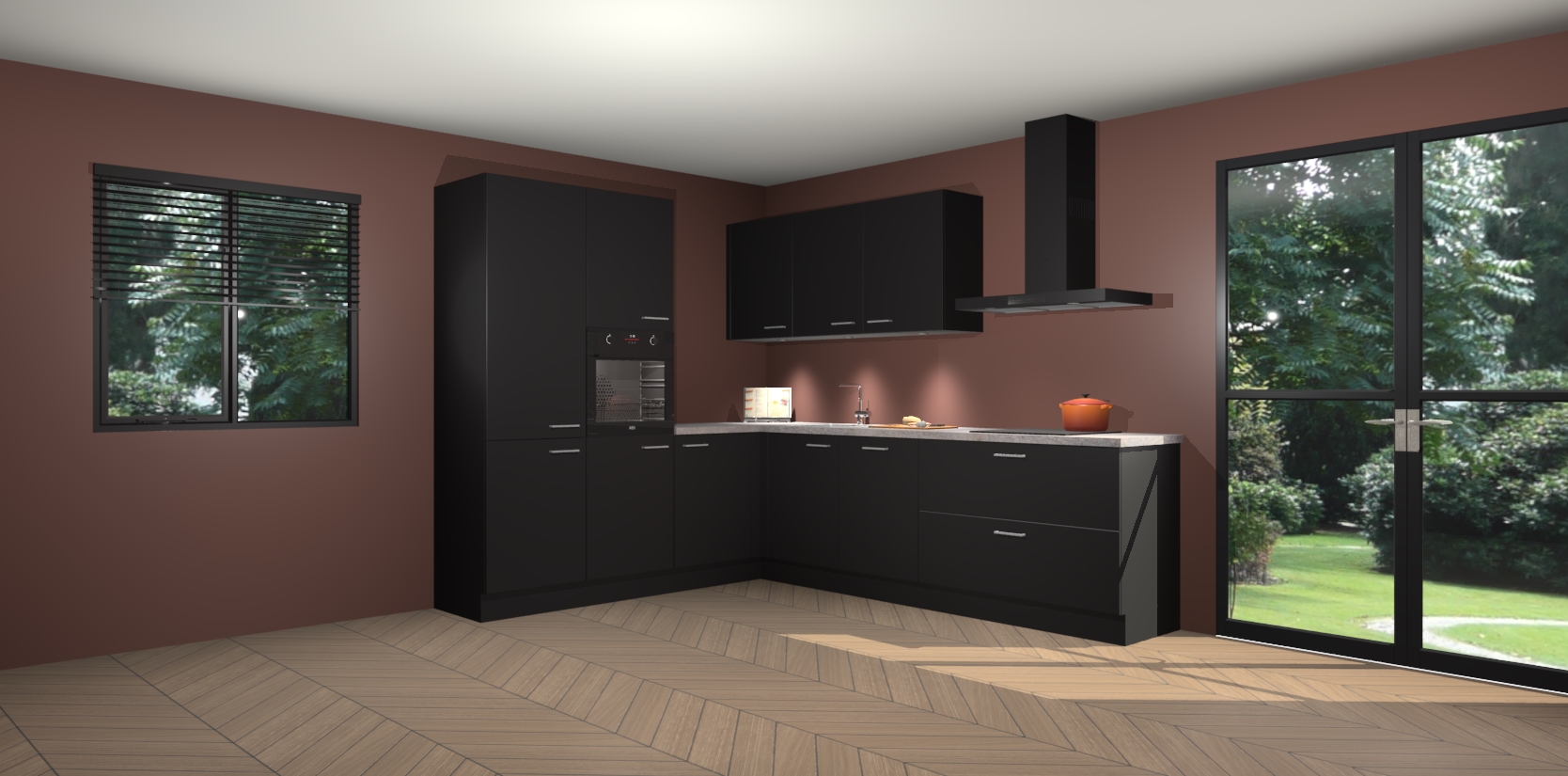 Maak kennis met de zwarte keuken Parla - de perfecte aanvulling voor uw moderne keuken! Ervaar tijdloos design, elegantie en een chique uitstraling met onze zwarte handgrepen, soft-close deuren en veel opbergruimte. Dit alles wordt aangeboden tegen een vaste lage prijs voor ongeëvenaarde Duitse keukenkwaliteit!