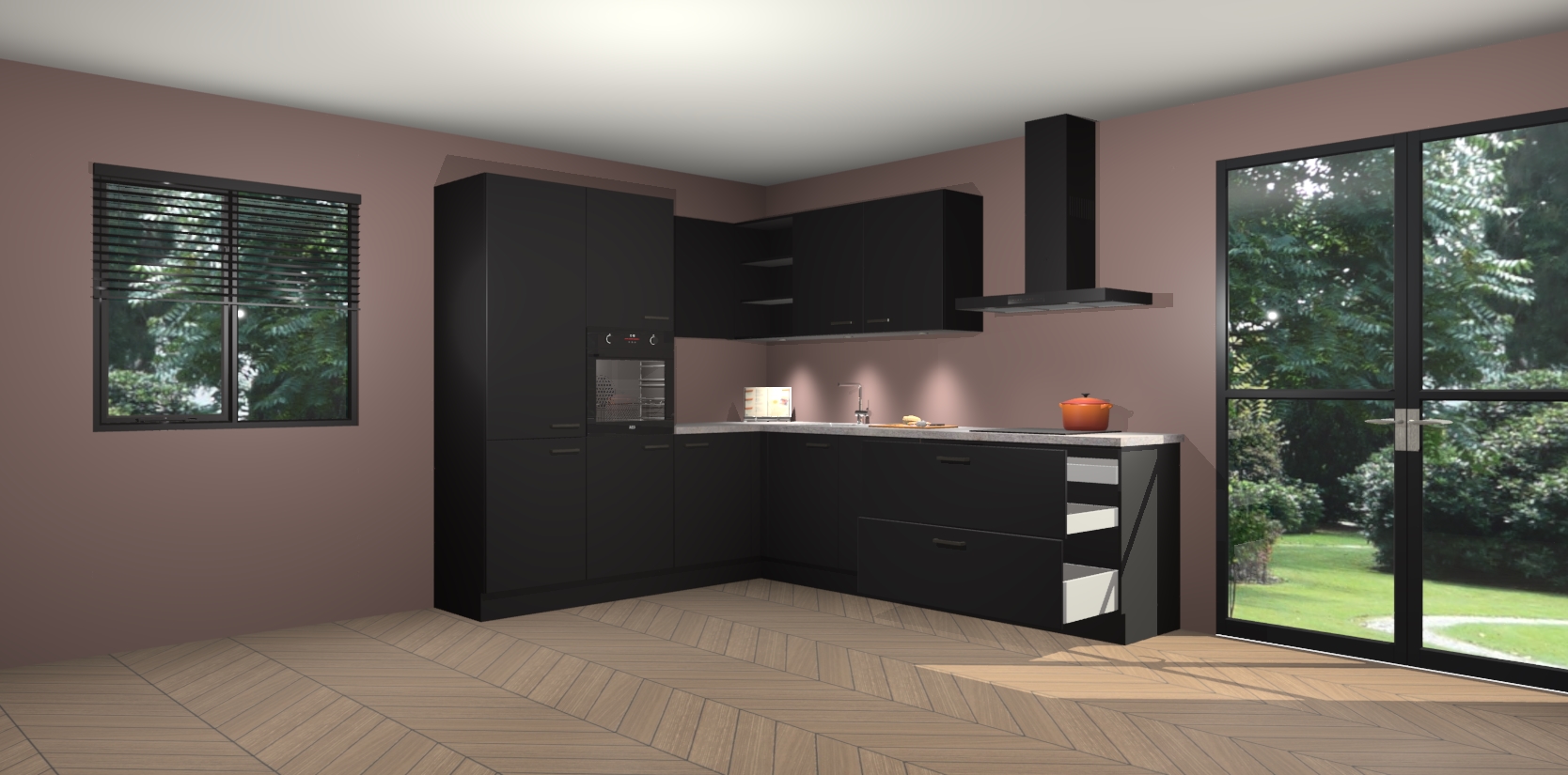 Maak kennis met de zwarte keuken Parla - de perfecte aanvulling voor uw moderne keuken! Ervaar tijdloos design, elegantie en een chique uitstraling met onze zwarte handgrepen, soft-close deuren en veel opbergruimte. Dit alles wordt aangeboden tegen een vaste lage prijs voor ongeëvenaarde Duitse keukenkwaliteit!