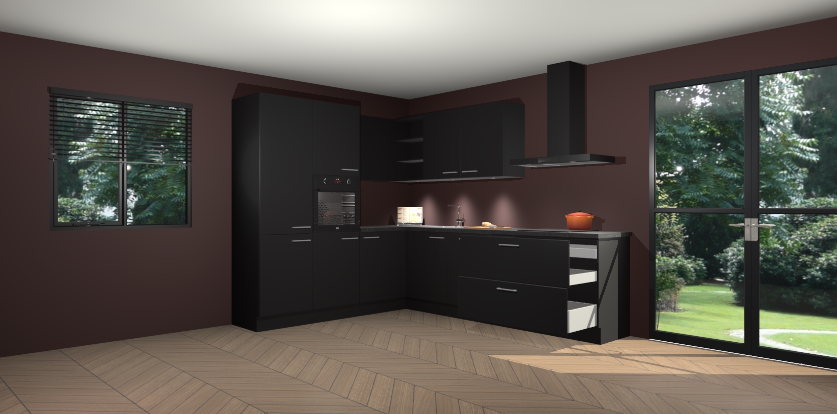 Maak kennis met de zwarte keuken Parla - de perfecte aanvulling voor uw moderne keuken! Ervaar tijdloos design, elegantie en een chique uitstraling met onze zwarte handgrepen, soft-close deuren en veel opbergruimte. Dit alles wordt aangeboden tegen een vaste lage prijs voor ongeëvenaarde Duitse keukenkwaliteit!