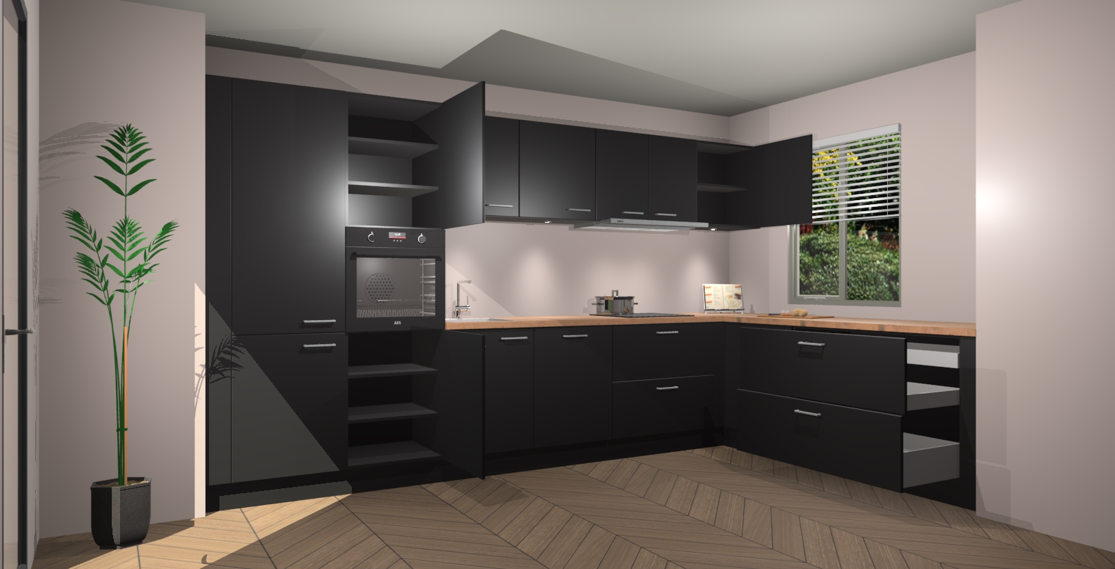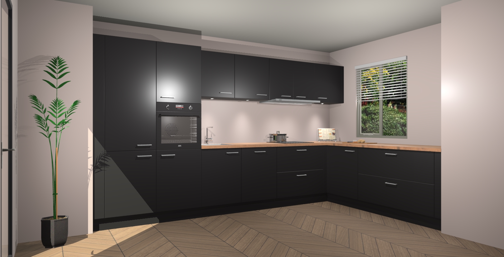 Verwelkom de natuurlijke warmte van de Zwarte keuken Petten in uw huis. Deze prachtige hoekkeuken met zijn moderne design en warme houten look geeft u meer dan genoeg opbergruimte om uw comfortabel te voelen in uw keuken. Geniet van soft-close deuren die al uw gasten het gevoel zullen geven dat ze zich in een luxueuze ruimte bevinden.