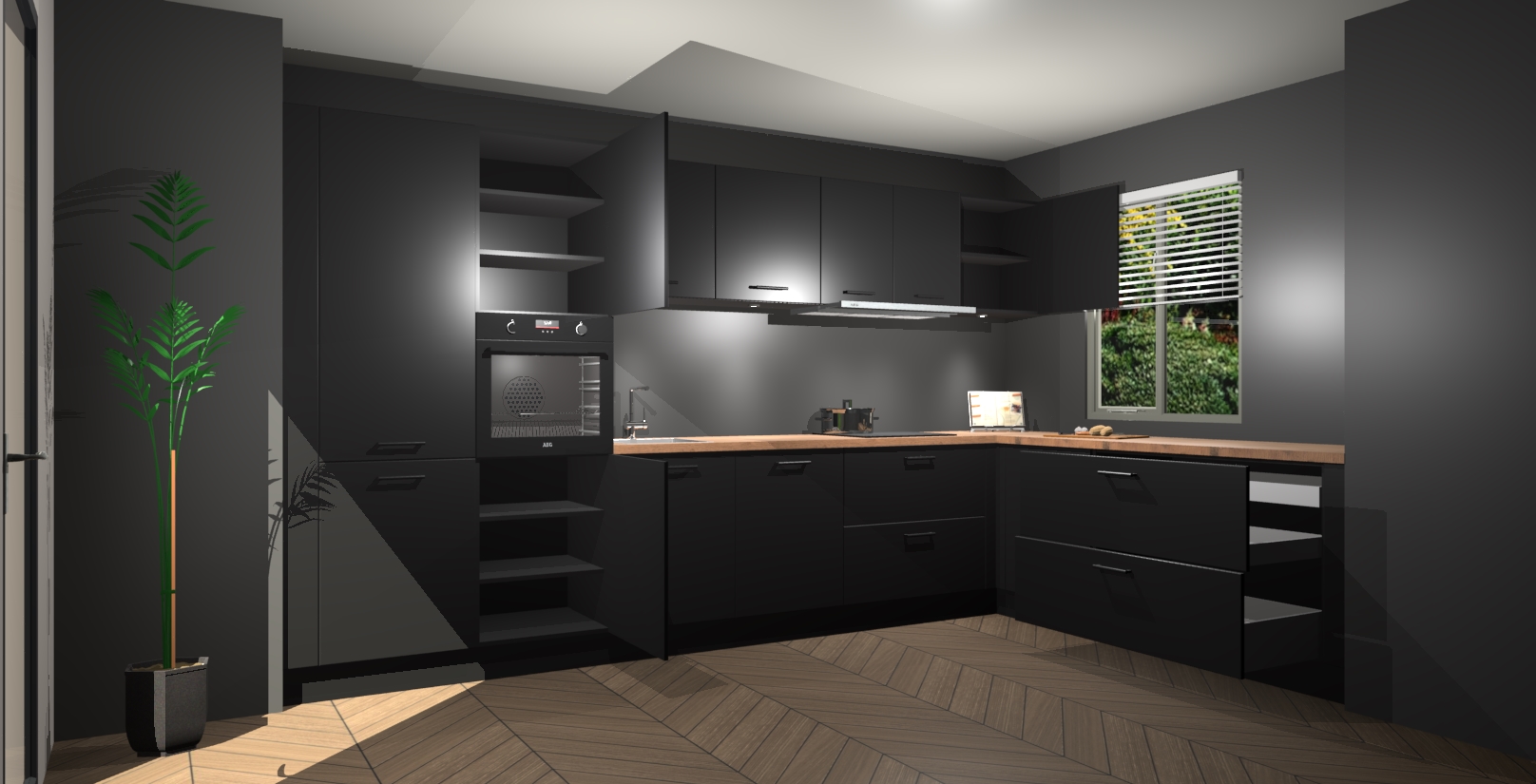 Verwelkom de natuurlijke warmte van de Zwarte keuken Petten in uw huis. Deze prachtige hoekkeuken met zijn moderne design en warme houten look geeft u meer dan genoeg opbergruimte om uw comfortabel te voelen in uw keuken. Geniet van soft-close deuren die al uw gasten het gevoel zullen geven dat ze zich in een luxueuze ruimte bevinden.