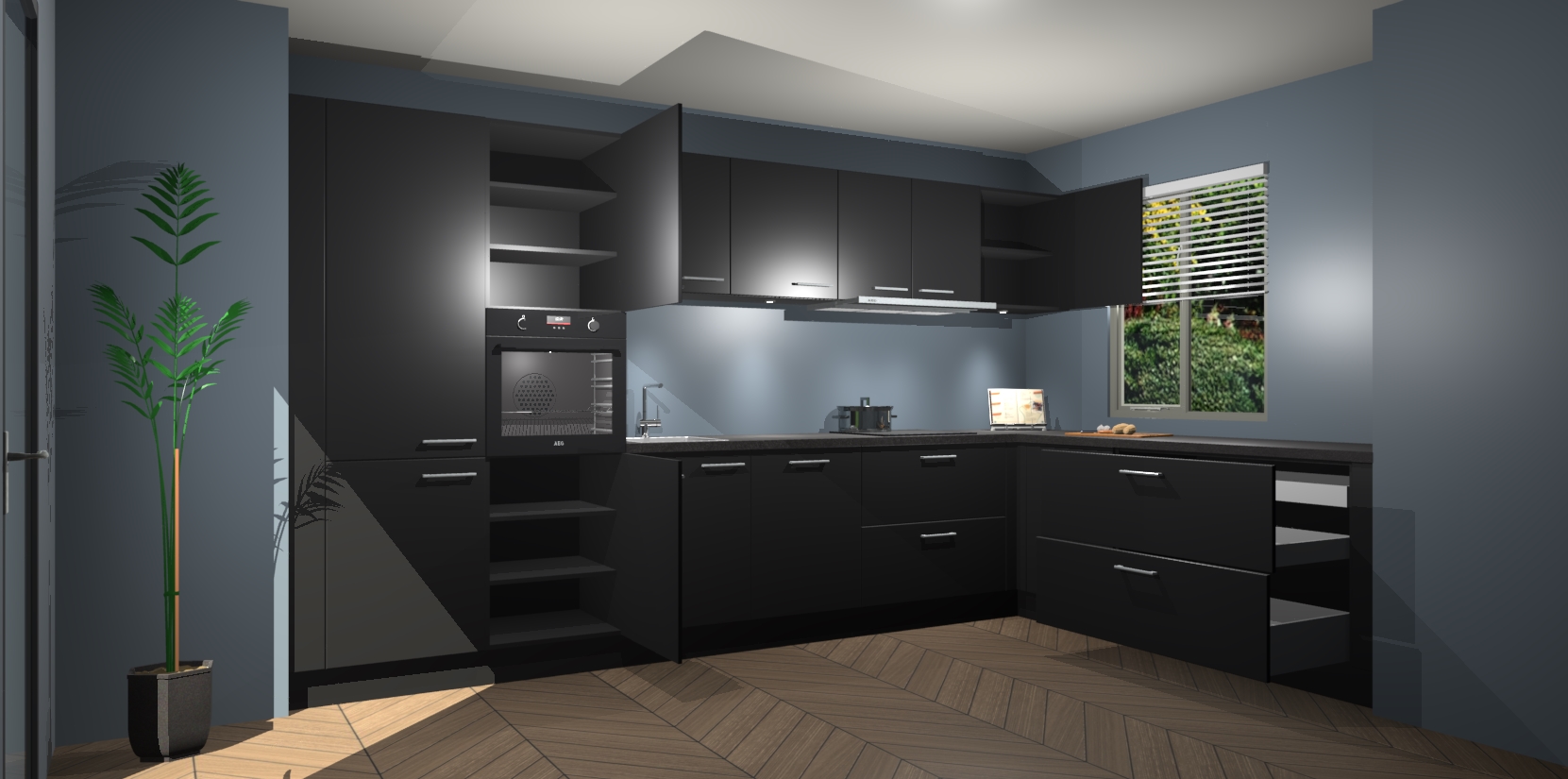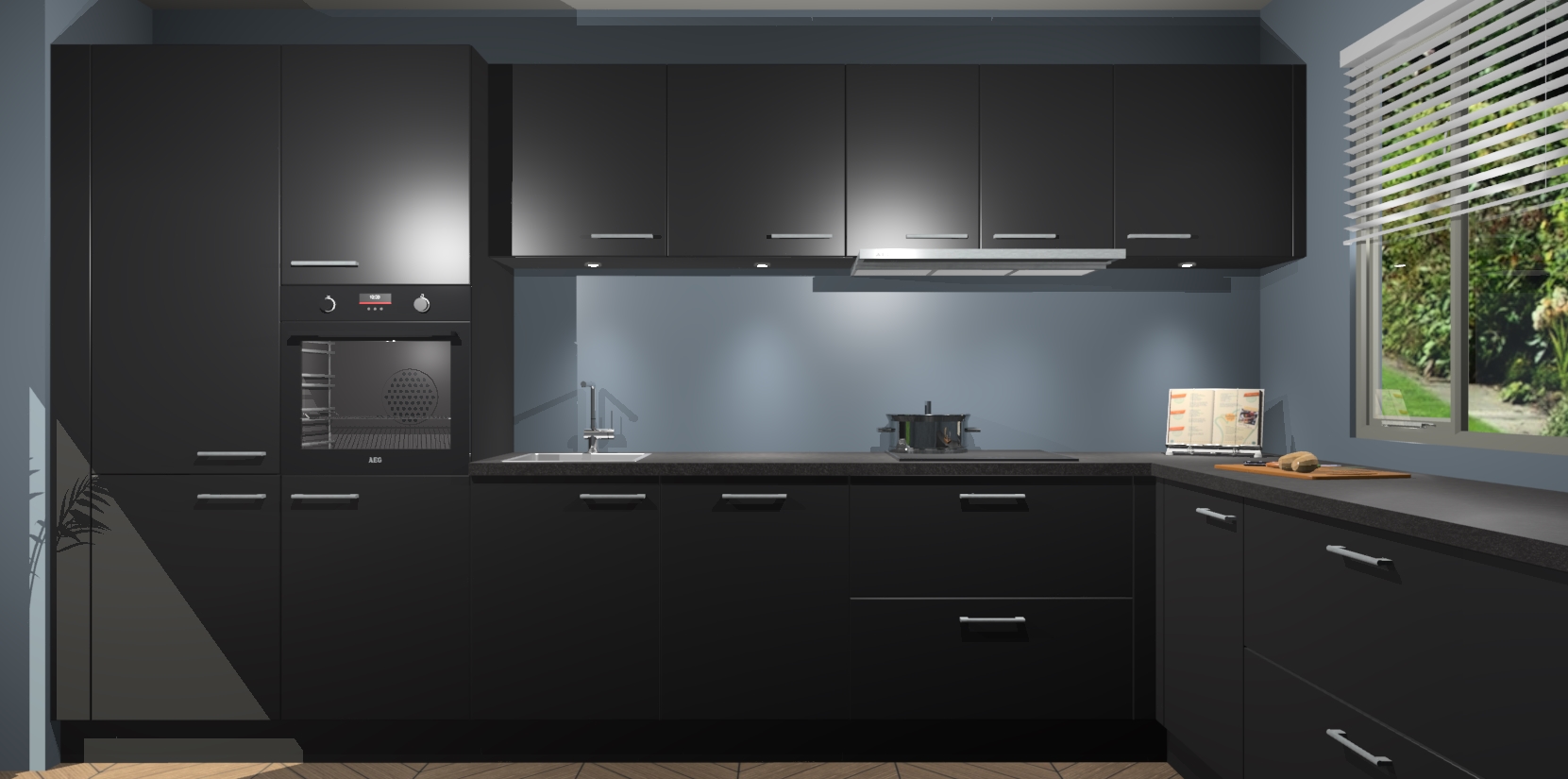 Verwelkom de natuurlijke warmte van de Zwarte keuken Petten in uw huis. Deze prachtige hoekkeuken met zijn moderne design en warme houten look geeft u meer dan genoeg opbergruimte om uw comfortabel te voelen in uw keuken. Geniet van soft-close deuren die al uw gasten het gevoel zullen geven dat ze zich in een luxueuze ruimte bevinden.