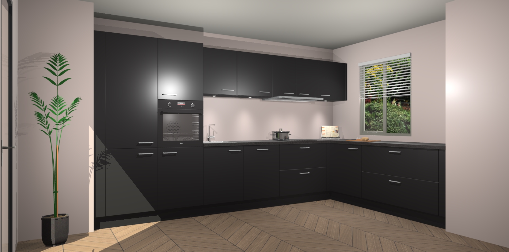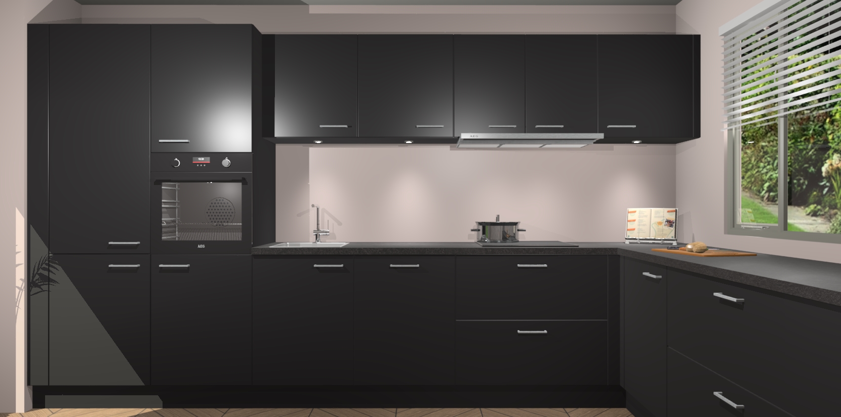 Verwelkom de natuurlijke warmte van de Zwarte keuken Petten in uw huis. Deze prachtige hoekkeuken met zijn moderne design en warme houten look geeft u meer dan genoeg opbergruimte om uw comfortabel te voelen in uw keuken. Geniet van soft-close deuren die al uw gasten het gevoel zullen geven dat ze zich in een luxueuze ruimte bevinden.