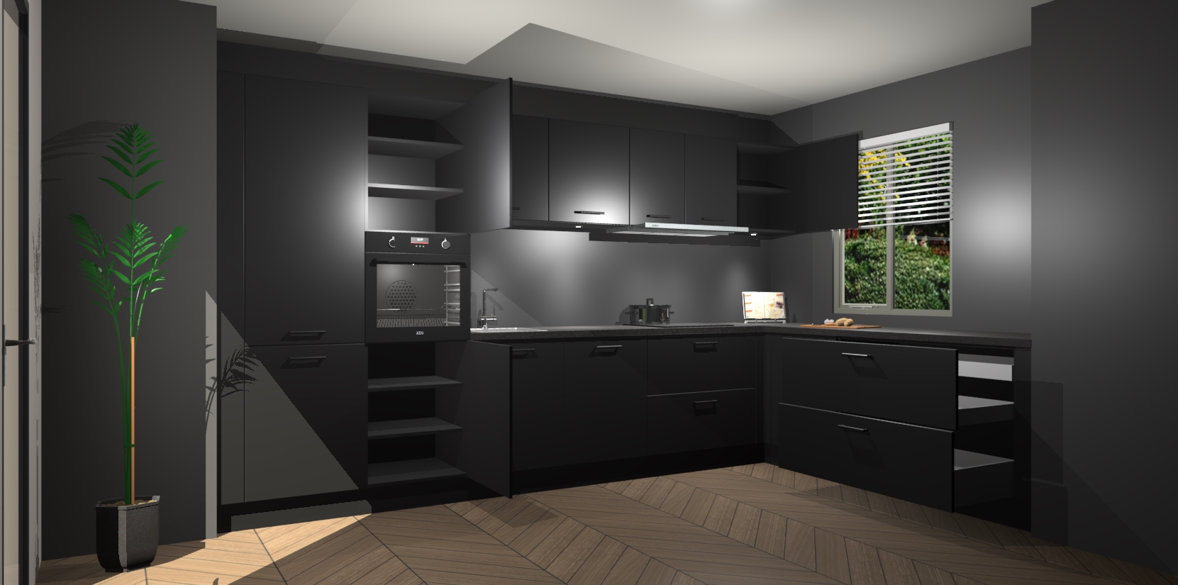 Verwelkom de natuurlijke warmte van de Zwarte keuken Petten in uw huis. Deze prachtige hoekkeuken met zijn moderne design en warme houten look geeft u meer dan genoeg opbergruimte om uw comfortabel te voelen in uw keuken. Geniet van soft-close deuren die al uw gasten het gevoel zullen geven dat ze zich in een luxueuze ruimte bevinden.