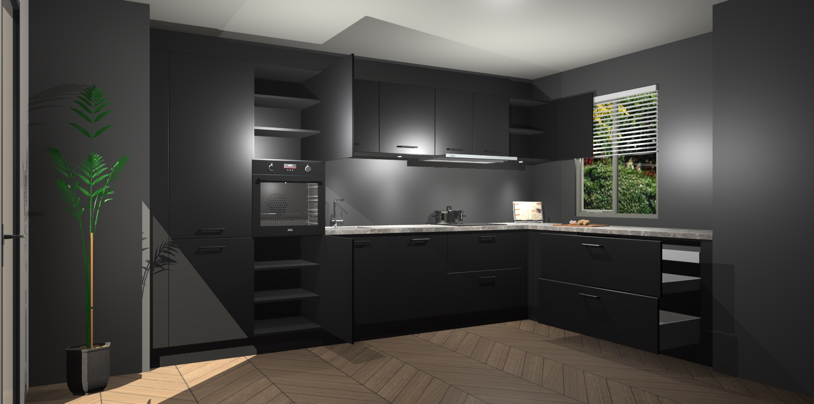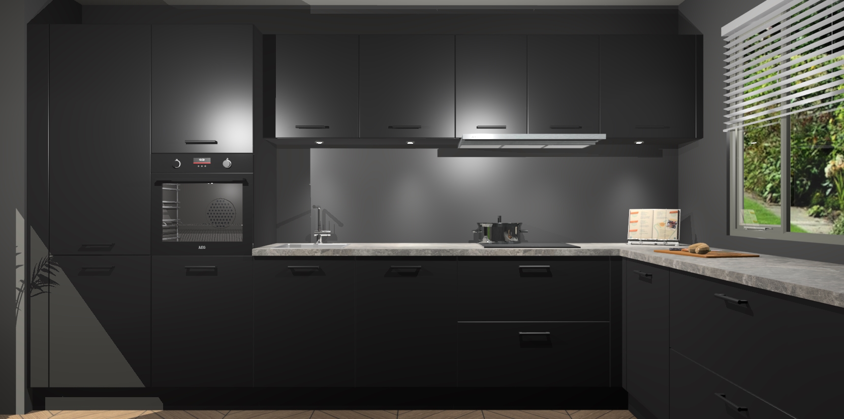 Verwelkom de natuurlijke warmte van de Zwarte keuken Petten in uw huis. Deze prachtige hoekkeuken met zijn moderne design en warme houten look geeft u meer dan genoeg opbergruimte om uw comfortabel te voelen in uw keuken. Geniet van soft-close deuren die al uw gasten het gevoel zullen geven dat ze zich in een luxueuze ruimte bevinden.