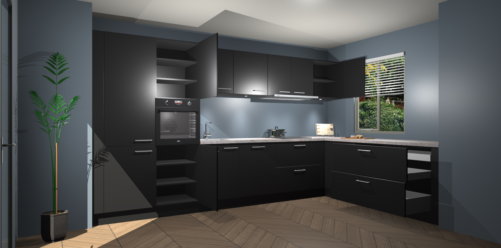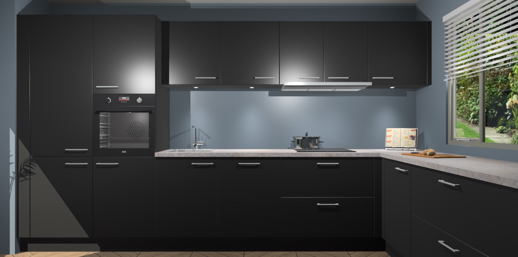 Verwelkom de natuurlijke warmte van de Zwarte keuken Petten in uw huis. Deze prachtige hoekkeuken met zijn moderne design en warme houten look geeft u meer dan genoeg opbergruimte om uw comfortabel te voelen in uw keuken. Geniet van soft-close deuren die al uw gasten het gevoel zullen geven dat ze zich in een luxueuze ruimte bevinden.