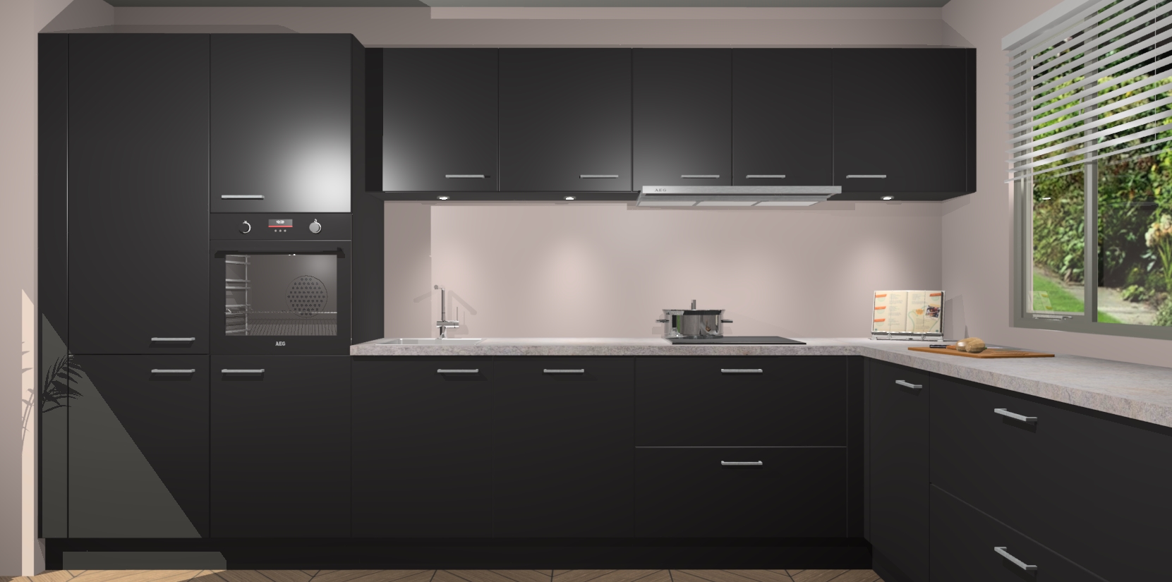 Verwelkom de natuurlijke warmte van de Zwarte keuken Petten in uw huis. Deze prachtige hoekkeuken met zijn moderne design en warme houten look geeft u meer dan genoeg opbergruimte om uw comfortabel te voelen in uw keuken. Geniet van soft-close deuren die al uw gasten het gevoel zullen geven dat ze zich in een luxueuze ruimte bevinden.