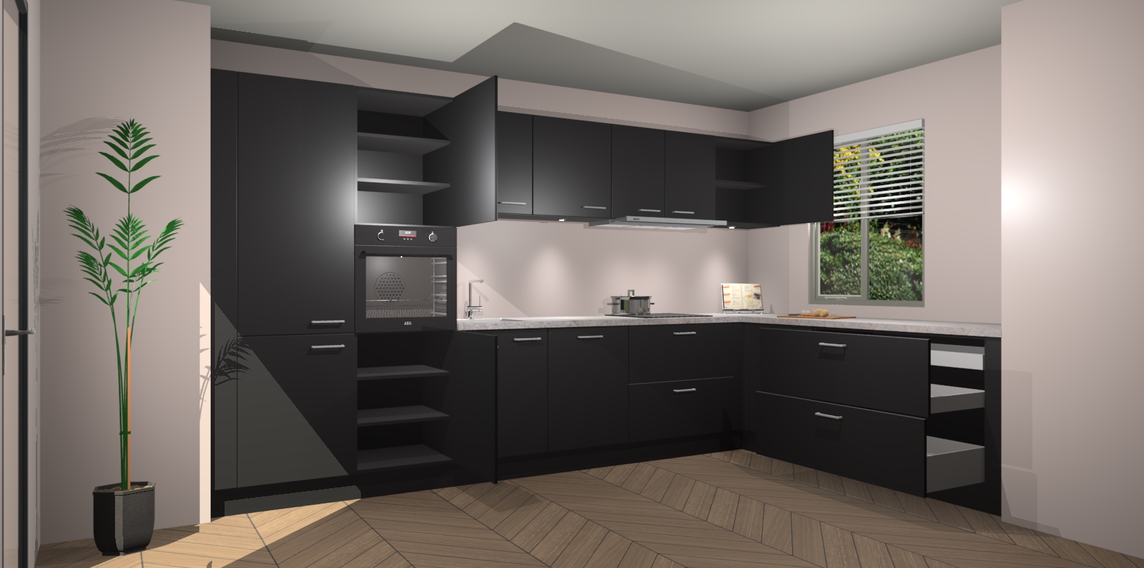 Inclusief plinten, stelpoten en werkblad