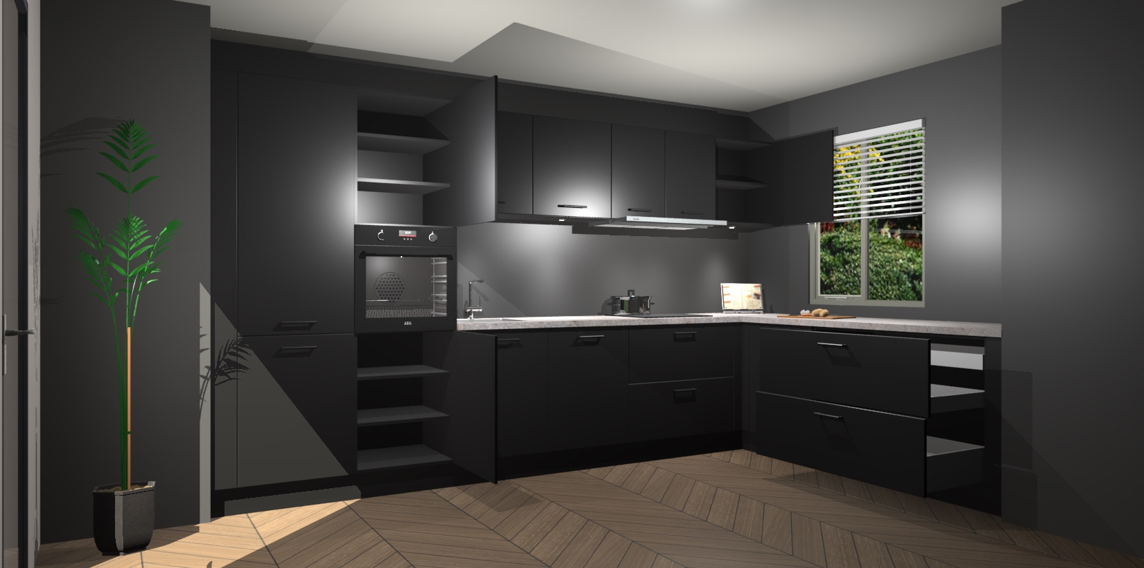 Verwelkom de natuurlijke warmte van de Zwarte keuken Petten in uw huis. Deze prachtige hoekkeuken met zijn moderne design en warme houten look geeft u meer dan genoeg opbergruimte om uw comfortabel te voelen in uw keuken. Geniet van soft-close deuren die al uw gasten het gevoel zullen geven dat ze zich in een luxueuze ruimte bevinden.