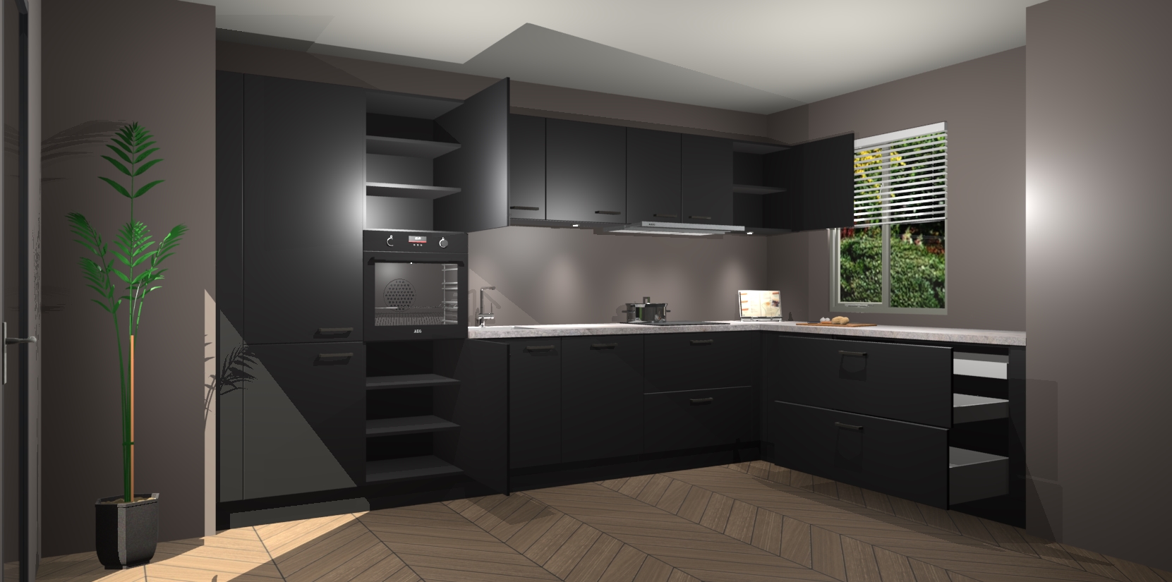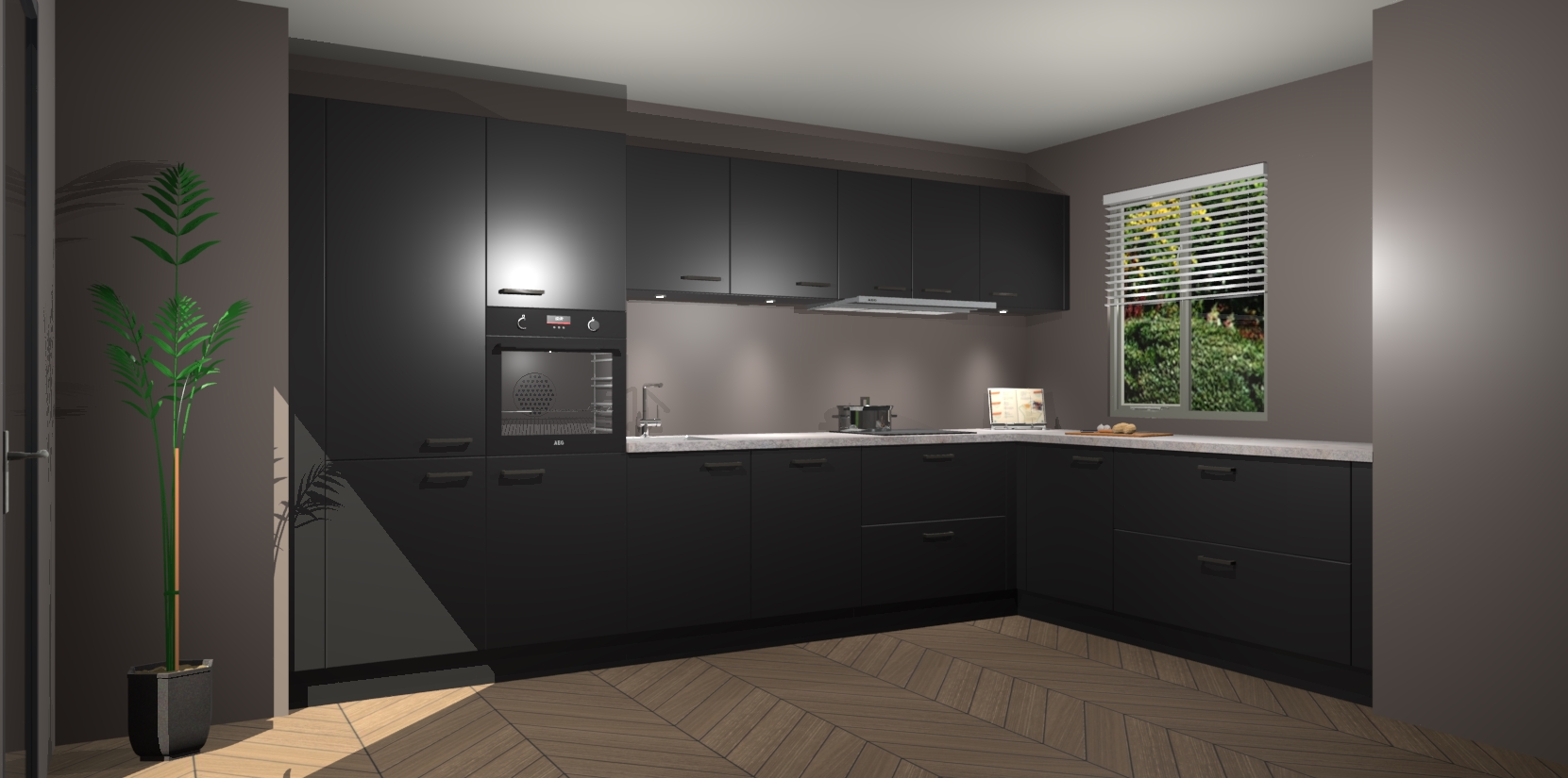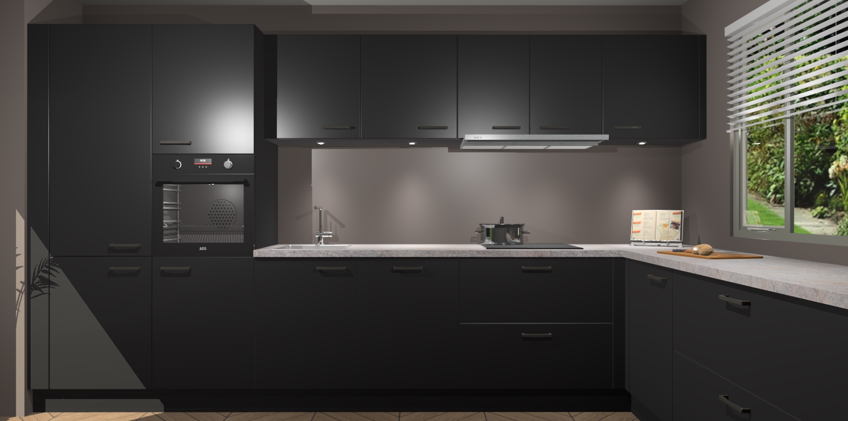 Verwelkom de natuurlijke warmte van de Zwarte keuken Petten in uw huis. Deze prachtige hoekkeuken met zijn moderne design en warme houten look geeft u meer dan genoeg opbergruimte om uw comfortabel te voelen in uw keuken. Geniet van soft-close deuren die al uw gasten het gevoel zullen geven dat ze zich in een luxueuze ruimte bevinden.