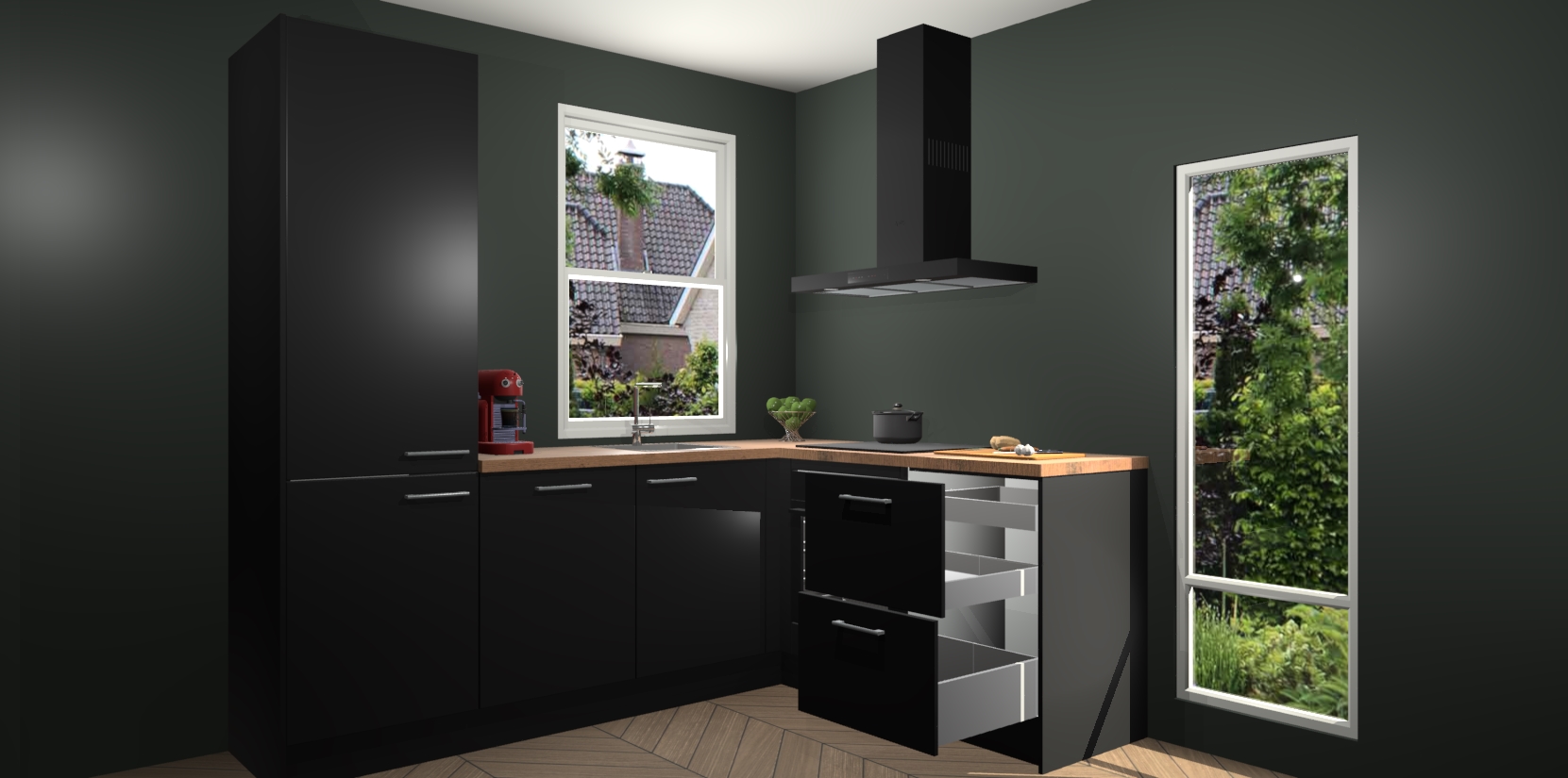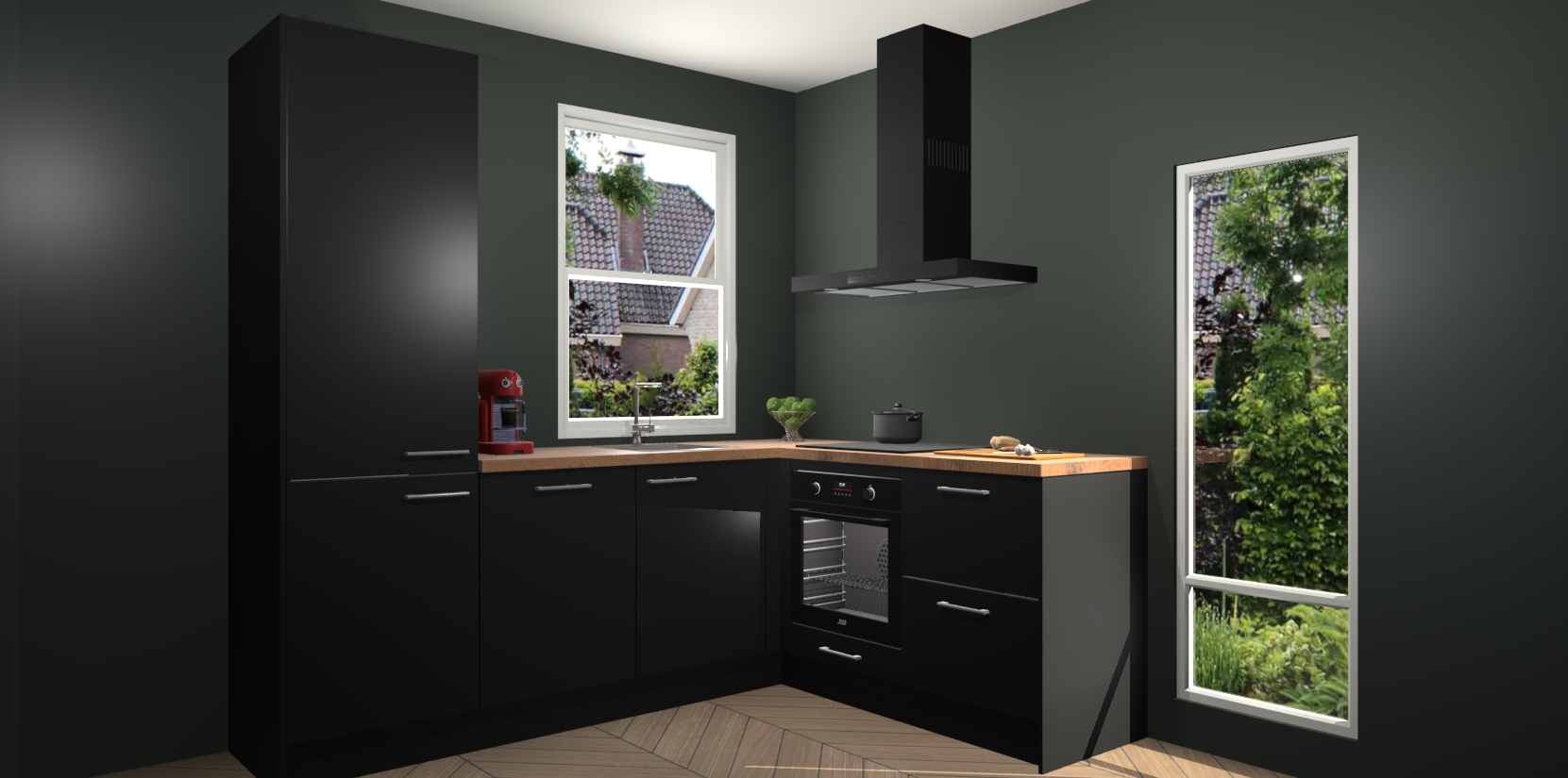 De prachtige Zwarte keuken Phuket is de perfecte keuze als u op zoek bent naar een moderne hoekkeuken met alle luxe en comfort die u kunt verwachten! De uitstraling in het houtlook-design draagt bij aan de warme sfeer die u nu al voelt wanneer u er naar kijkt. Heeft u genoeg van ouderwetse keukens? Probeer dan direct deze moderne, mooie hoekkeukens en laat iedereen verbluft achter!