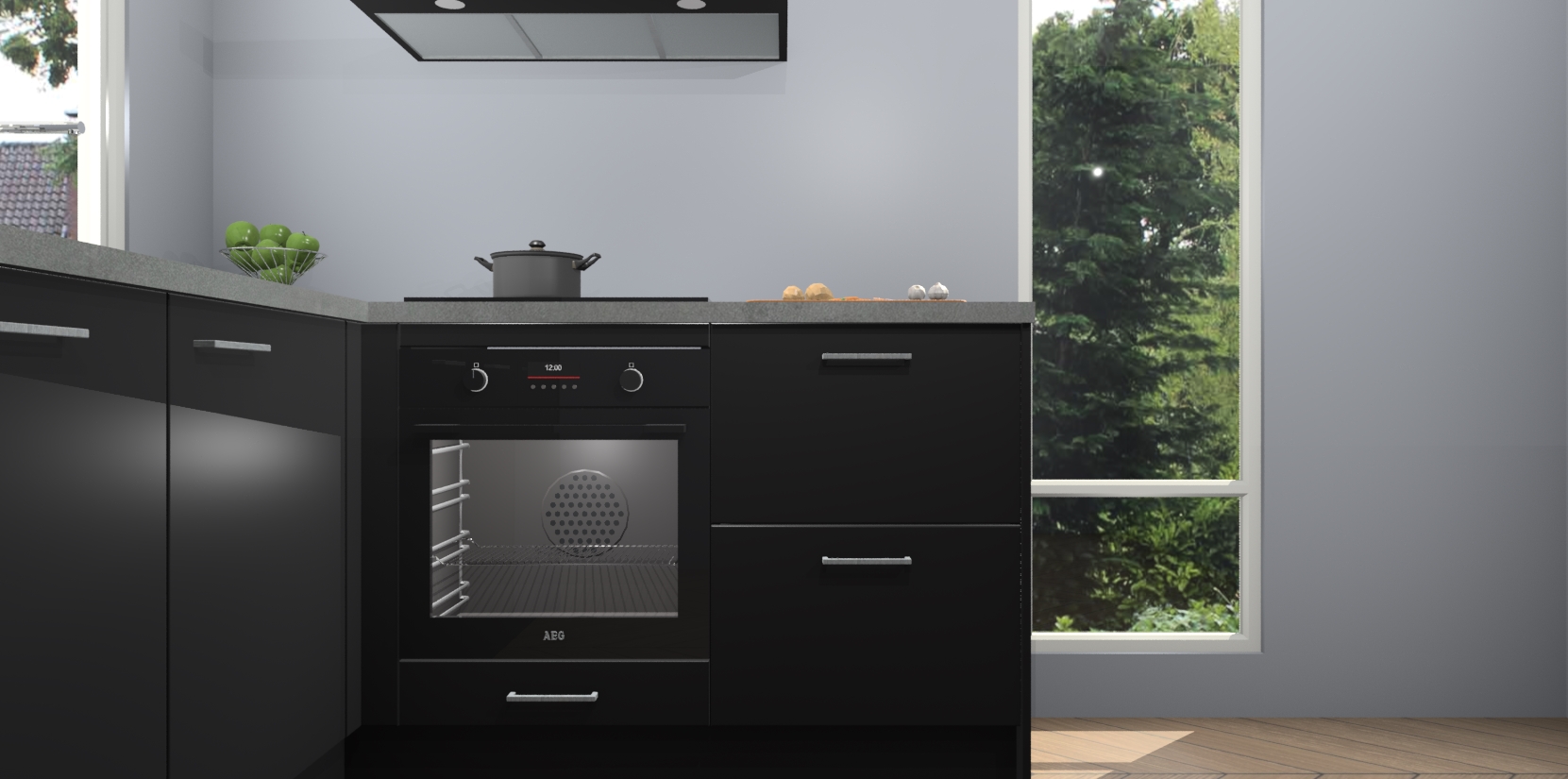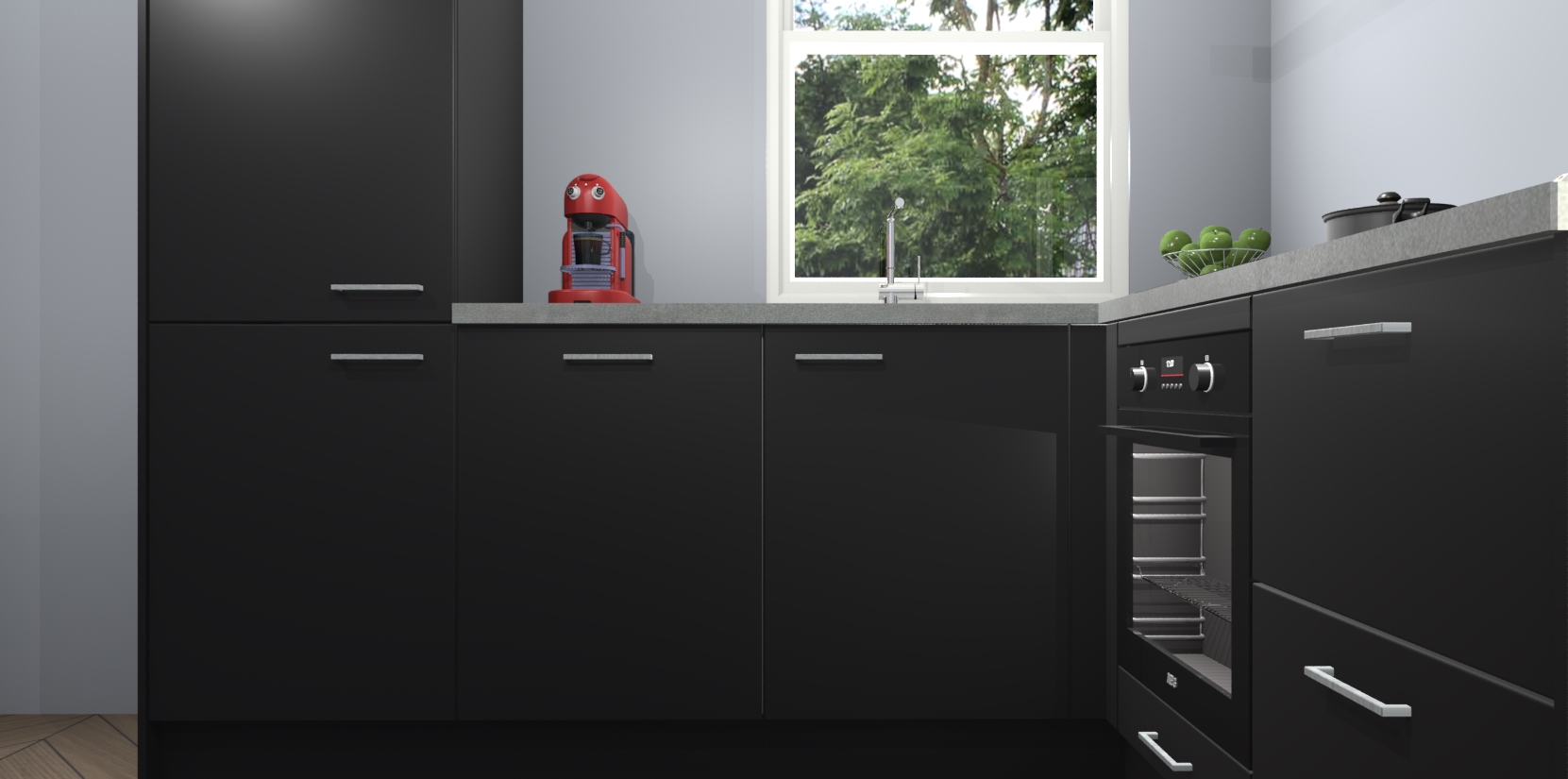 De Zwarte keuken Phuket heeft alles wat u maar kunt wensen. Niet alleen zijn er softclose deuren, maar ook 5 ingebouwde apparaten: een oven, inductiekookplaat, afzuigkap, vaatwasser en koelkast - waarbij u later gemakkelijk naar het AEG merk, van inductiekookplaat naar kookplaat met geïntegreerde afzuiging of van oven naar combimagnetron kunt upgraden. Dat alles tegen een vast laag tarief! Bovendien geeft de Zwarte keuken Phuket supersnelle levering van 7 weken. Echt iets voor u als u er niet op wilt wachten om het resultaat te zien in eigen keuken!