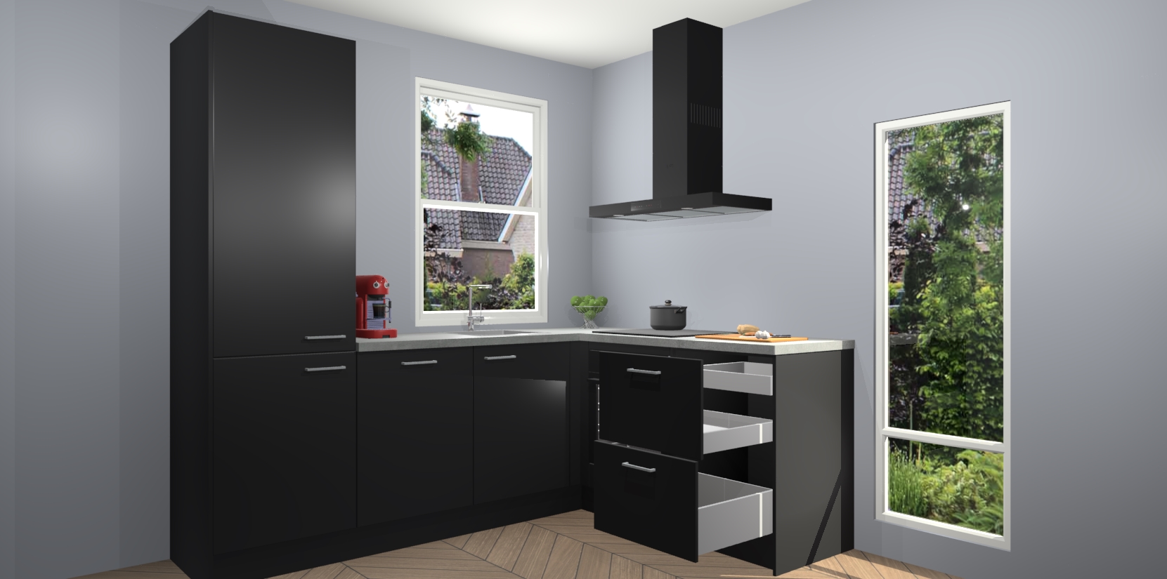 De prachtige Zwarte keuken Phuket is de perfecte keuze als u op zoek bent naar een moderne hoekkeuken met alle luxe en comfort die u kunt verwachten! De uitstraling in het houtlook-design draagt bij aan de warme sfeer die u nu al voelt wanneer u er naar kijkt. Heeft u genoeg van ouderwetse keukens? Probeer dan direct deze moderne, mooie hoekkeukens en laat iedereen verbluft achter!