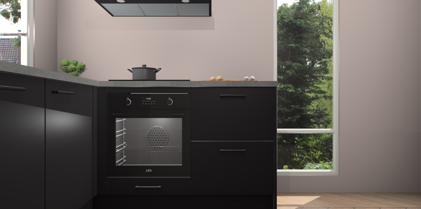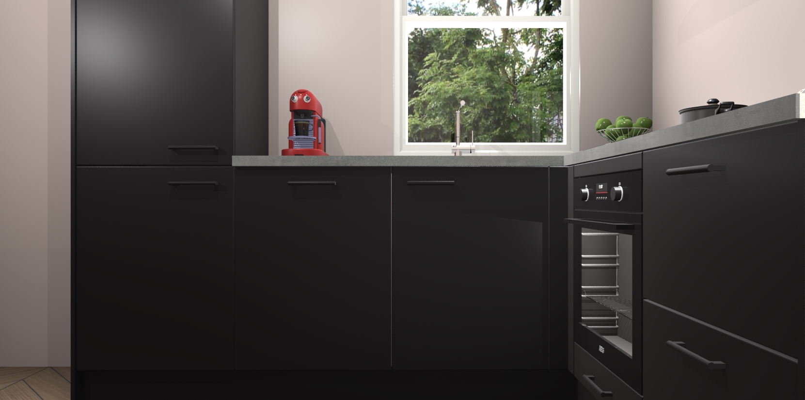 De Zwarte keuken Phuket heeft alles wat u maar kunt wensen. Niet alleen zijn er softclose deuren, maar ook 5 ingebouwde apparaten: een oven, inductiekookplaat, afzuigkap, vaatwasser en koelkast - waarbij u later gemakkelijk naar het AEG merk, van inductiekookplaat naar kookplaat met geïntegreerde afzuiging of van oven naar combimagnetron kunt upgraden. Dat alles tegen een vast laag tarief! Bovendien geeft de Zwarte keuken Phuket supersnelle levering van 7 weken. Echt iets voor u als u er niet op wilt wachten om het resultaat te zien in eigen keuken!
